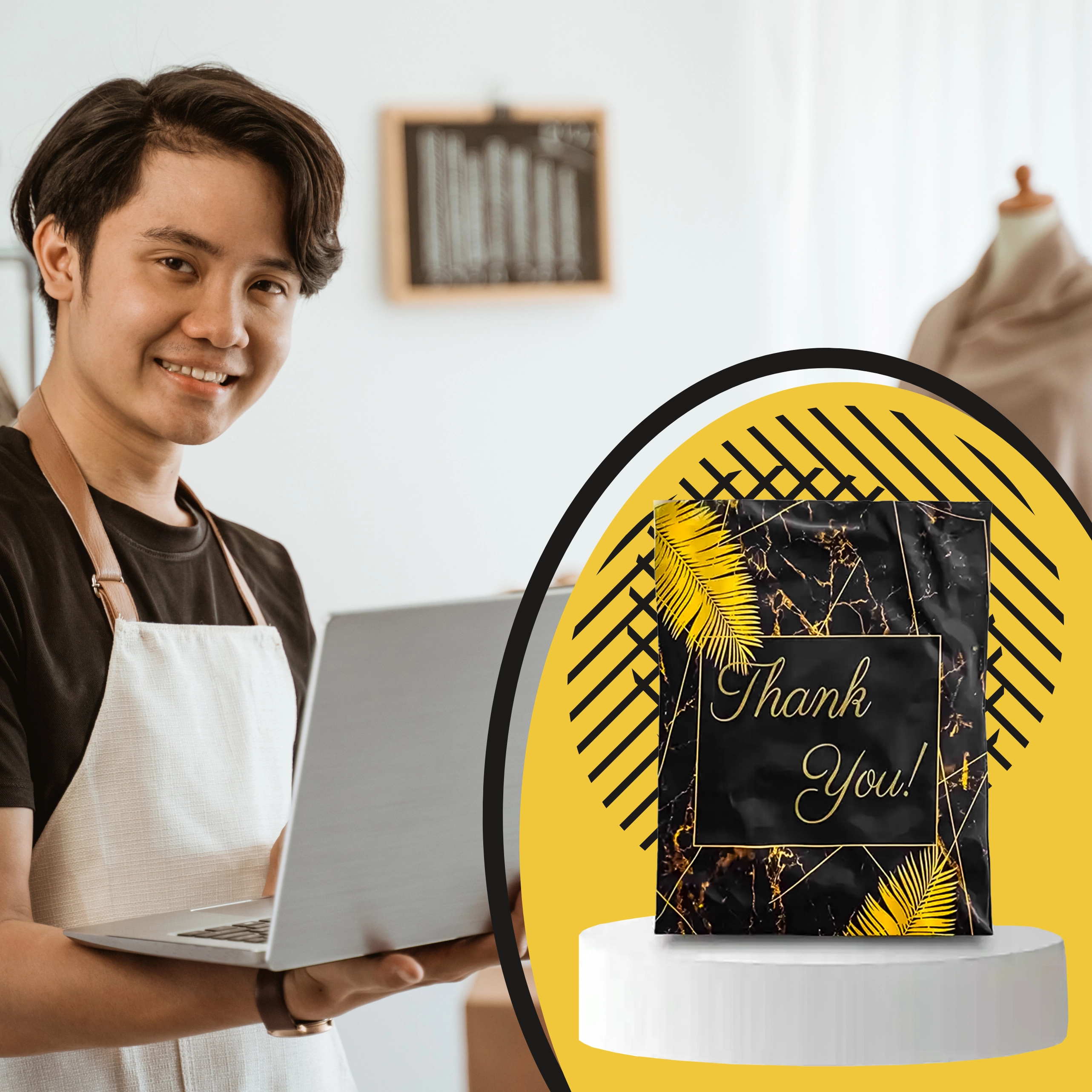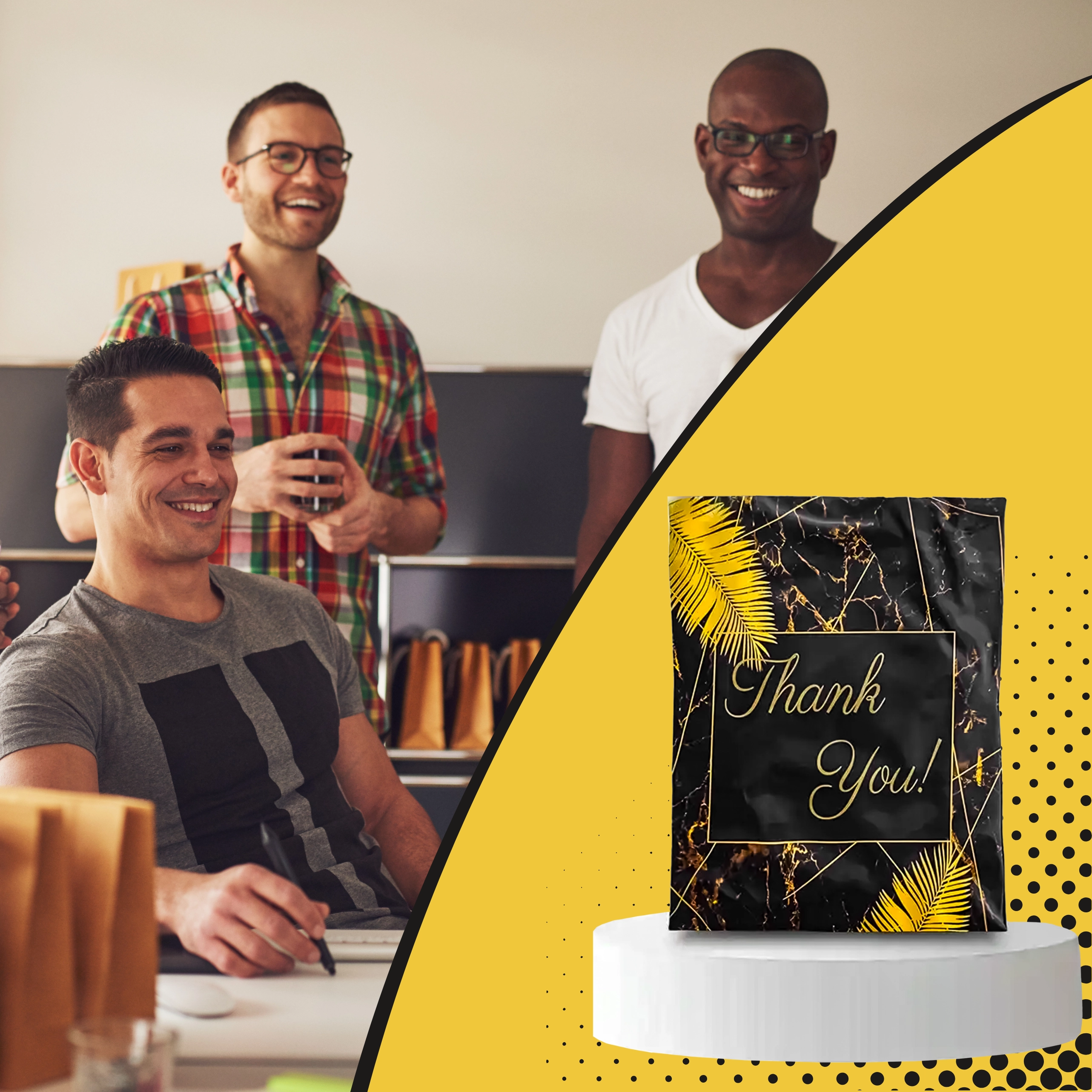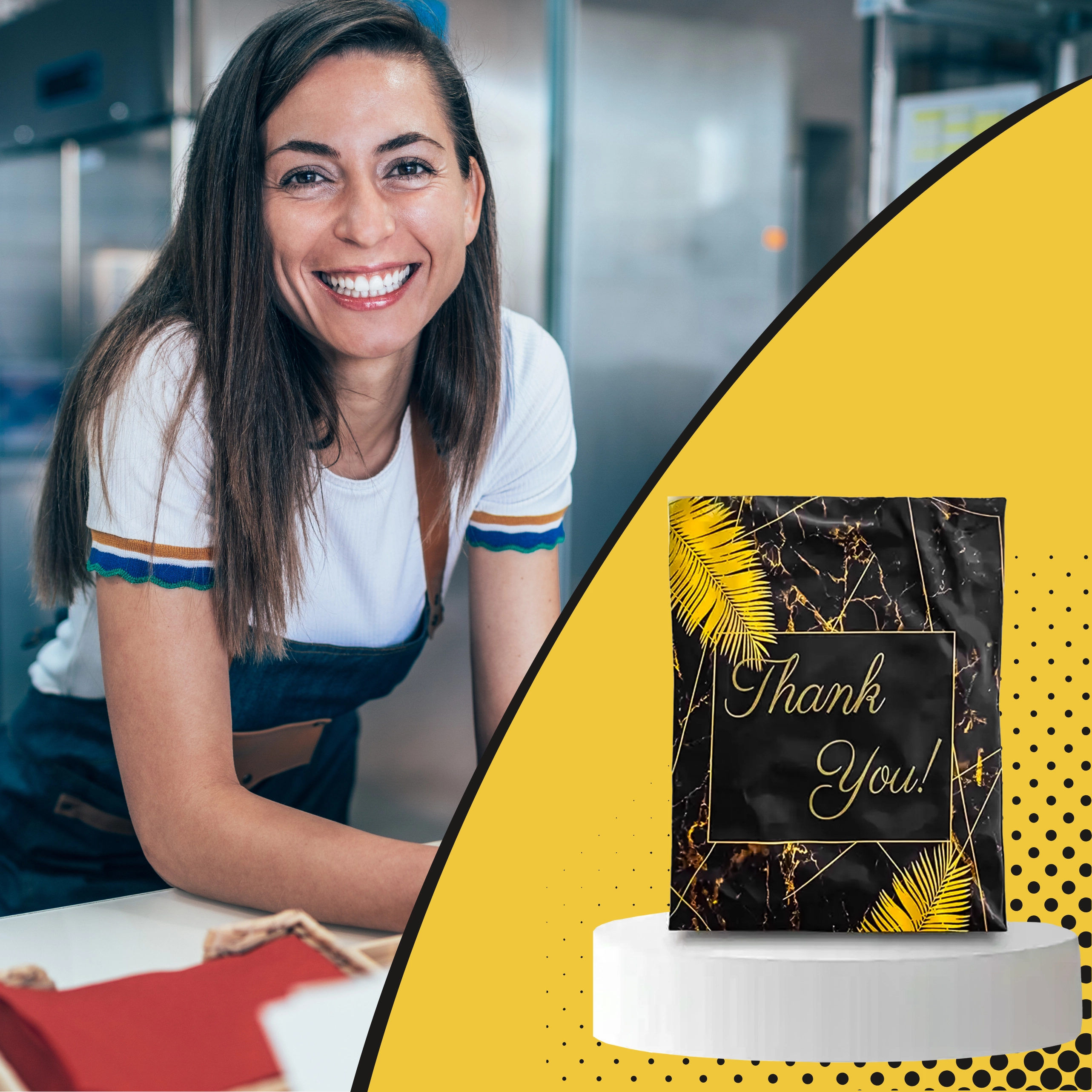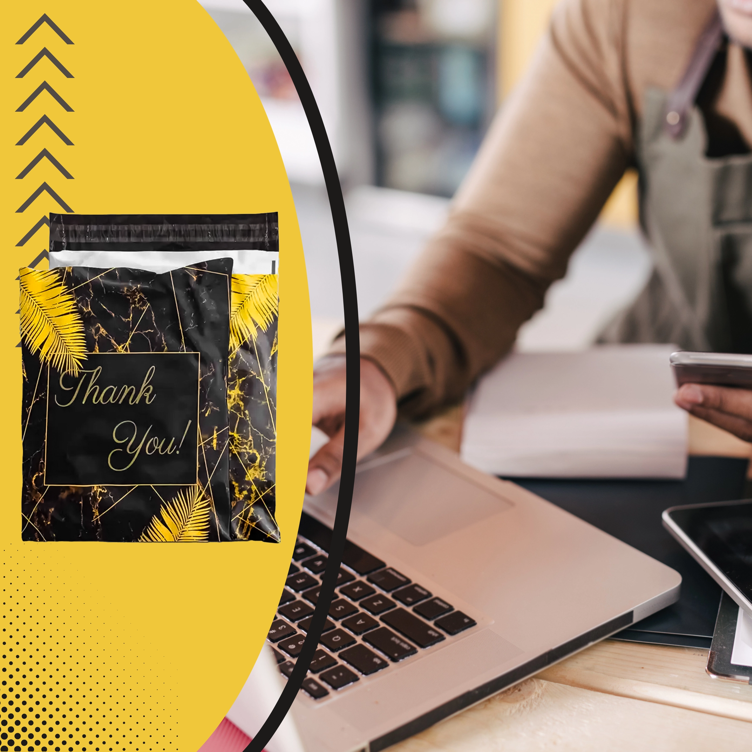 Szukasz niezawodnych opakowań dla e-sklepu lub regularnych przesyłek? Te wytrzymałe foliowe koperty kurierskie o wymiarach 255 × 370 mm świetnie sprawdzą się do mniejszych i średniej wielkości przedmiotów. Czarna powierzchnia z subtelnym napisem Thank You prezentuje się profesjonalnie i zwiększa pozytywne wrażenie z doręczenia.