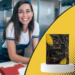 - Elegancki wygląd – czarne wykończenie z napisem Thank You