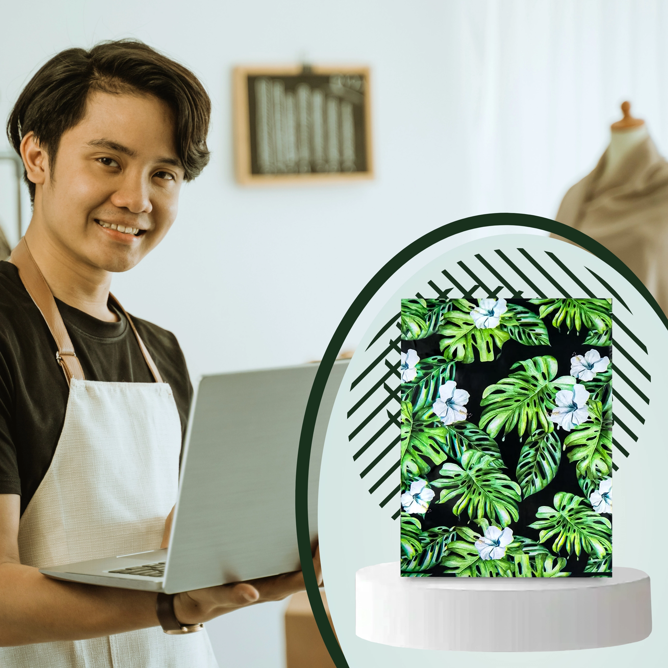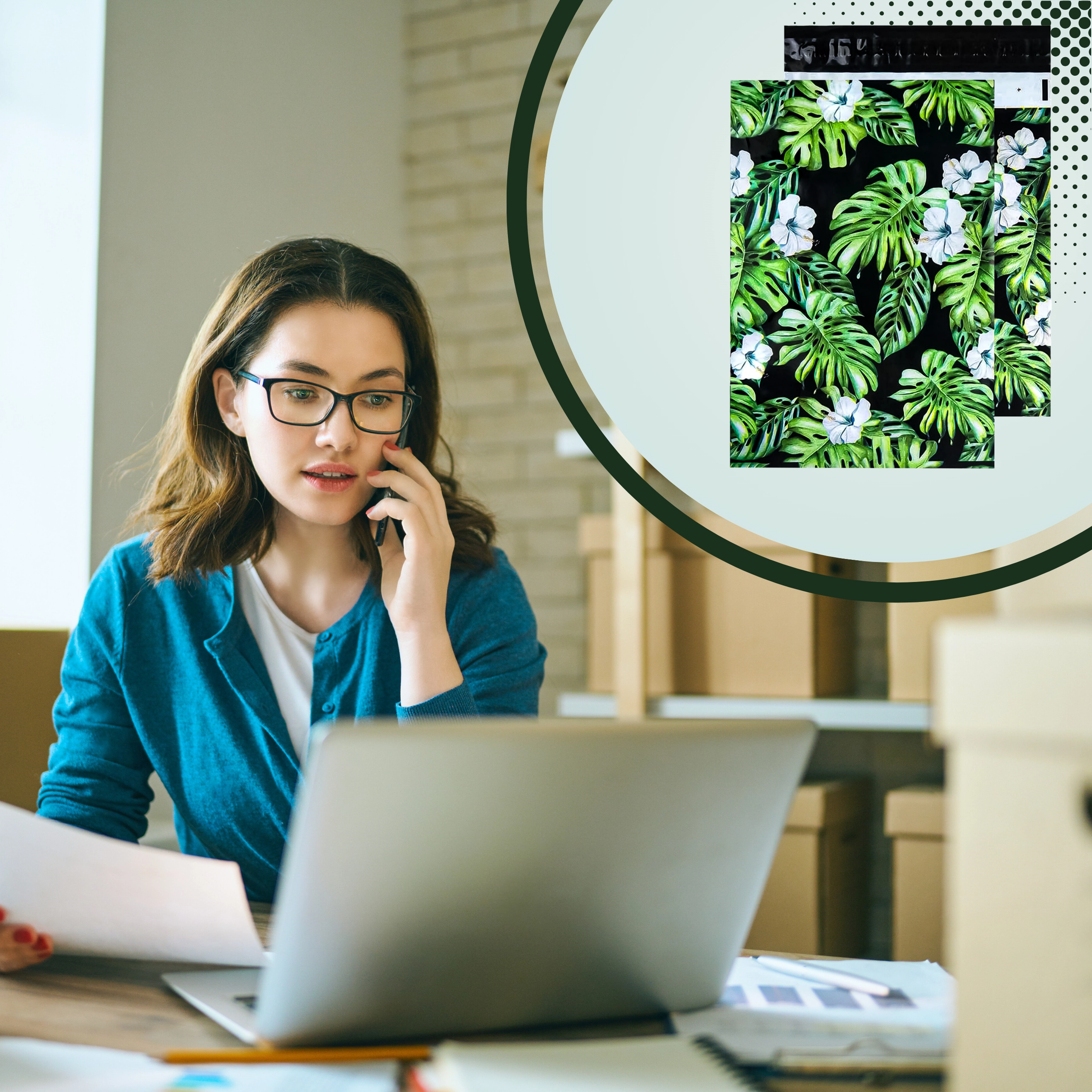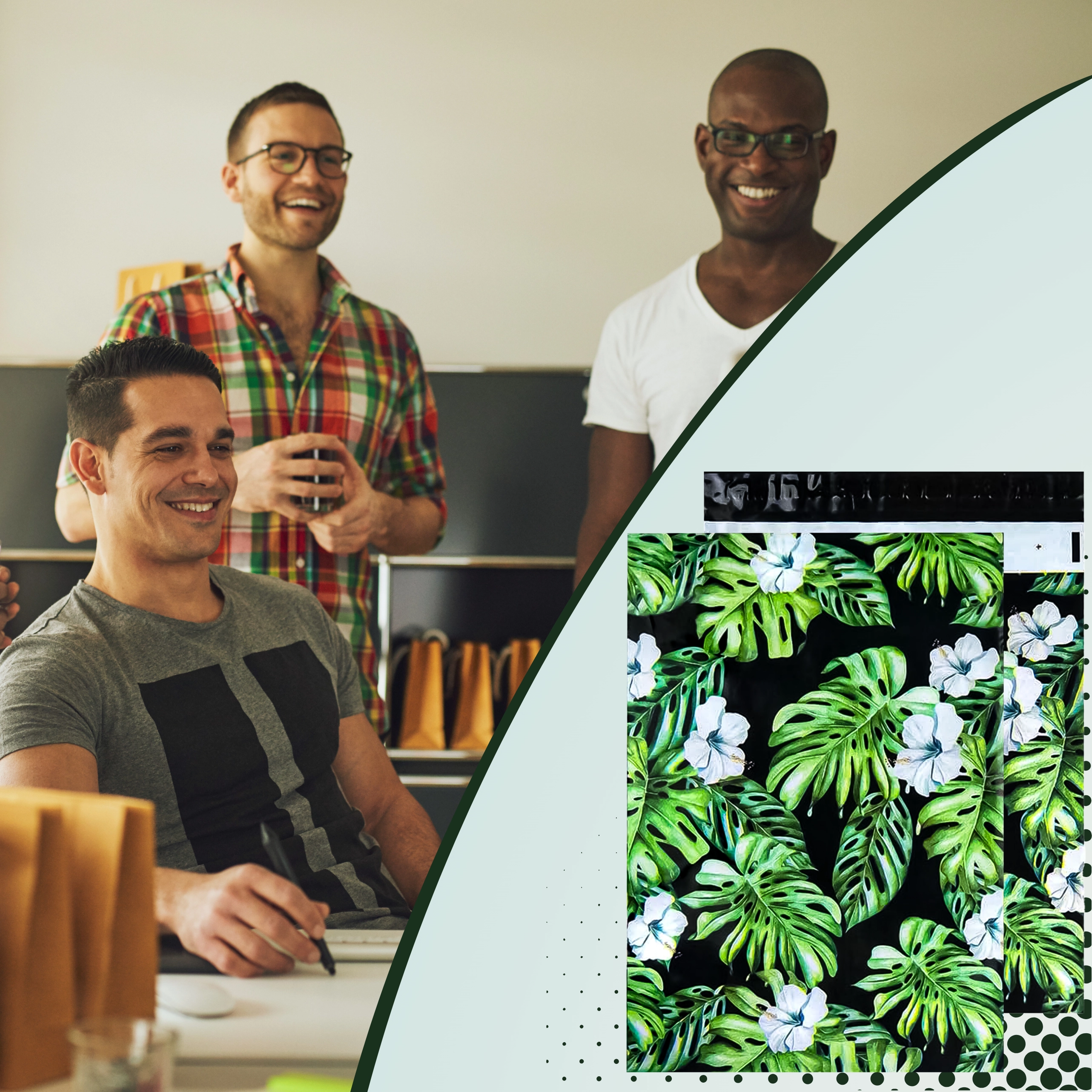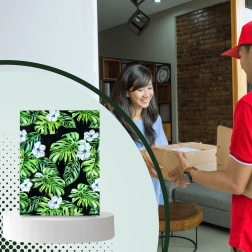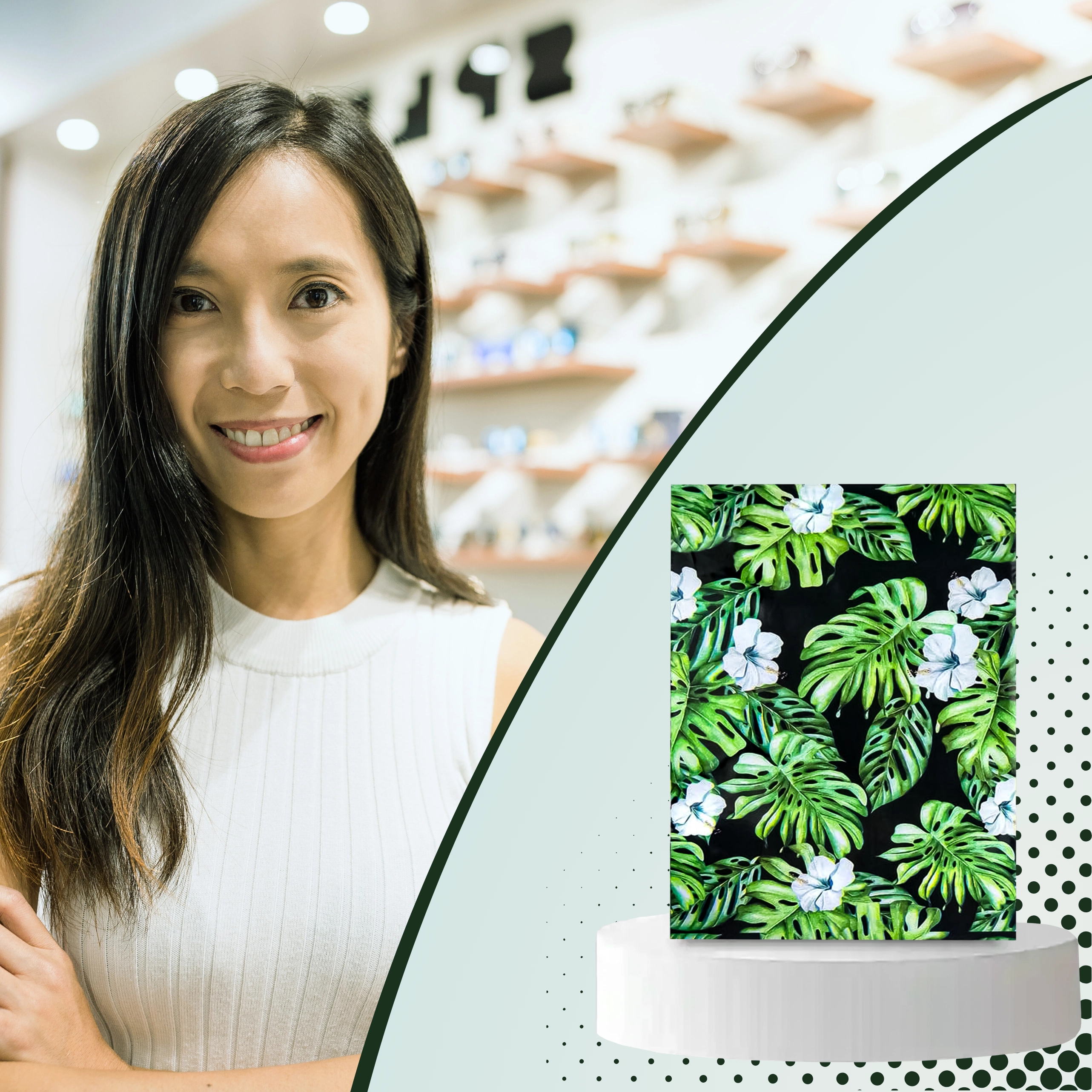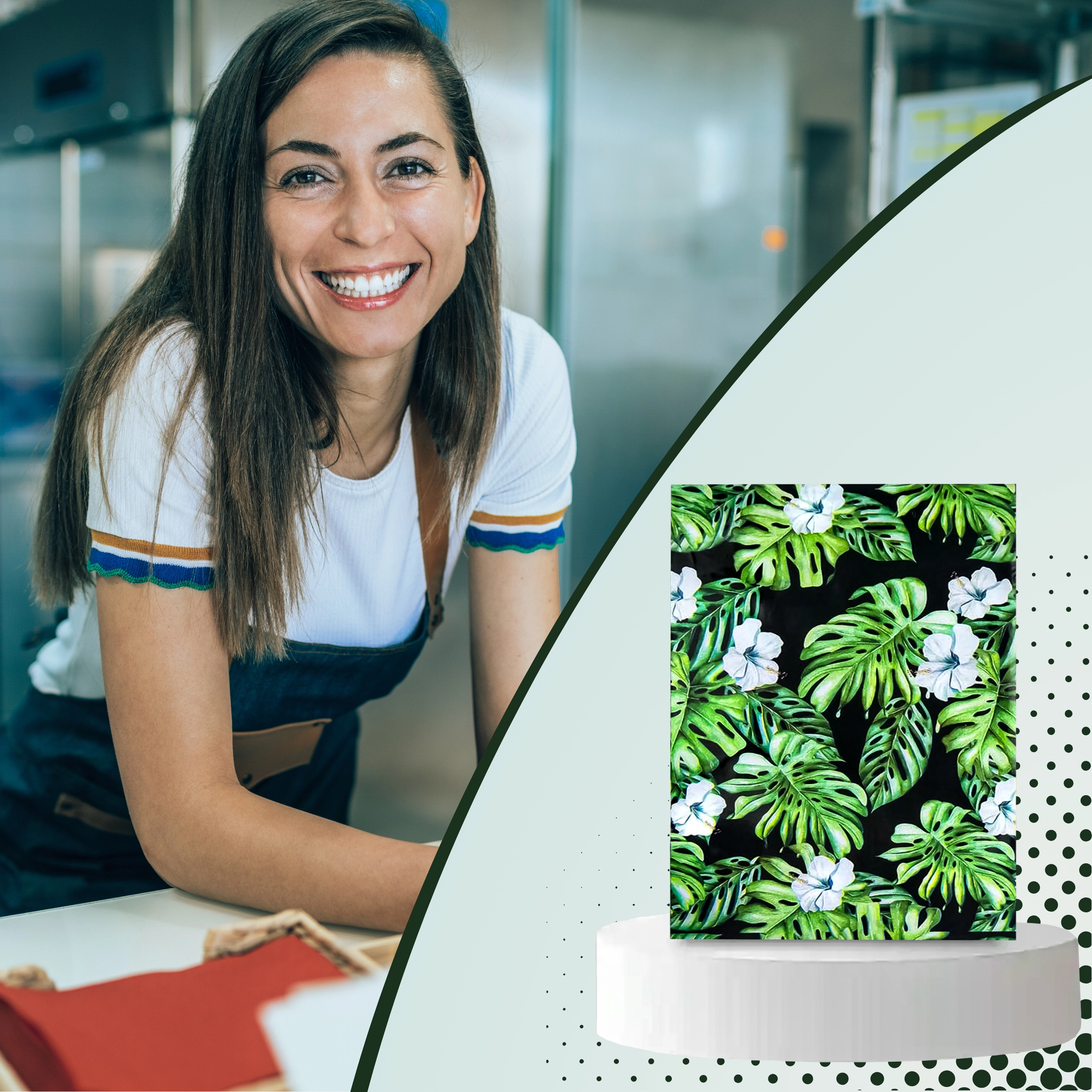 Nadruk z motywem liści i kwiatów na ciemnym tle nadaje Twoim przesyłkom wyrazisty wygląd i wzmacnia branding przy doręczeniu.