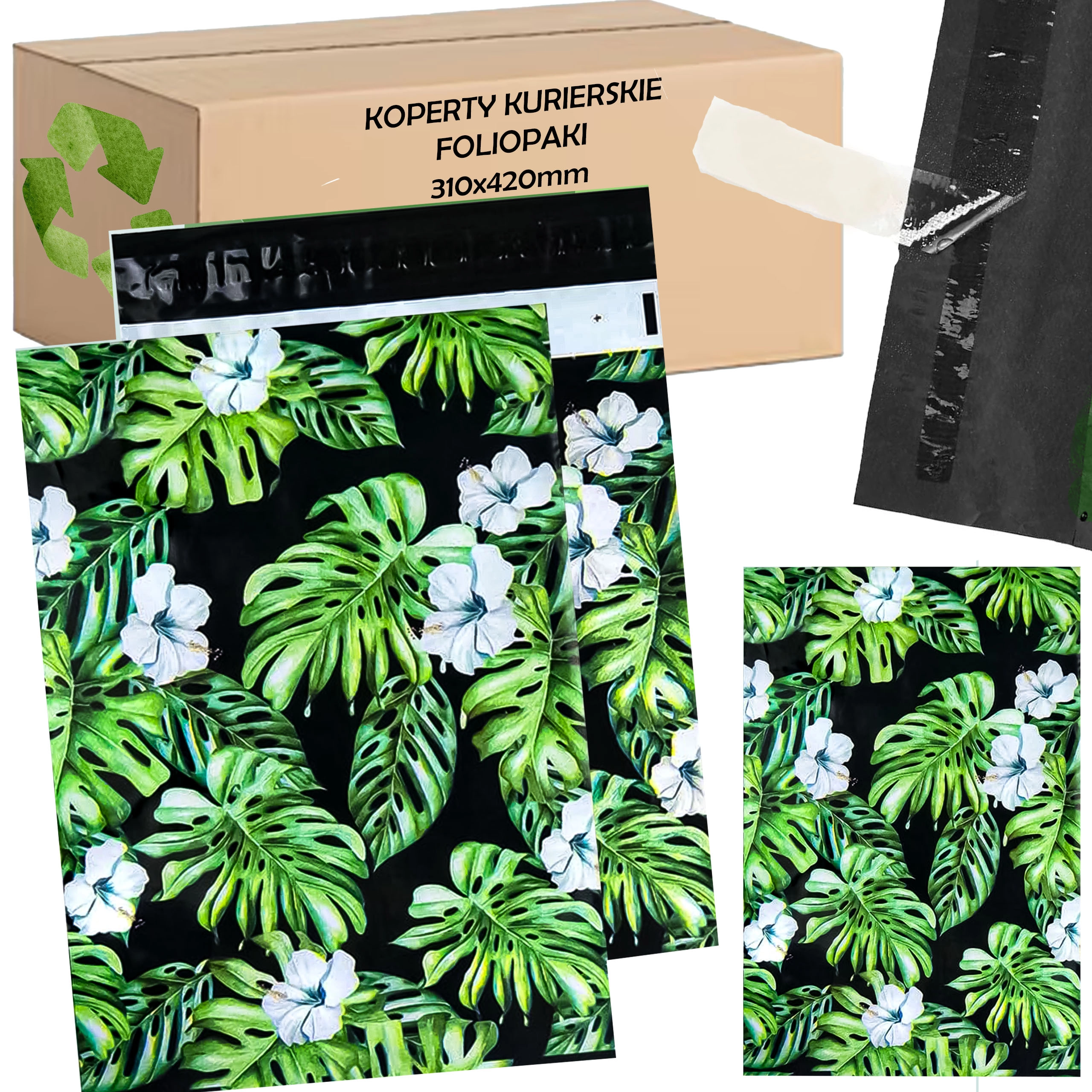 Idealne dla e‑shopów i nadawców prywatnych: odzież, tekstylia, pudełka, prezenty oraz inne lżejsze produkty. Atrakcyjny tropikalny nadruk podkreśli branding i stworzy profesjonalne wrażenie przy doręczeniu.