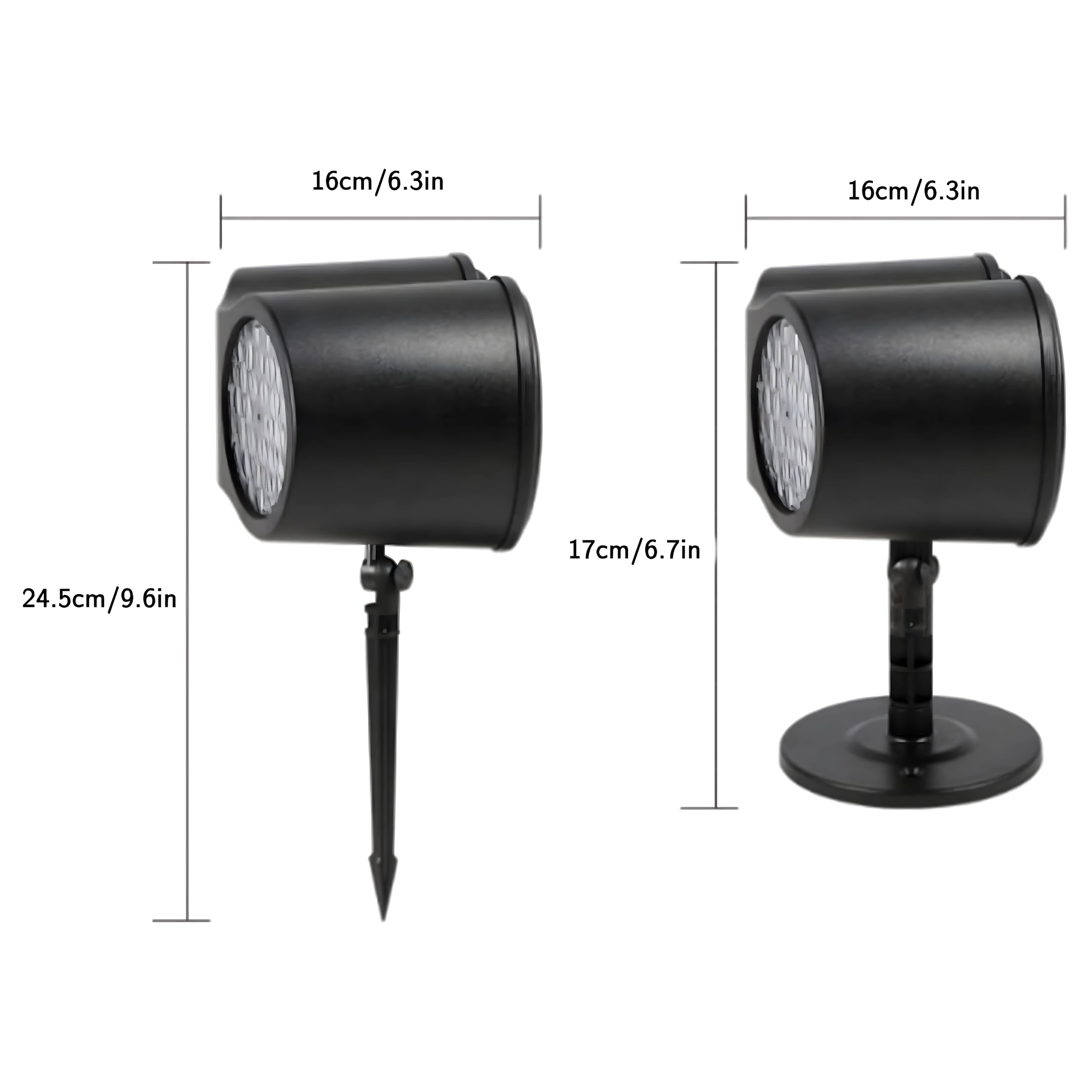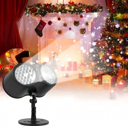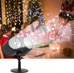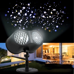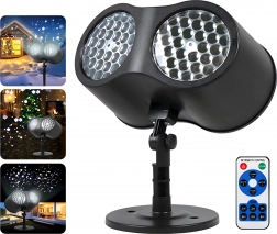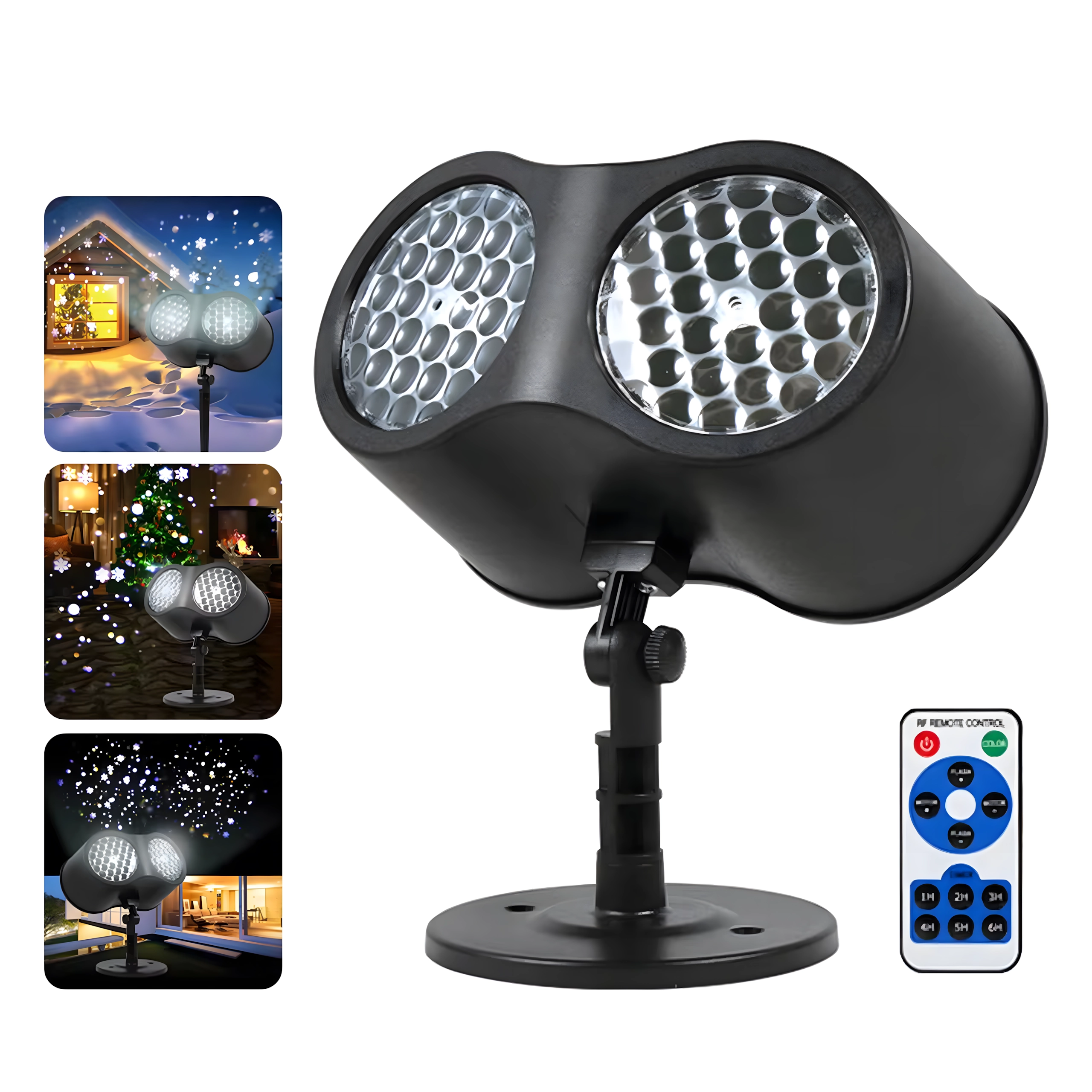 Podwójna optyka LED wyświetla jasne, dynamiczne płatki i kropki na dużych powierzchniach ścian i elewacji – idealne do szybkiej, świątecznej dekoracji bez drabin i łańcuchów.