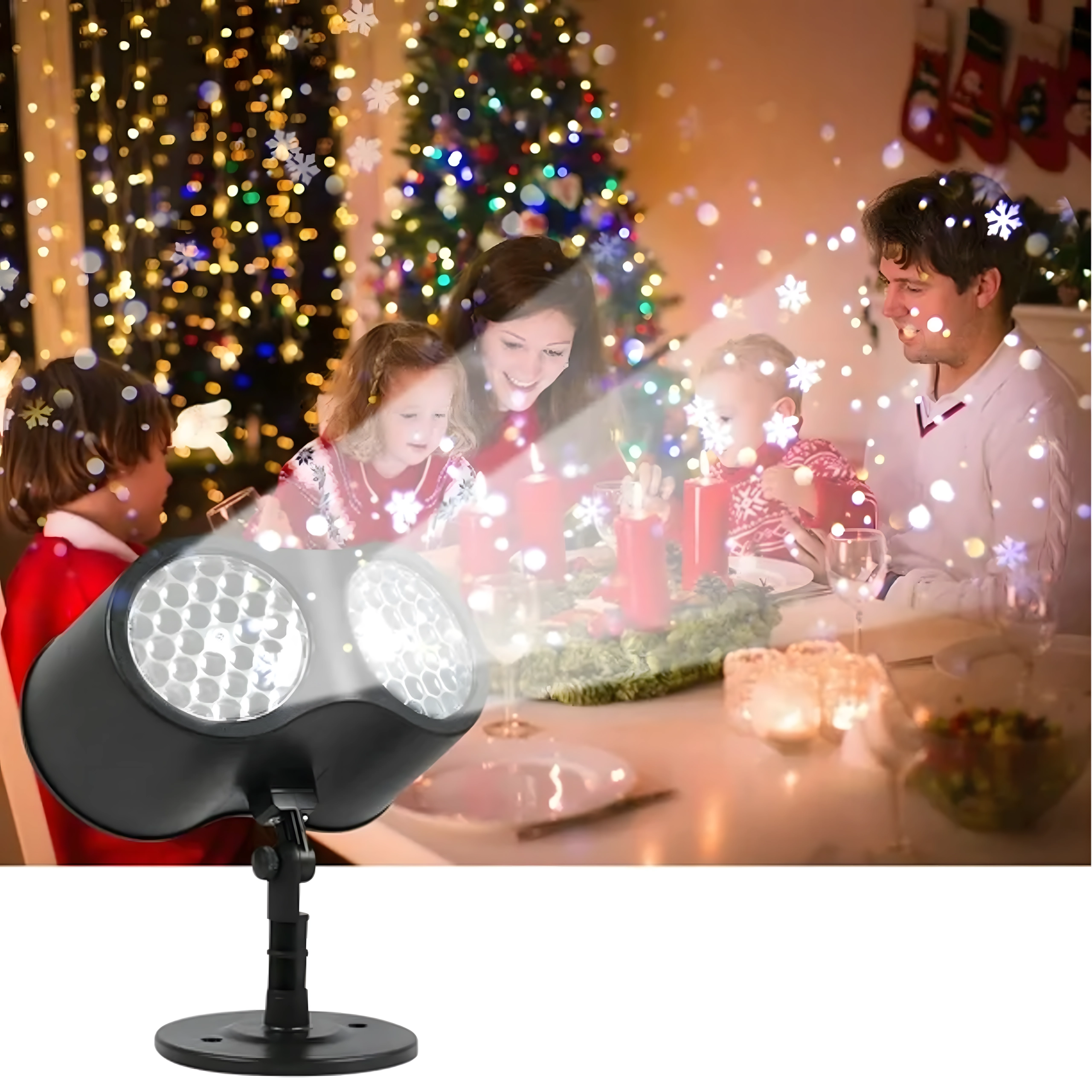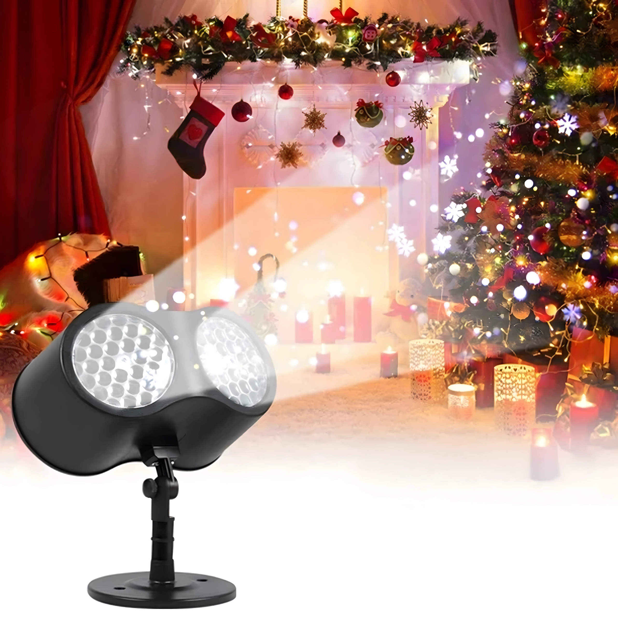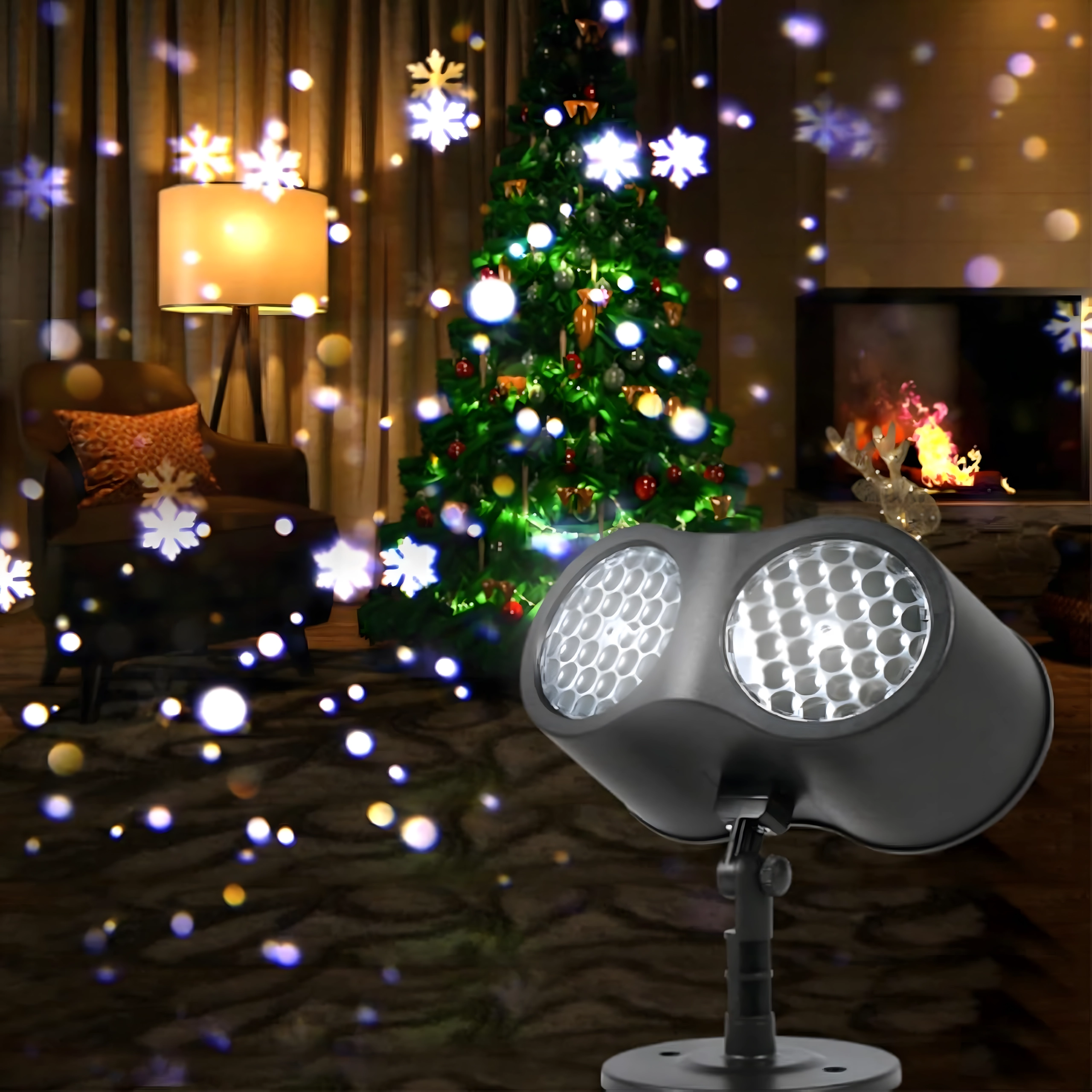 Rozświetl święta ze stylem. Podwójna optyka LED wyświetla jasne, dynamicznie poruszające się śnieżne motywy, które natychmiast tworzą świąteczny nastrój na elewacji domu, w salonie lub na tarasie. Szeroki zasięg pokrywa duże powierzchnie i zapewnia wyrazisty efekt także z większej odległości.