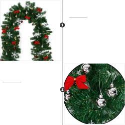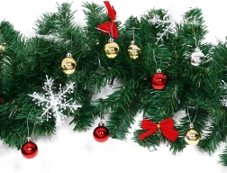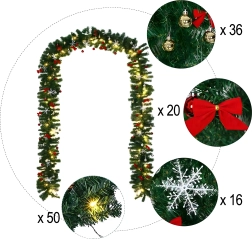 Wprowadź do domu magiczną świąteczną atmosferę dzięki girlandzie o długości 2,7 m. Gęste igliwie z 260 gałązkami zdobią bombki, kokardy i śnieżynki, a efektowne oświetlenie zapewnia 50 ciepłych diod LED. Idealna na kominek, drzwi, balustrady i schody.