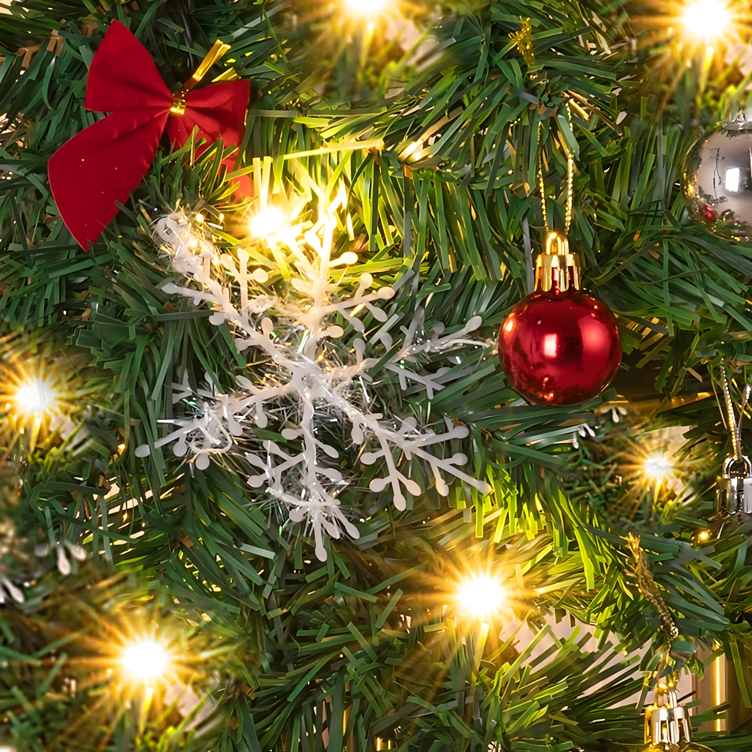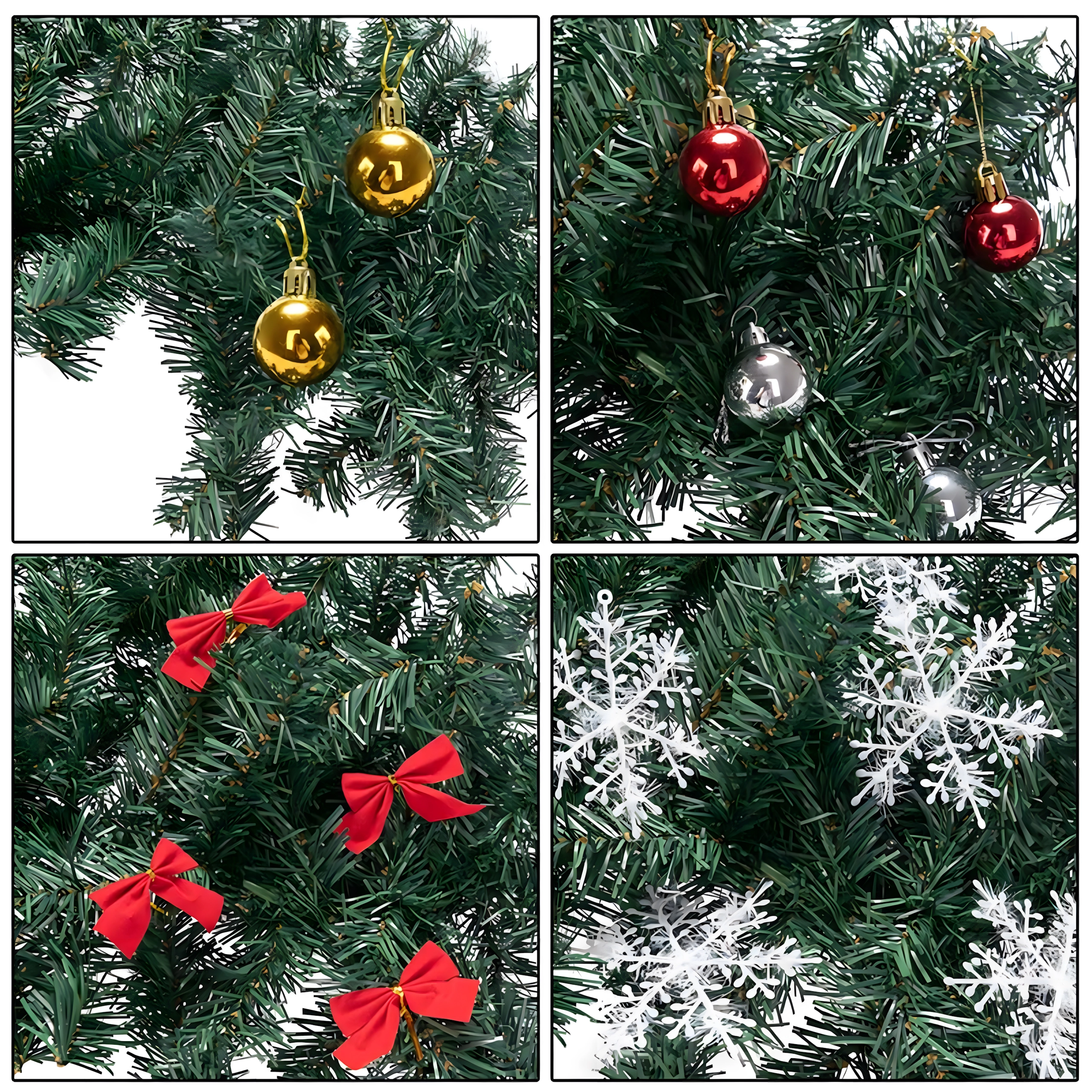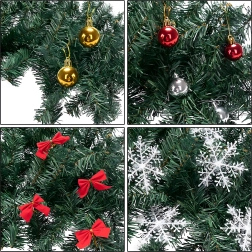 Aż 260 gałązek z ozdobami – bombki, kokardy i śnieżynki – dla pełnego i reprezentacyjnego wyglądu bez konieczności dodatkowych akcesoriów.
