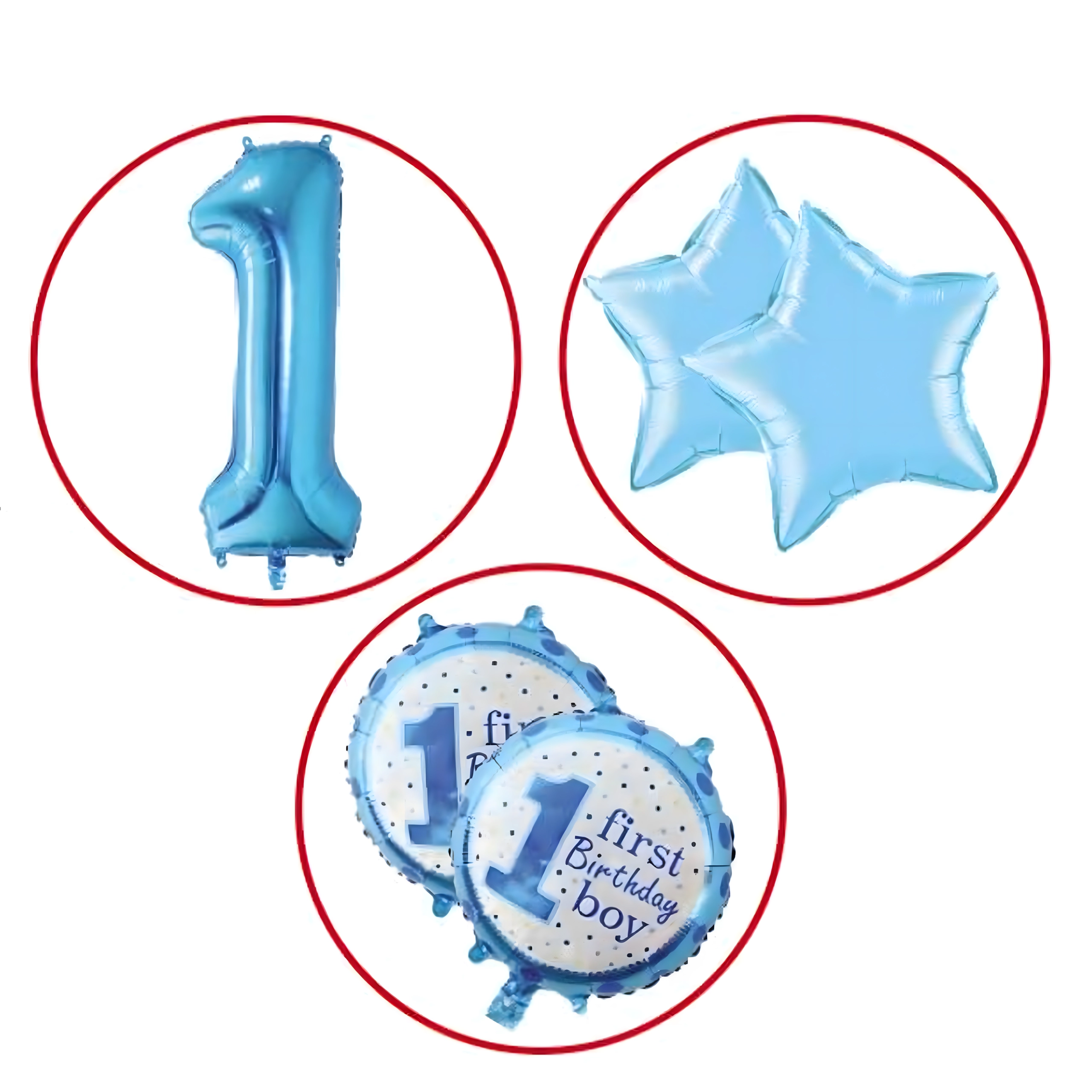 - Cyfra 1, gwiazdki, napis "First Birthday Boy"