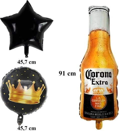 Ten tematyczny zestaw zapewnia szybką i efektowną dekorację z ikonicznym motywem Corona. Połączenie butelki piwa, koron i czarnych gwiazd tworzy wyrazisty, nowoczesny wygląd, który pasuje do imprez dla dorosłych i nieformalnych wydarzeń.