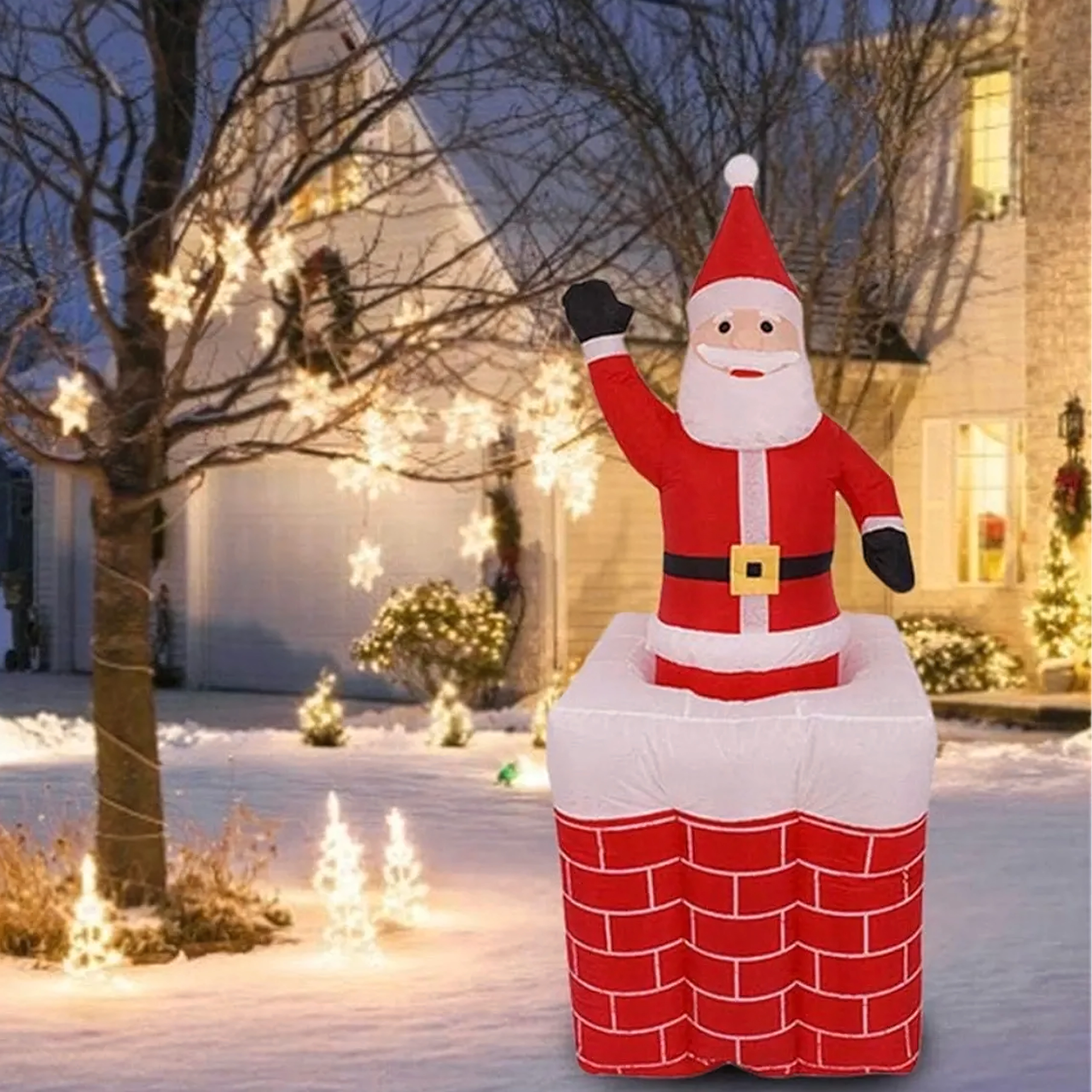 Wprowadź do swojego domu magię Świąt dzięki dekoracji, która zachwyci dzieci i dorosłych. Nadmuchiwany Mikołaj w kominie płynnie się wysuwa, ma oświetlenie LED i oferuje łatwe użytkowanie oraz konserwację. Idealny wybór do zimowej aranżacji, która stanie się hitem sezonu.