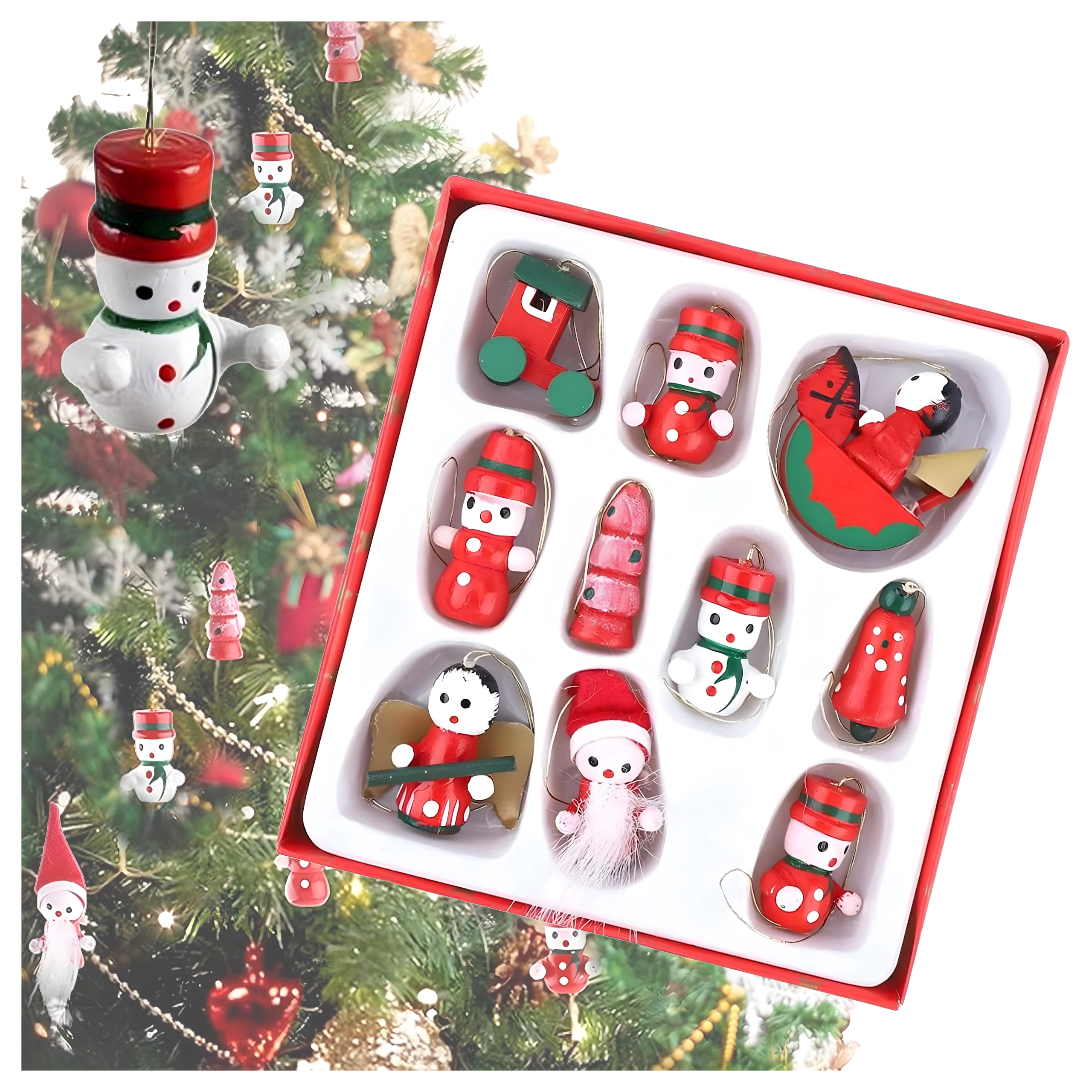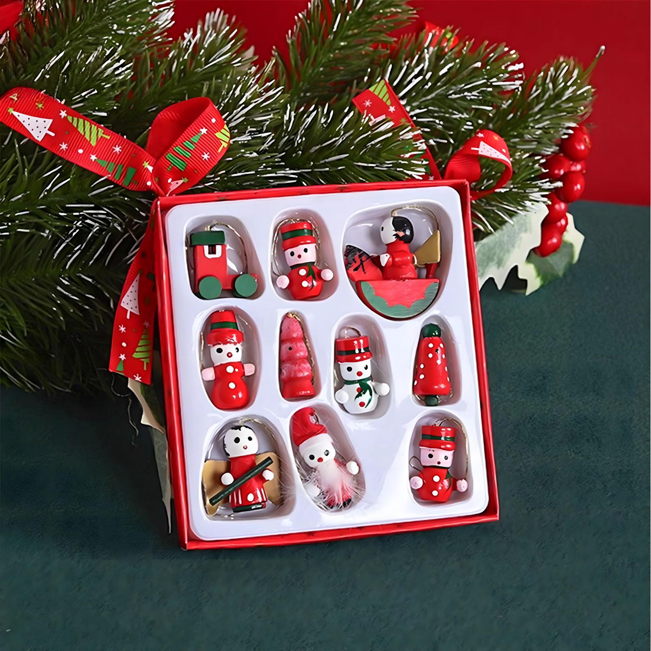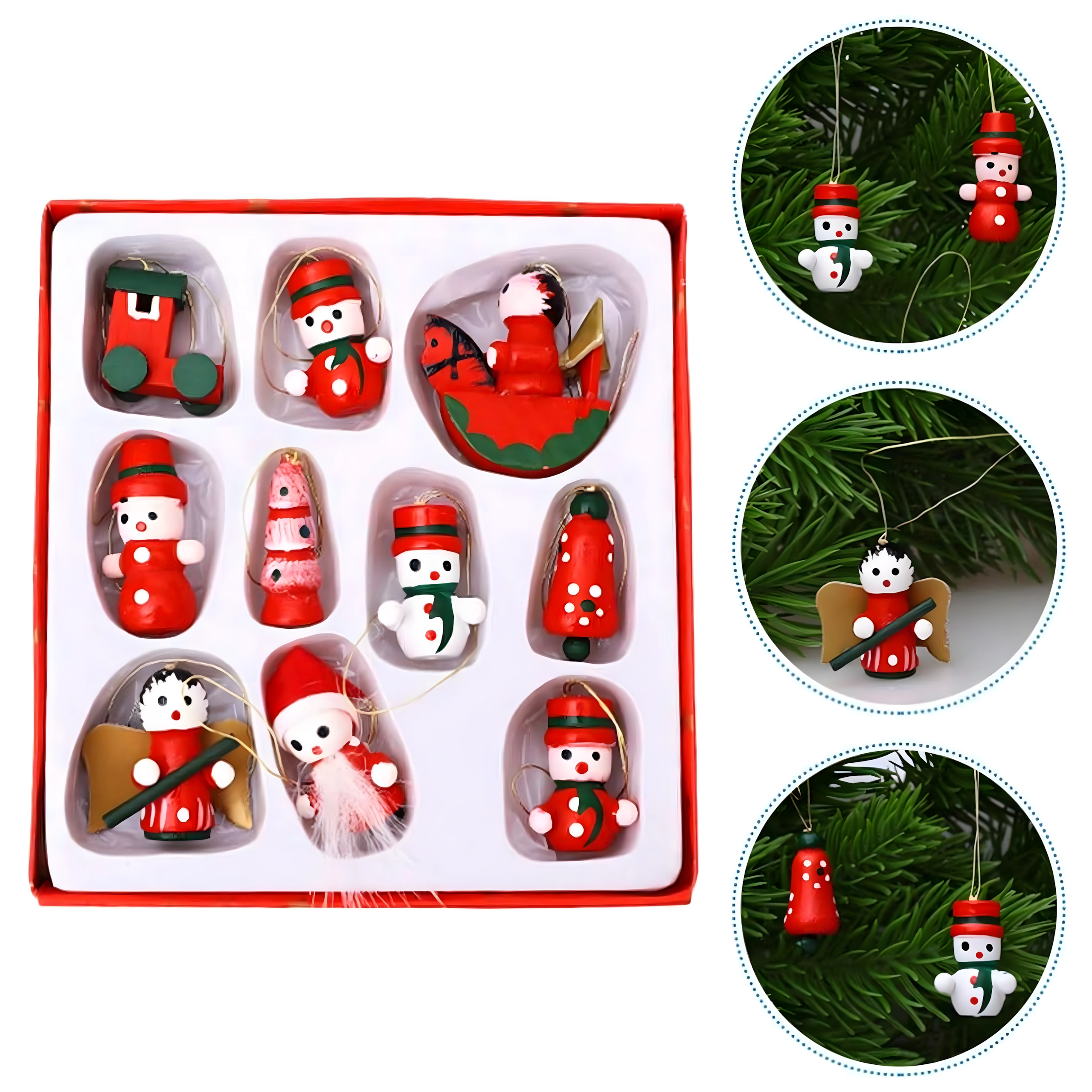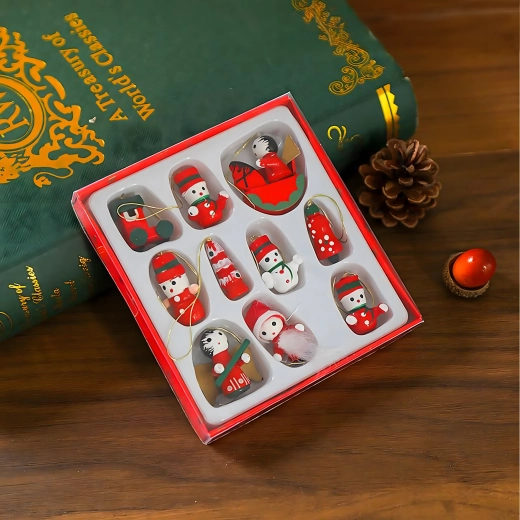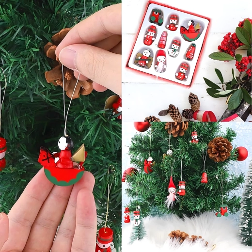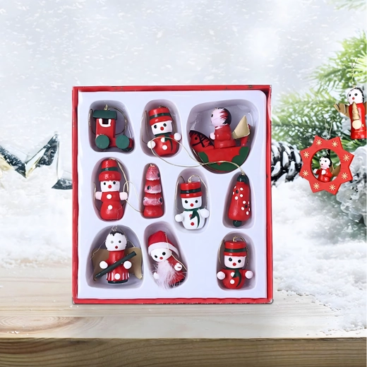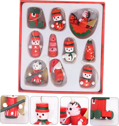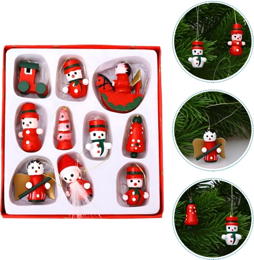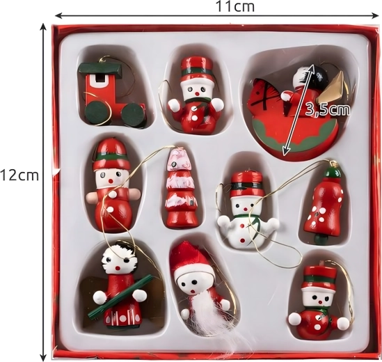 Zestaw 10 drewnianych świątecznych zawieszek to ponadczasowa dekoracja, która doda uroku każdej choince i świątecznym aranżacjom. Wykonane z lekkiego, nietłukącego się drewna, są bezpieczne dla dzieci i zwierząt domowych. Różne motywy – bucik, Mikołaj, choinka, anioł, dzwonek i inne – stworzą w domu ciepłą, świąteczną atmosferę.