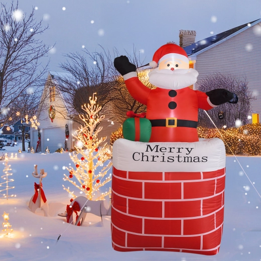 Nadmuchiwany Mikołaj w kominie to stylowa świąteczna dekoracja, która natychmiast doda Twojej przestrzeni świątecznego uroku. Wbudowane oświetlenie LED zapewnia imponujący efekt także po zmroku, a automatyczne nadmuchiwanie ułatwia szybką instalację bez wysiłku.