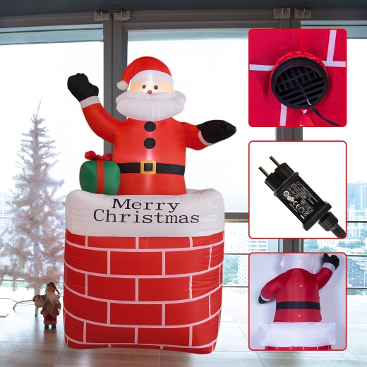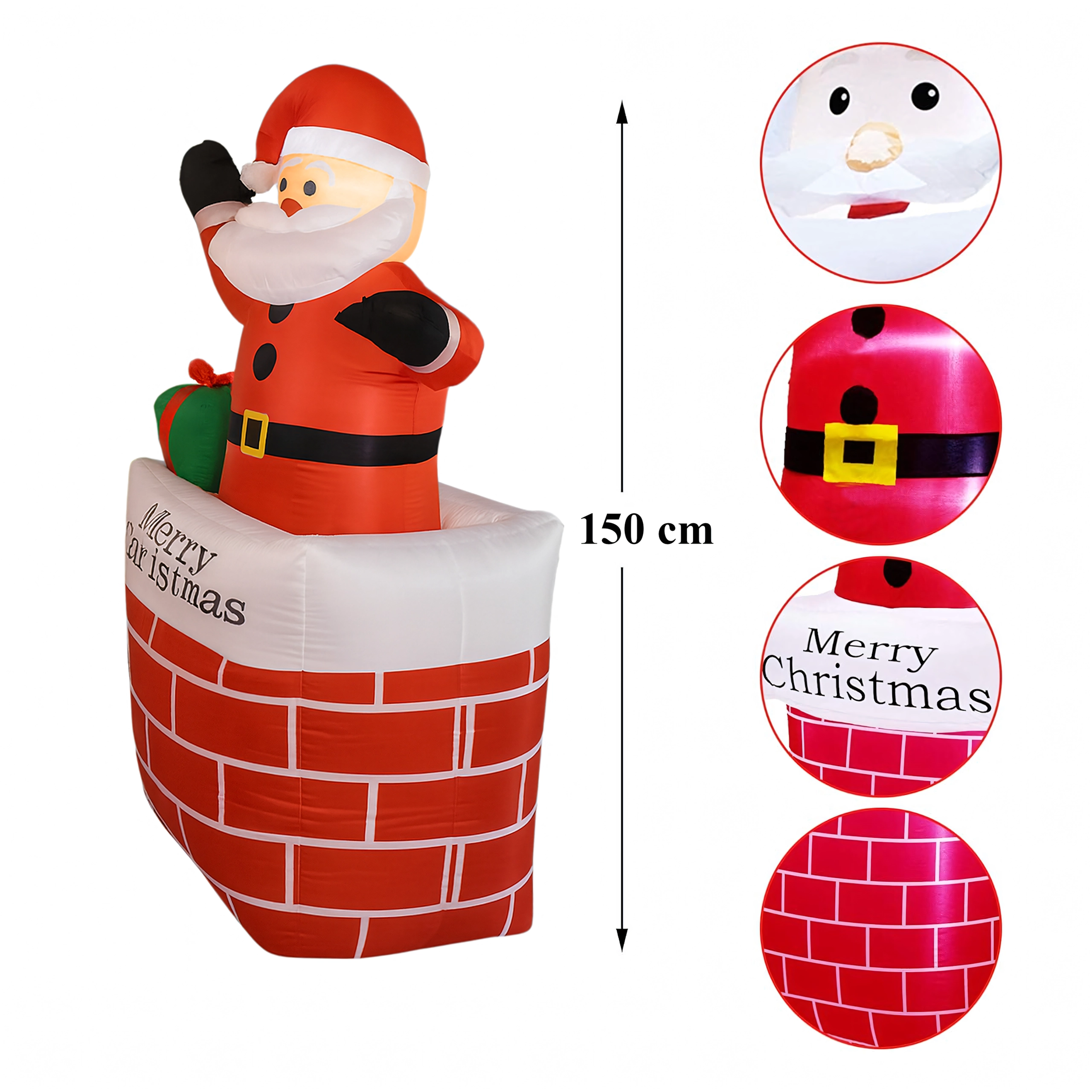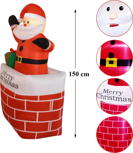 Stwórz magiczną świąteczną atmosferę dzięki dekoracji nadmuchiwany Mikołaj w kominie o wysokości 150 cm. Dzięki zintegrowanemu podświetleniu LED i automatycznemu nadmuchiwaniu ta ozdoba jest efektowna, bezpieczna i łatwa w użyciu. Doskonale sprawdzi się w domu, w ogrodzie, w sklepie oraz na świątecznych wydarzeniach, ciesząc dzieci i dorosłych.
