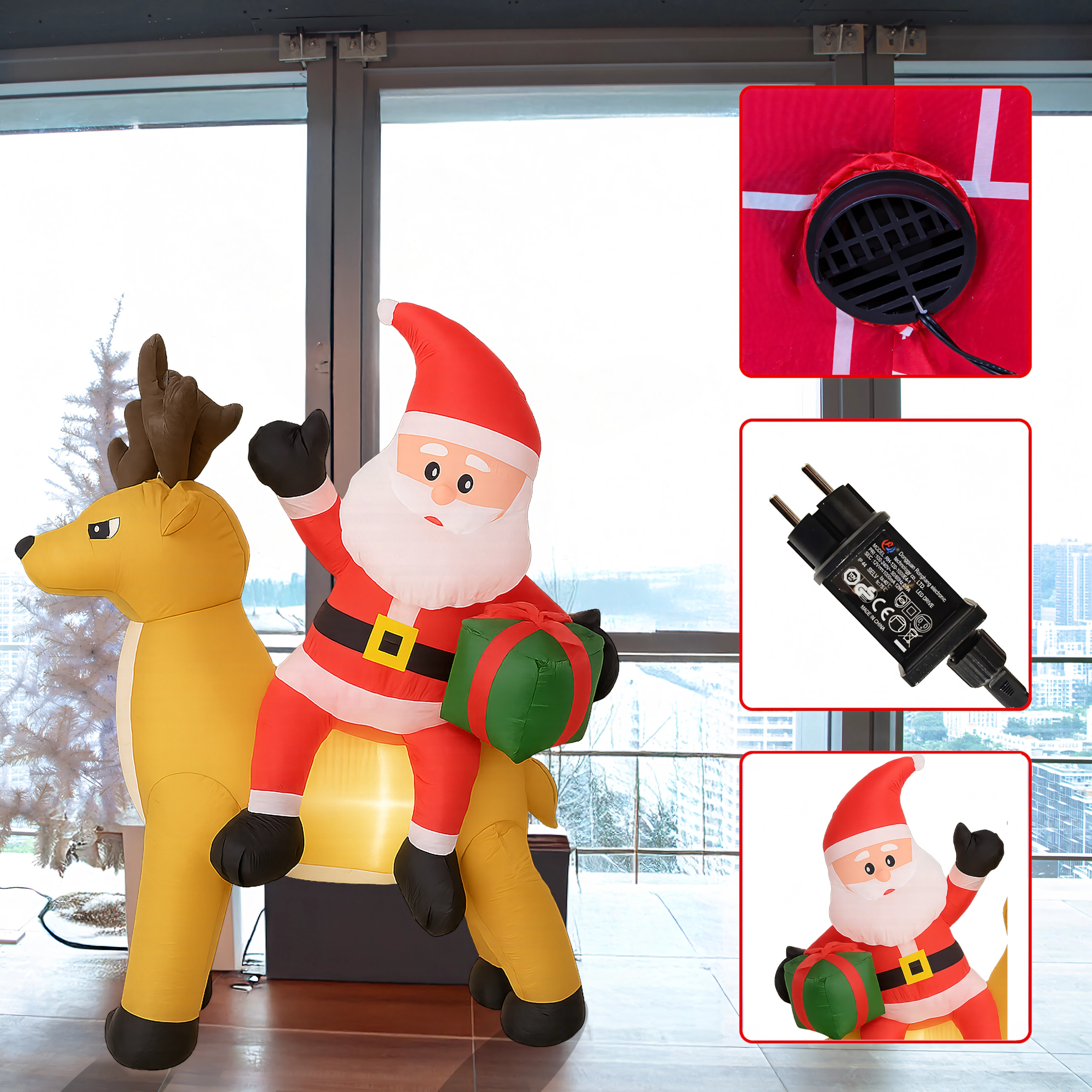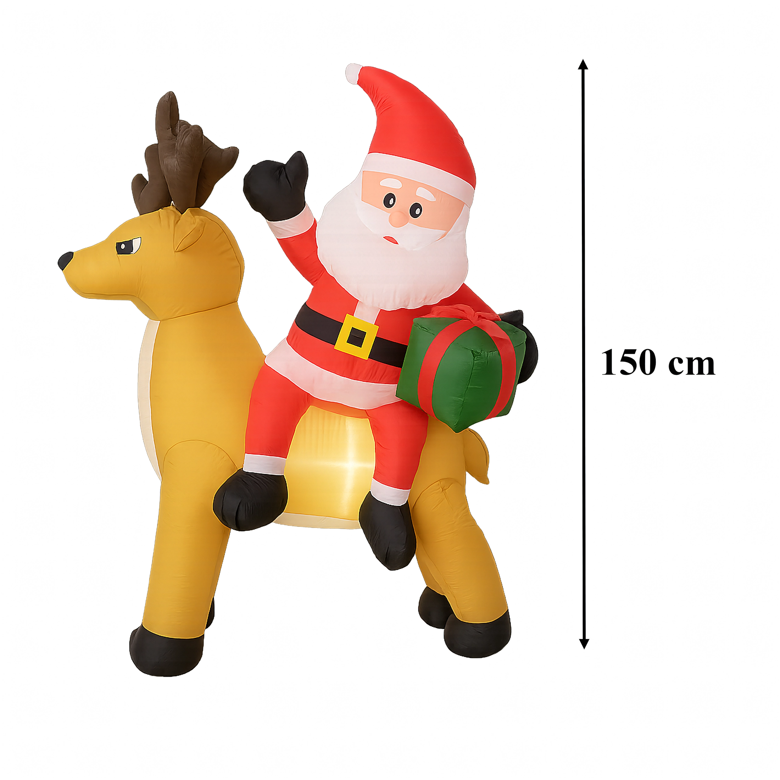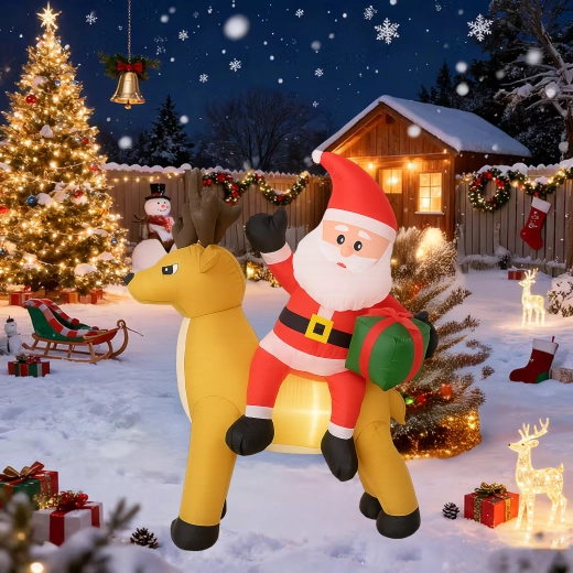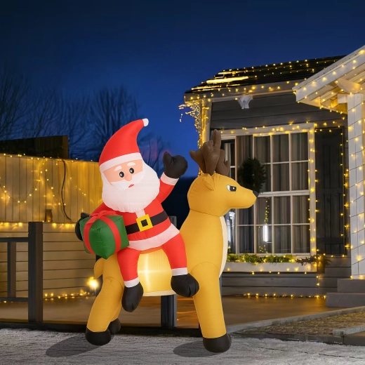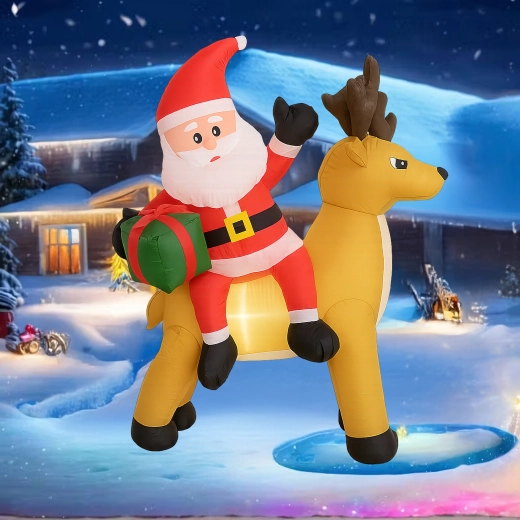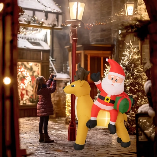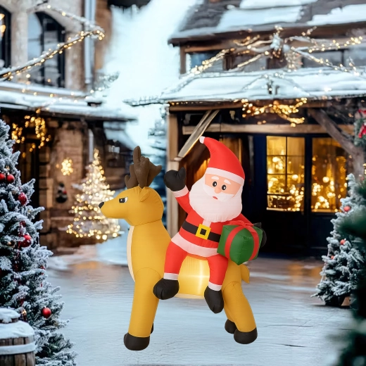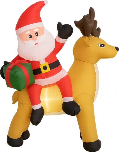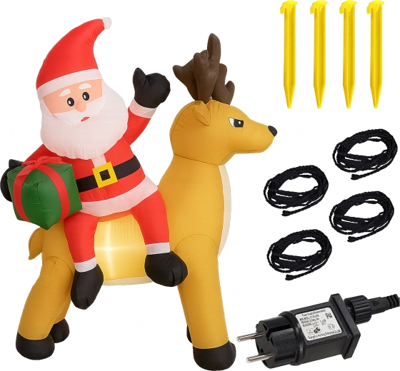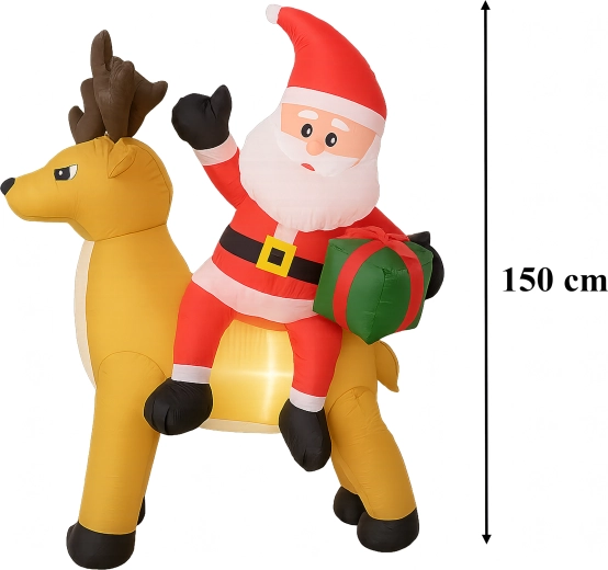 Stylowa świąteczna ozdoba, która przyciąga uwagę dzieci i dorosłych. Nadmuchiwany Mikołaj z reniferem stworzy zachwycającą scenę przy wejściu, w ogrodzie lub w salonie. Oświetlenie LED zapewnia piękny efekt po zmroku, a cichy automatyczny wentylator napompuje dekorację w kilka minut.