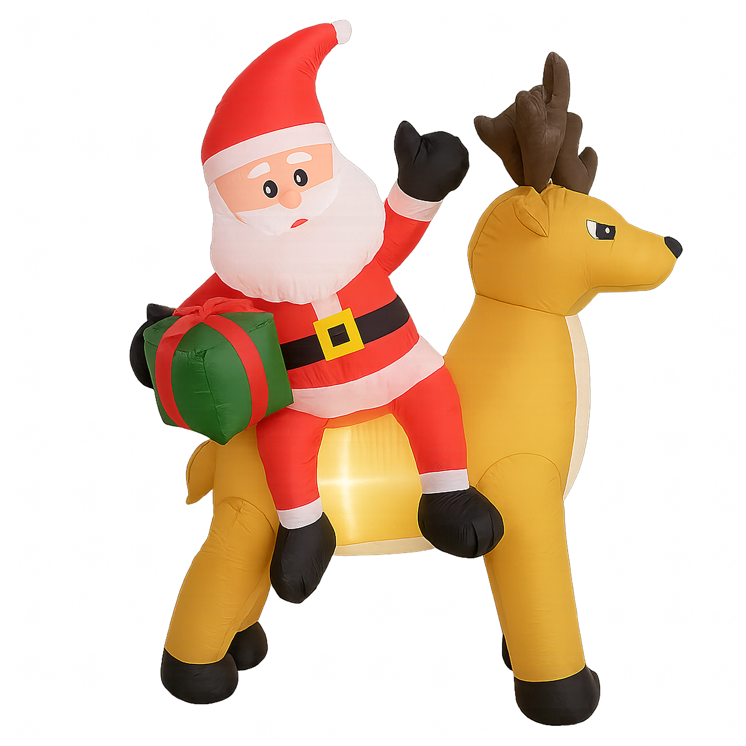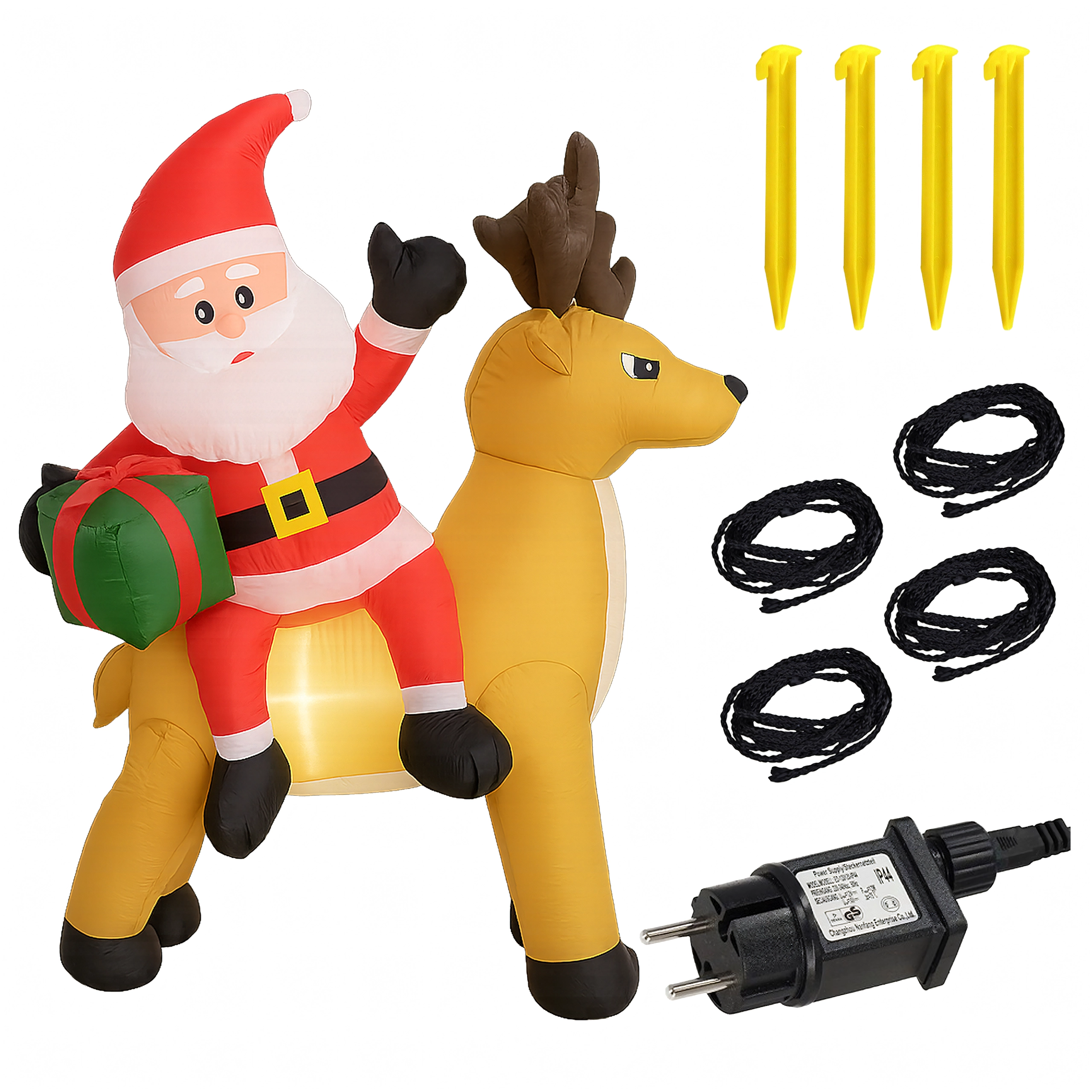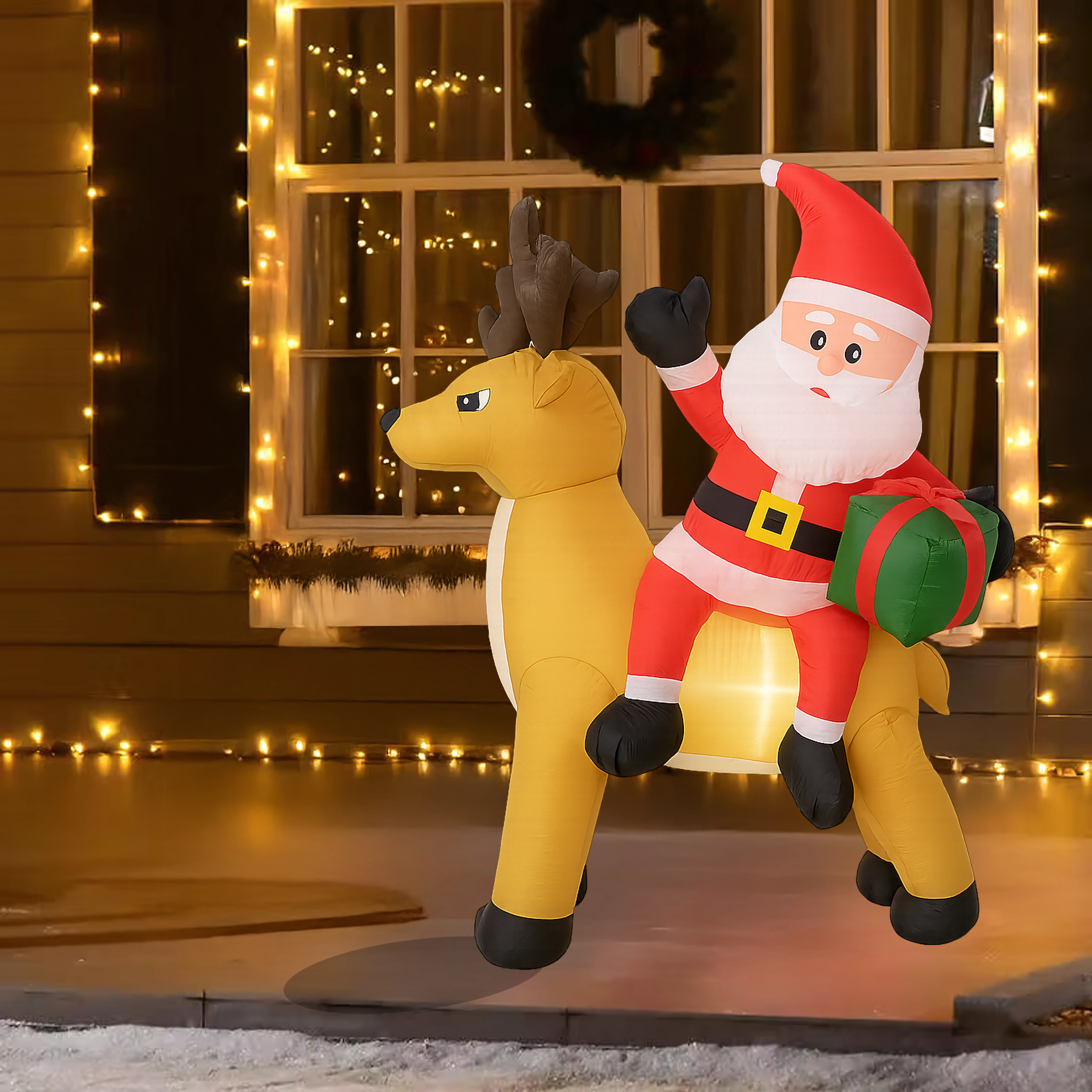 Stylowa świąteczna ozdoba, która przyciąga uwagę dzieci i dorosłych. Nadmuchiwany Mikołaj z reniferem stworzy zachwycającą scenę przy wejściu, w ogrodzie lub w salonie. Oświetlenie LED zapewnia piękny efekt po zmroku, a cichy automatyczny wentylator napompuje dekorację w kilka minut.