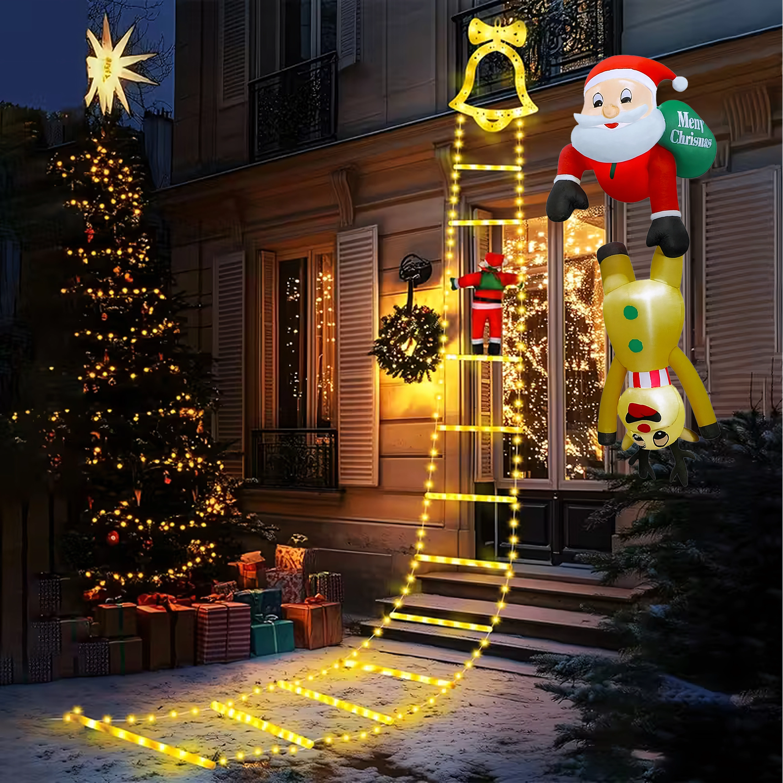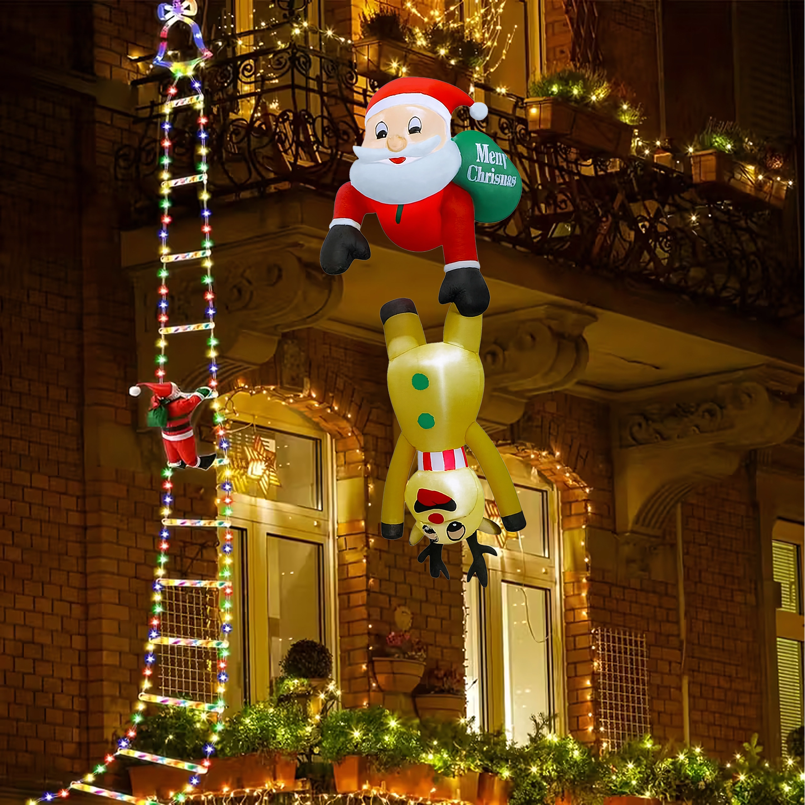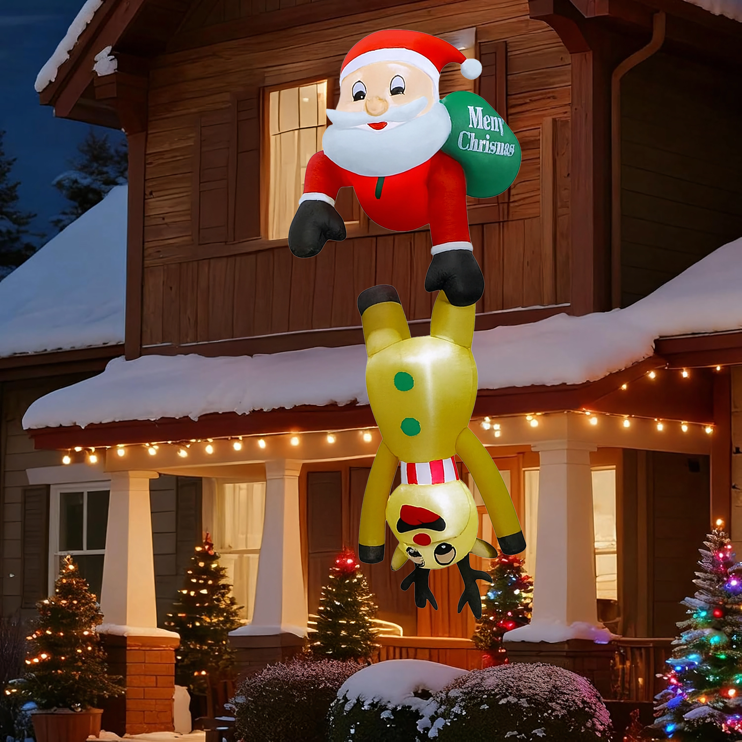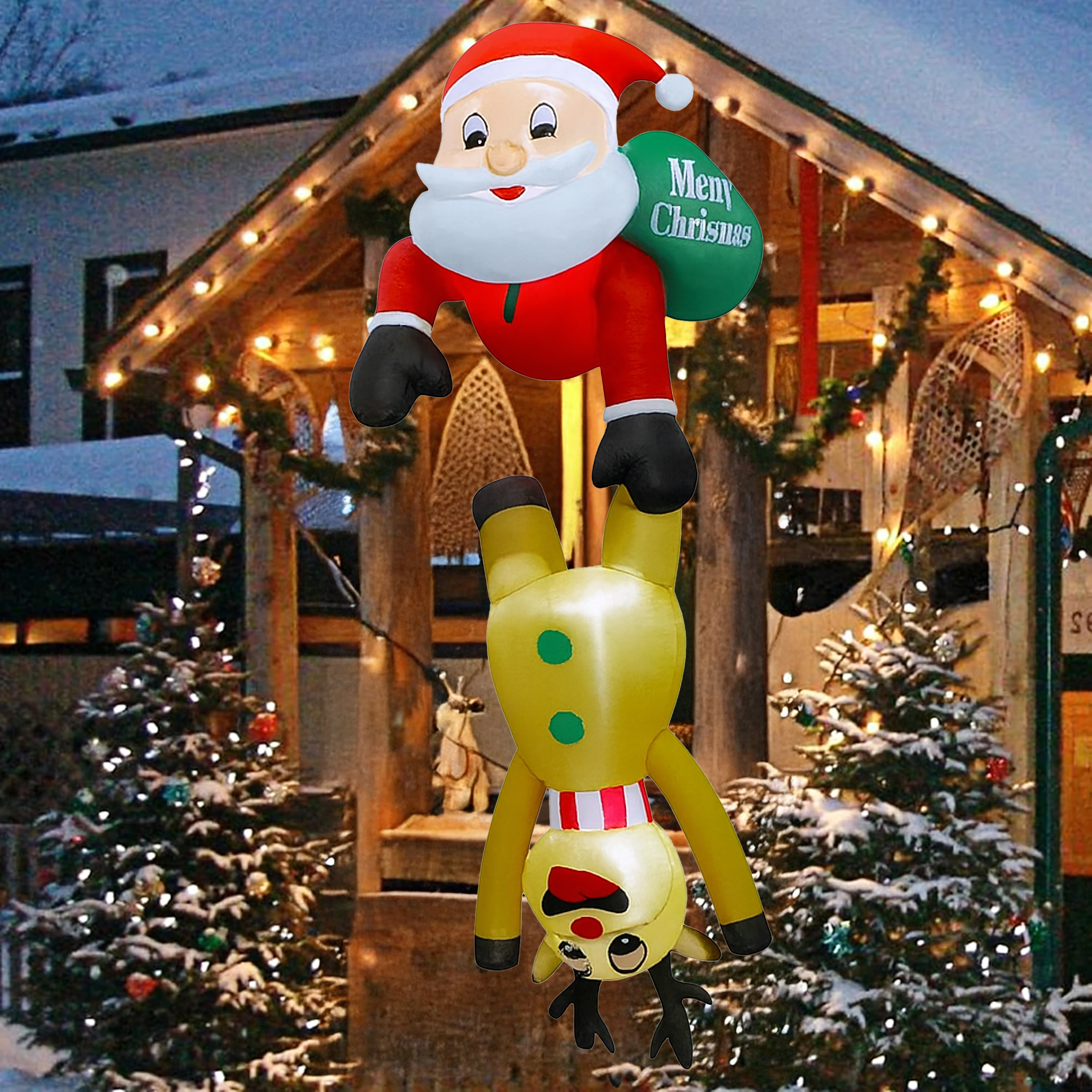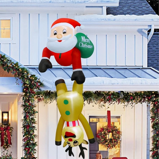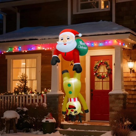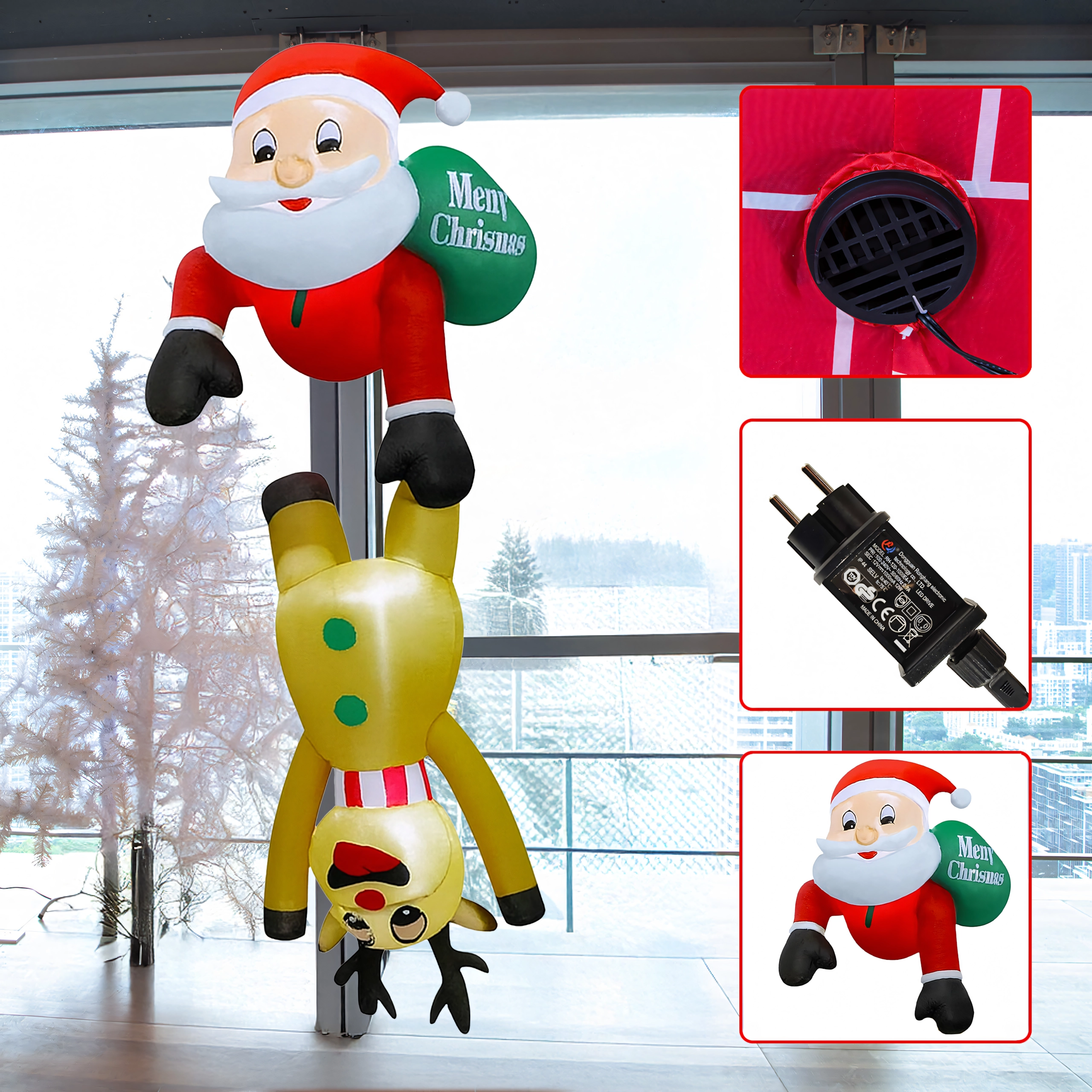 Wesoła nadmuchiwana dekoracja święty Mikołaj z reniferem o wysokości 2,1 m zamieni dom i ogród w magiczną zimową scenerię. Dzięki zintegrowanemu podświetleniu LED doskonale prezentuje się po zmroku, a swoim kreatywnym designem wywoła uśmiech u dzieci i dorosłych. Wykonana z trwałej tkaniny poliestrowej, odpowiednia do użytku wewnątrz i na zewnątrz.