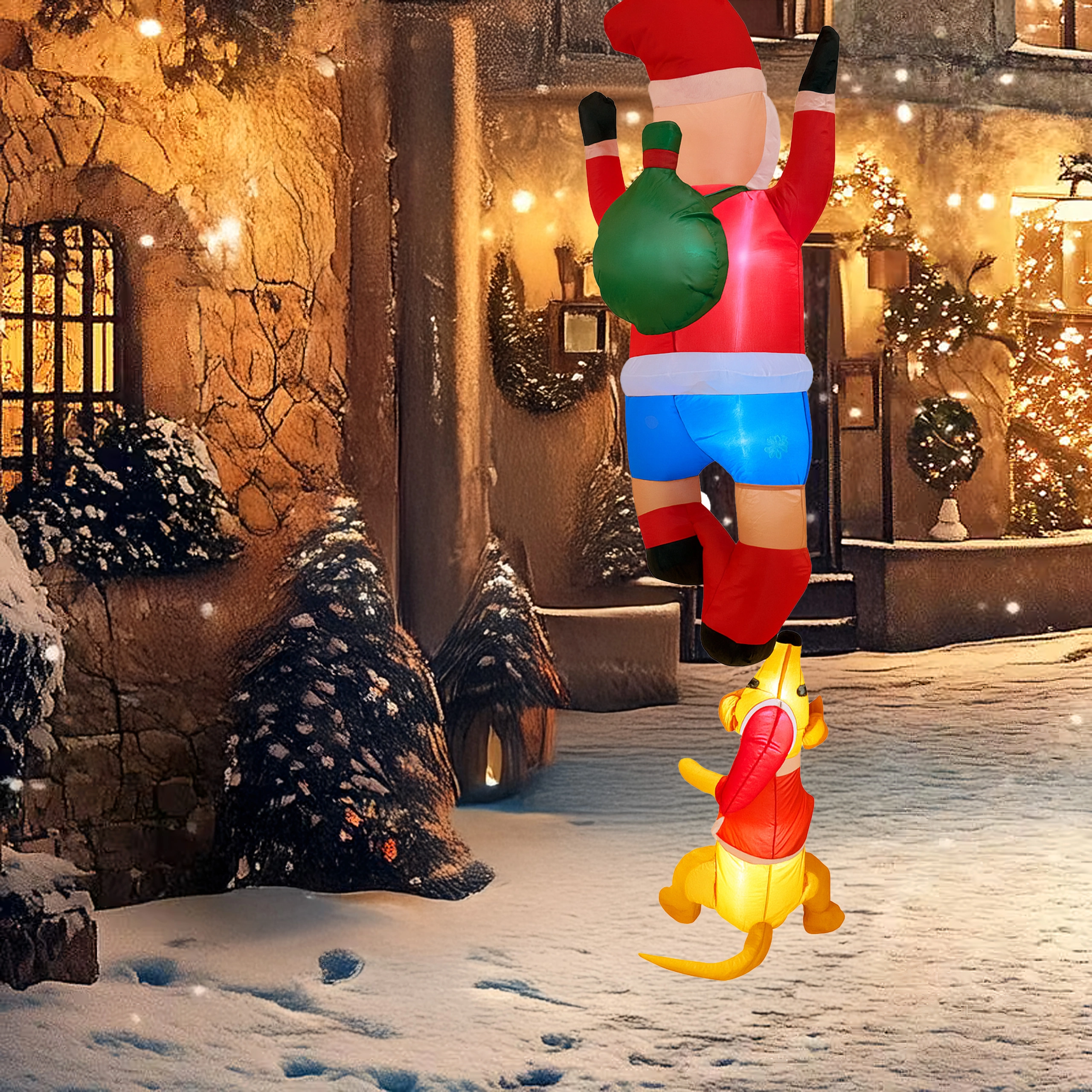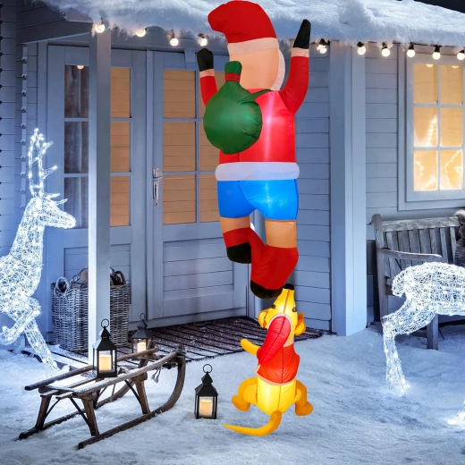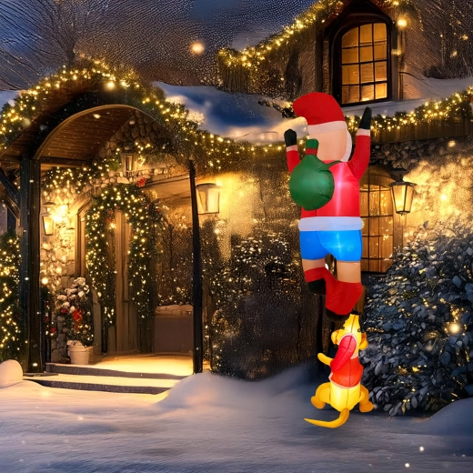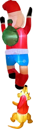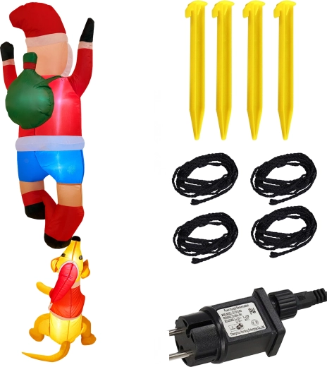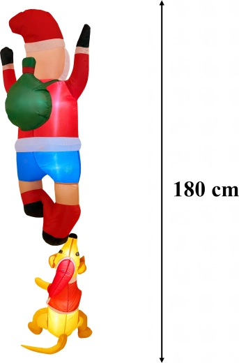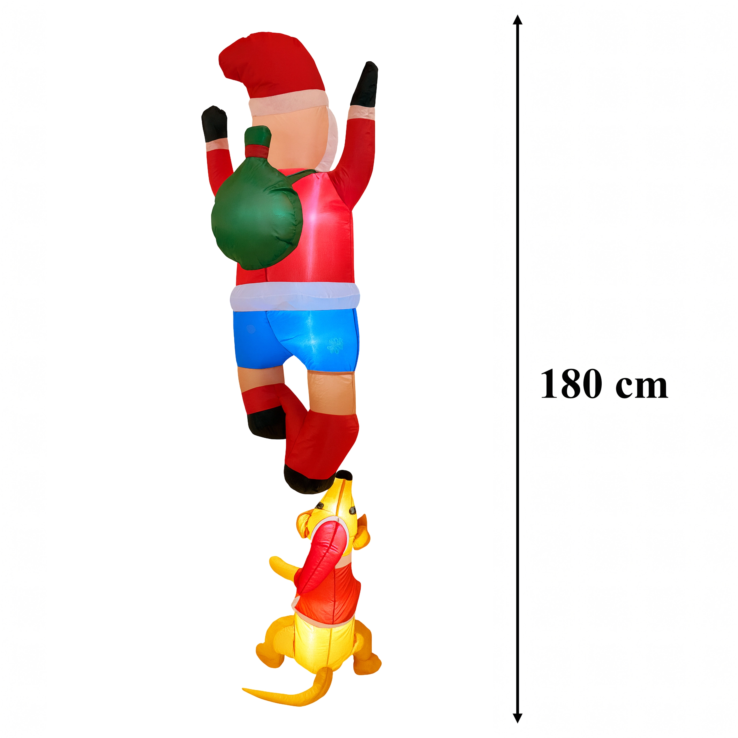 Nadmuchiwany Mikołaj z reniferem 1,8 m to oryginalna i zabawna świąteczna dekoracja, która stworzy magiczny nastrój w domu i w ogrodzie. Dzięki zintegrowanemu podświetleniu LED i pomysłowemu wzornictwu przyciąga uwagę i wywołuje uśmiech u dzieci i dorosłych. Wykonana z trwałej tkaniny poliestrowej odpowiedniej do użytku wewnątrz i na zewnątrz.