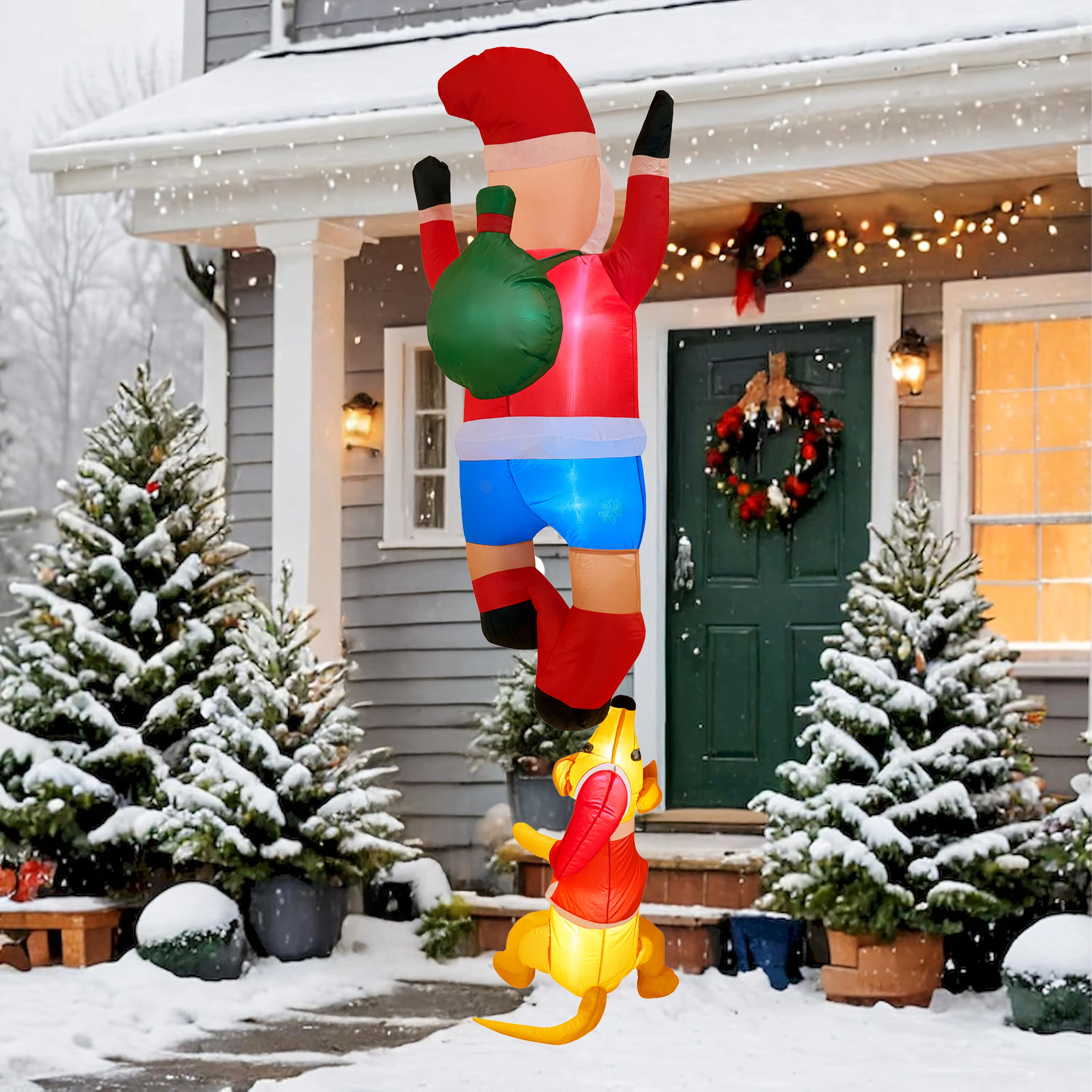 - Pomysłowy design – Mikołaj „wiszący” z reniferem przyciągnie uwagę każdego przechodnia.