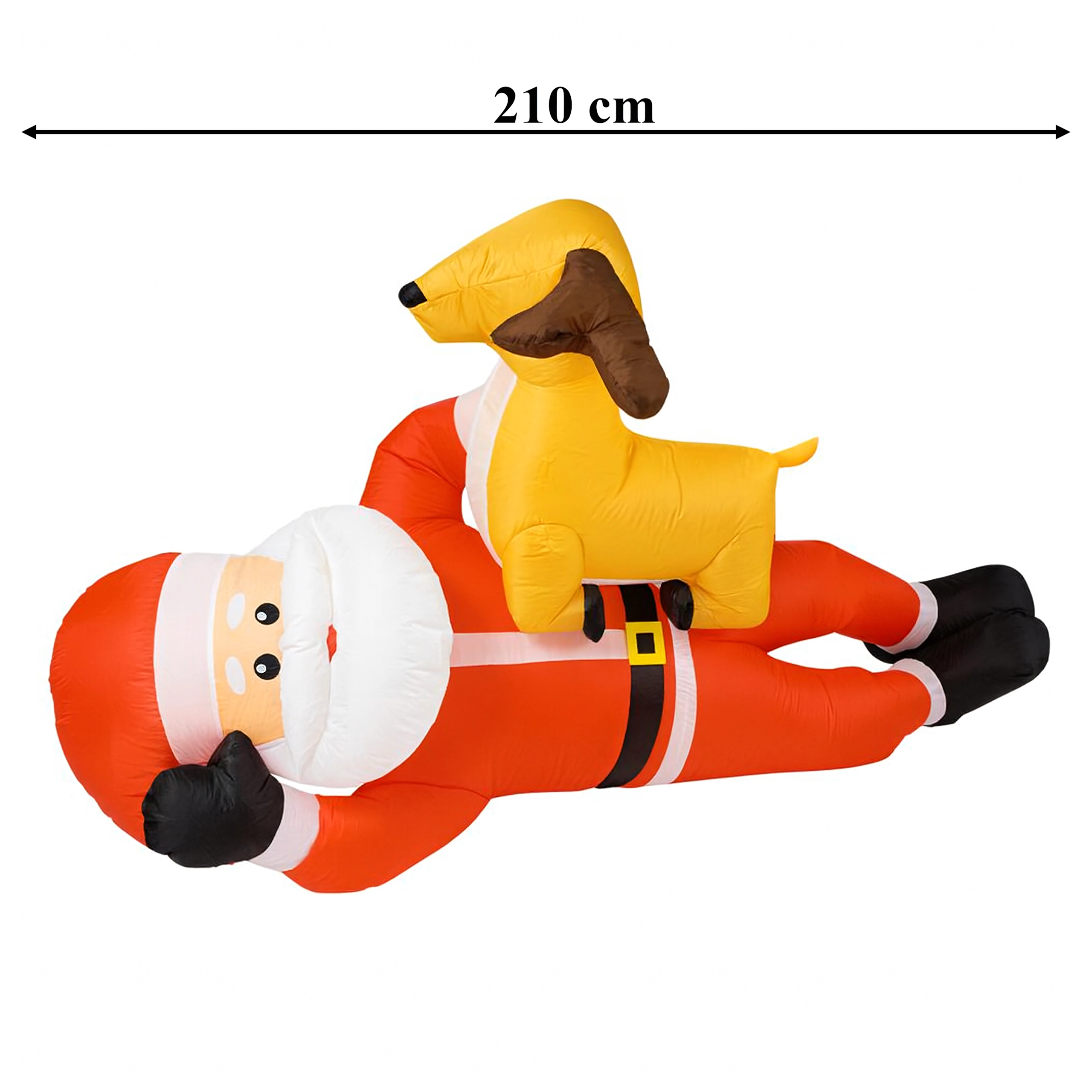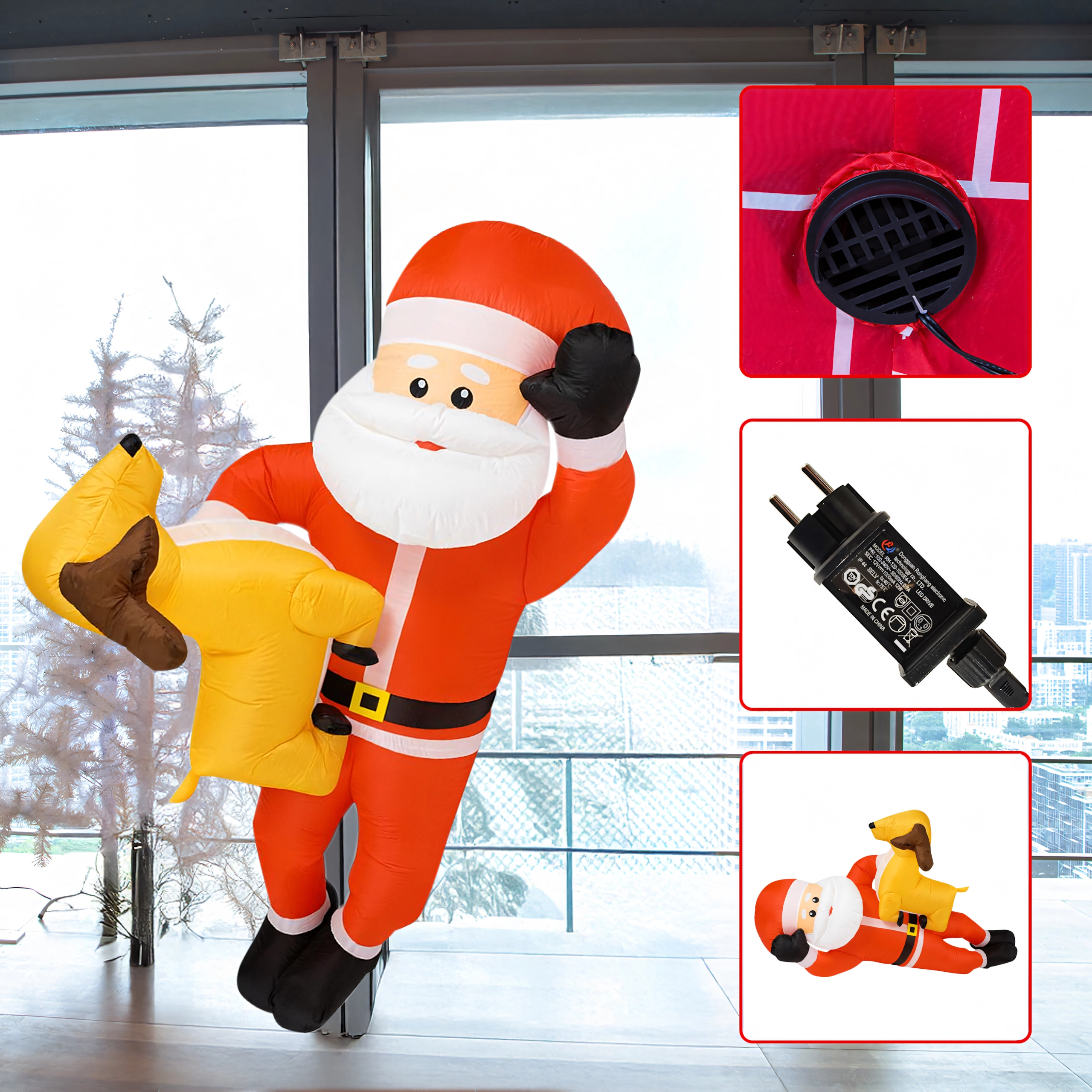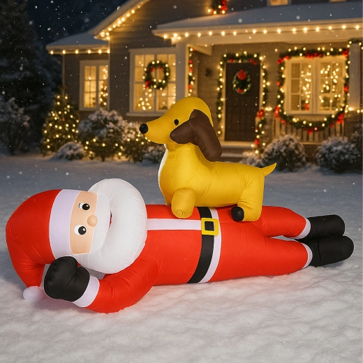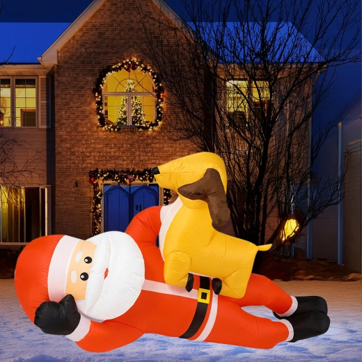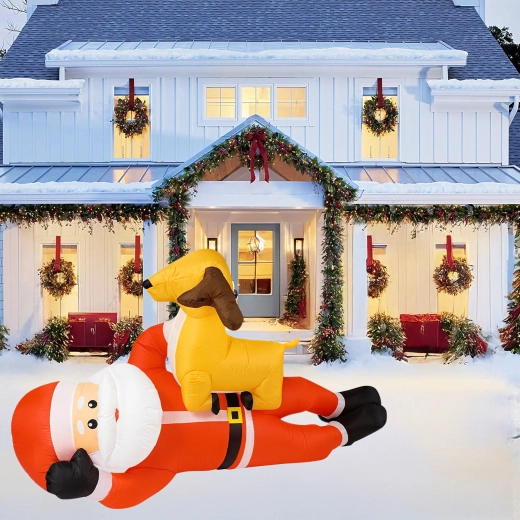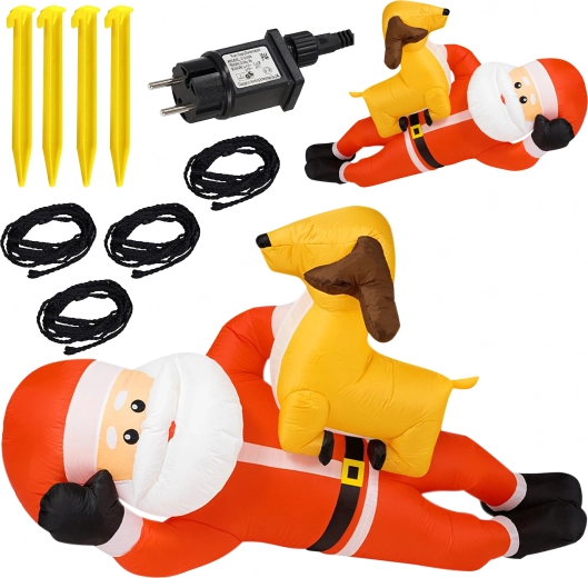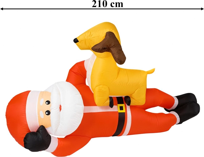 Dmuchana świąteczna dekoracja w formie MIKOŁAJA z reniferem o wysokości 2,1 m natychmiast doda Twojemu domowi świątecznego uroku. Wbudowane diody LED zapewniają efektowne oświetlenie po zmroku, a automatyczna dmuchawa gwarantuje szybkie i wygodne napełnienie bez wysiłku.