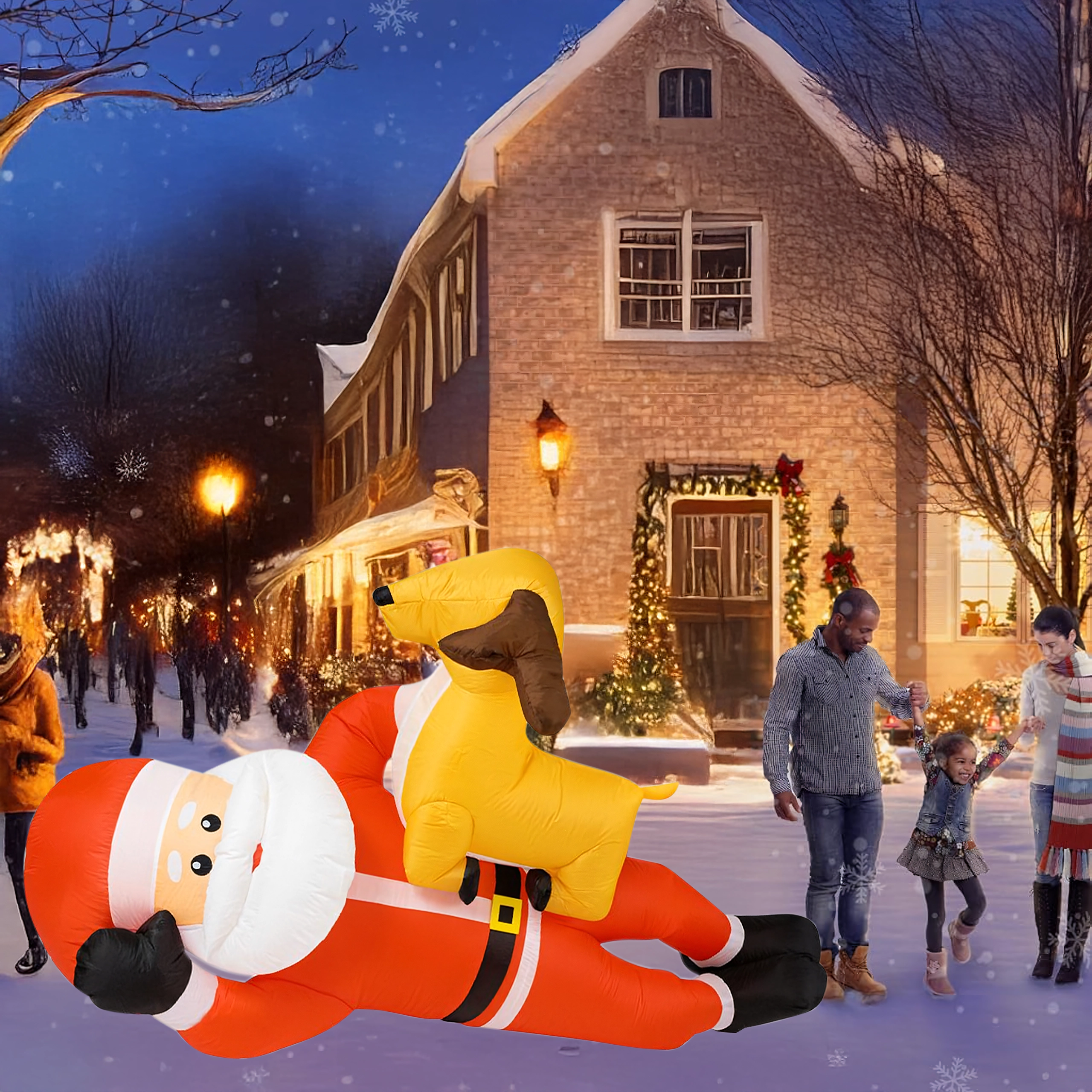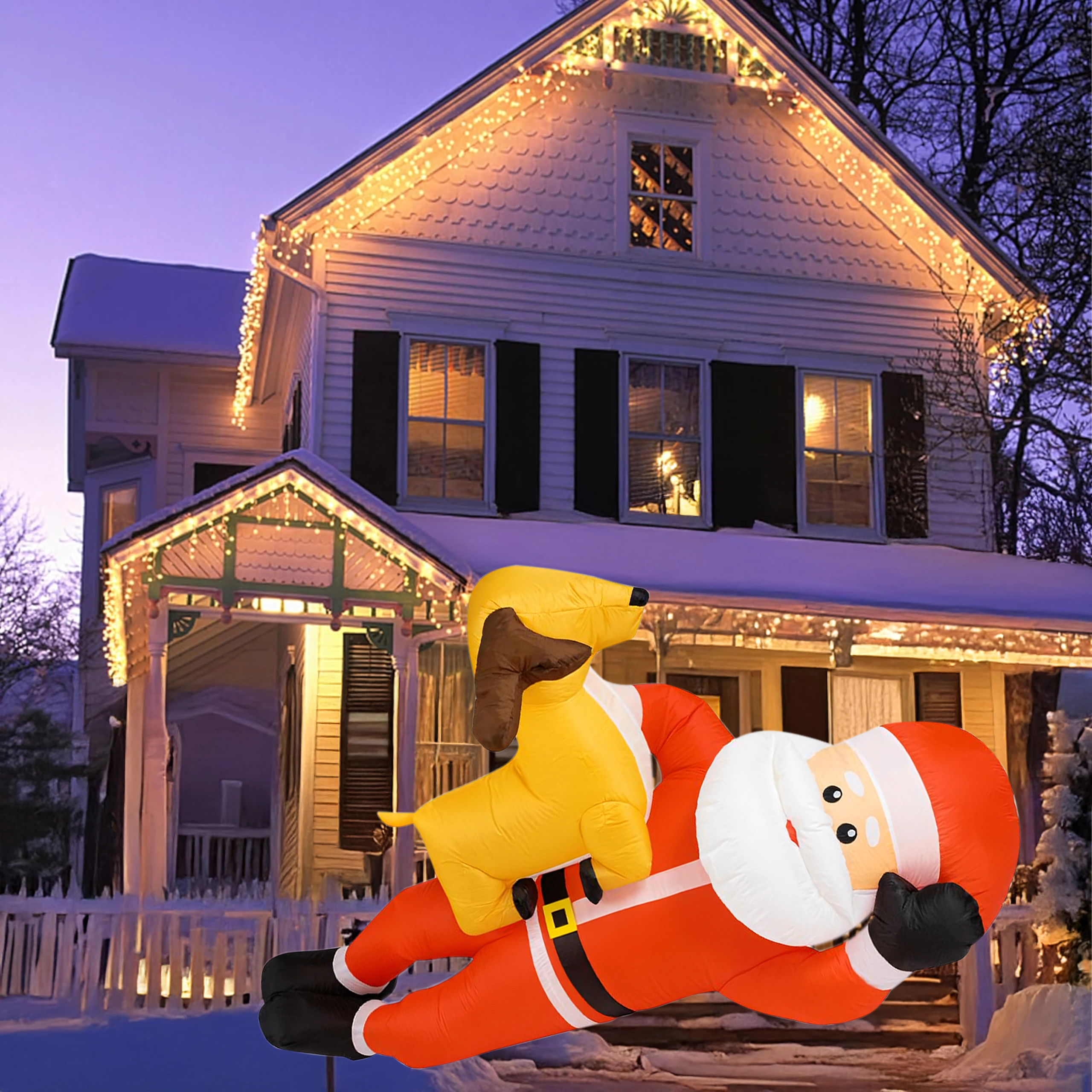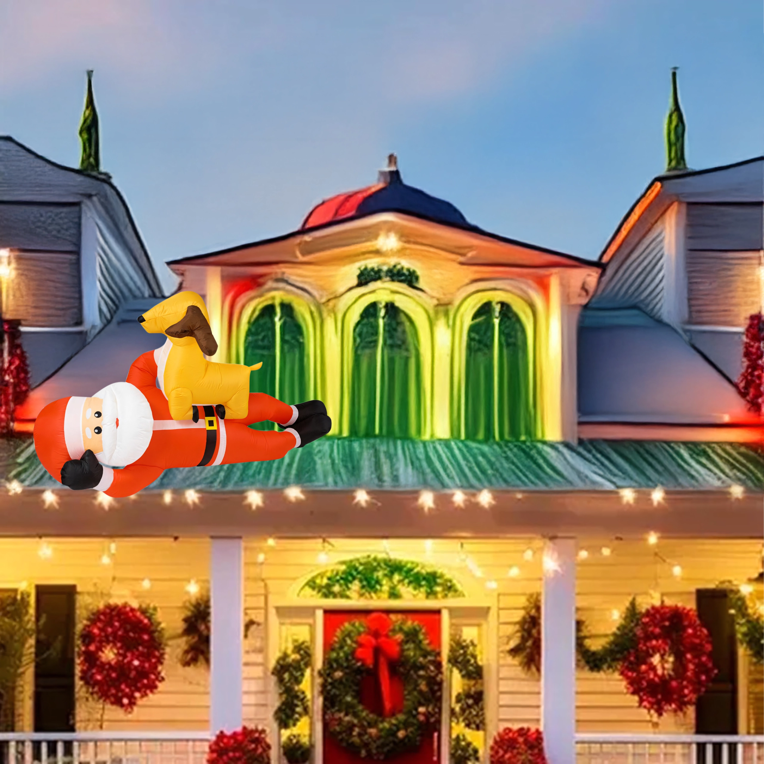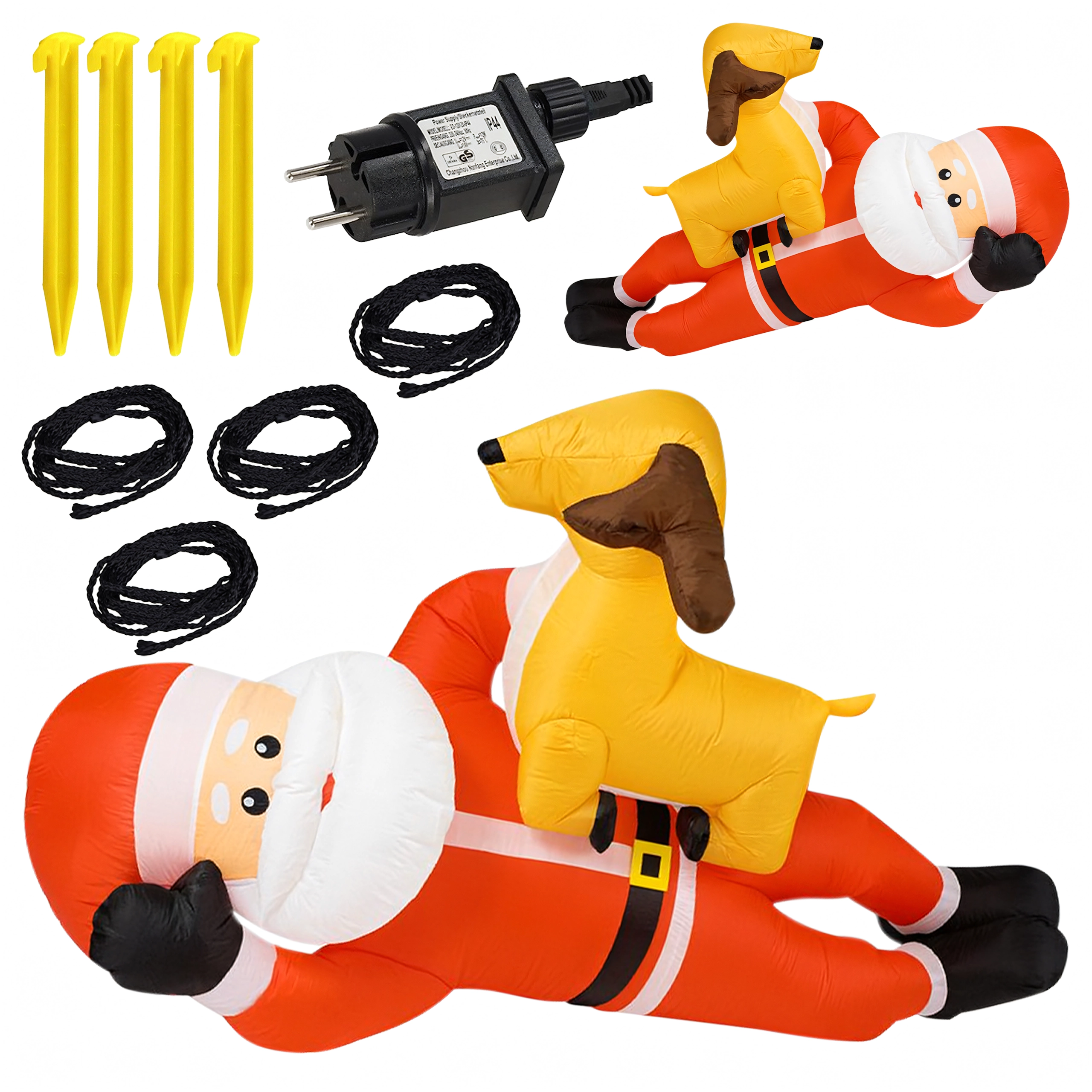 Dmuchana świąteczna dekoracja w formie MIKOŁAJA z reniferem o wysokości 2,1 m natychmiast doda Twojemu domowi świątecznego uroku. Wbudowane diody LED zapewniają efektowne oświetlenie po zmroku, a automatyczna dmuchawa gwarantuje szybkie i wygodne napełnienie bez wysiłku.