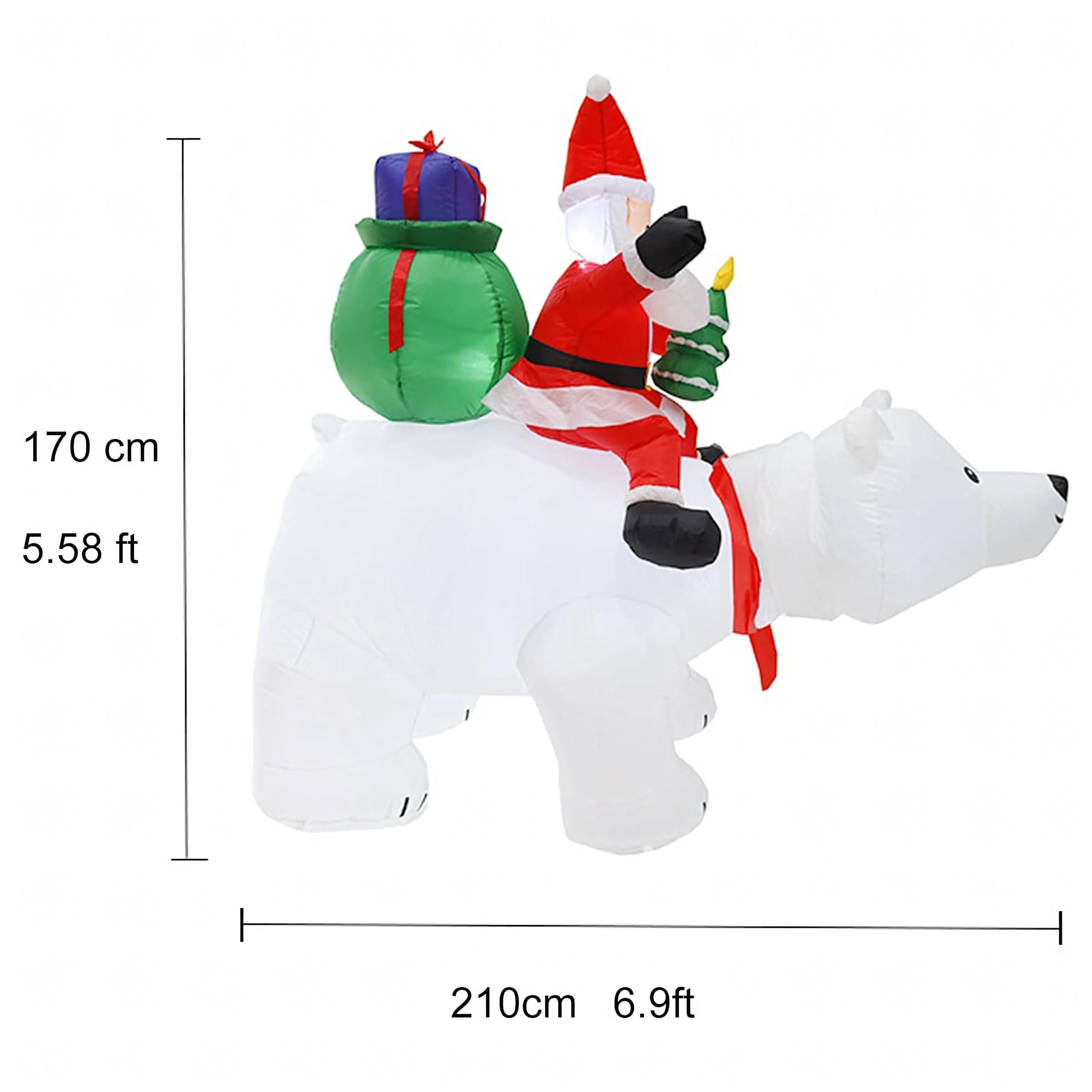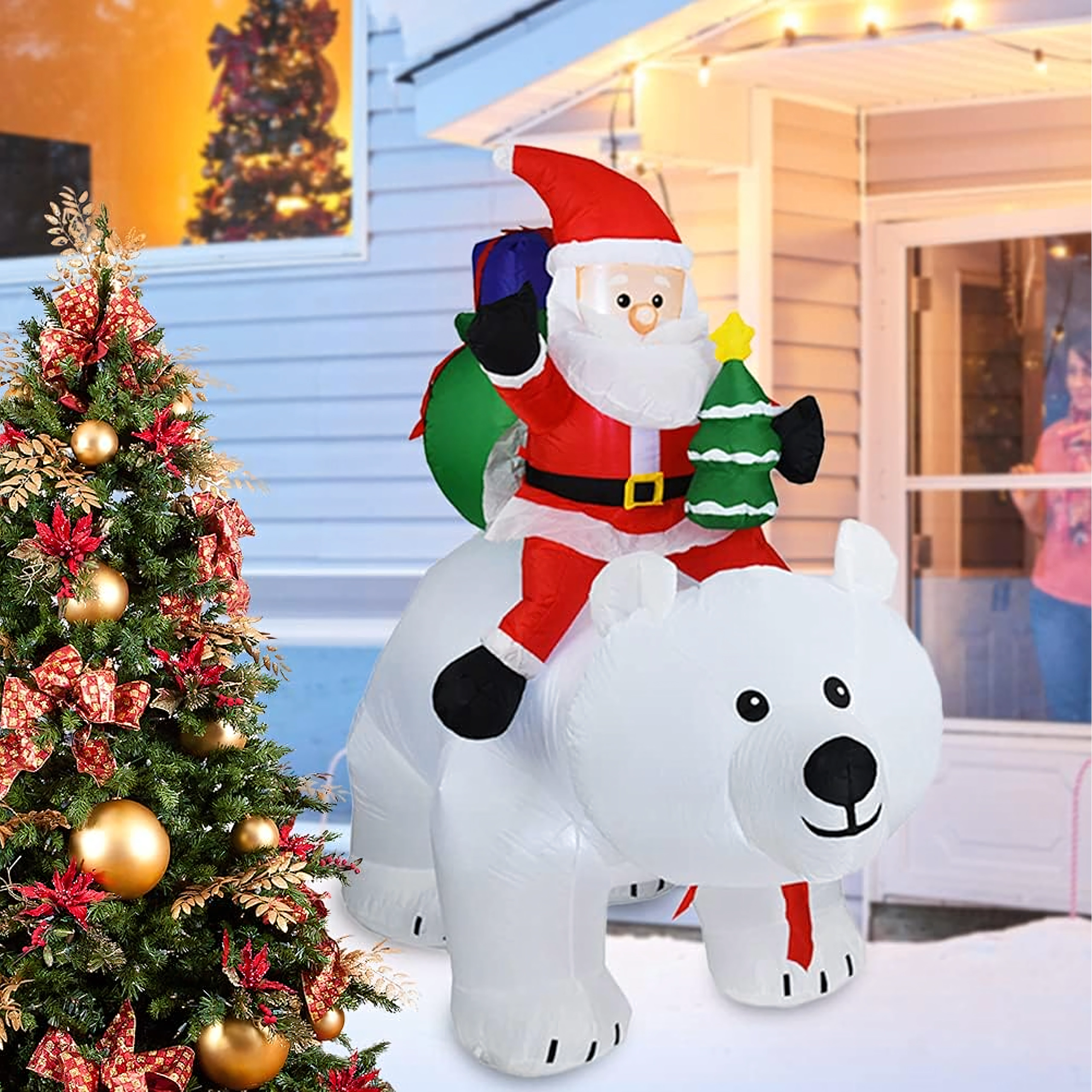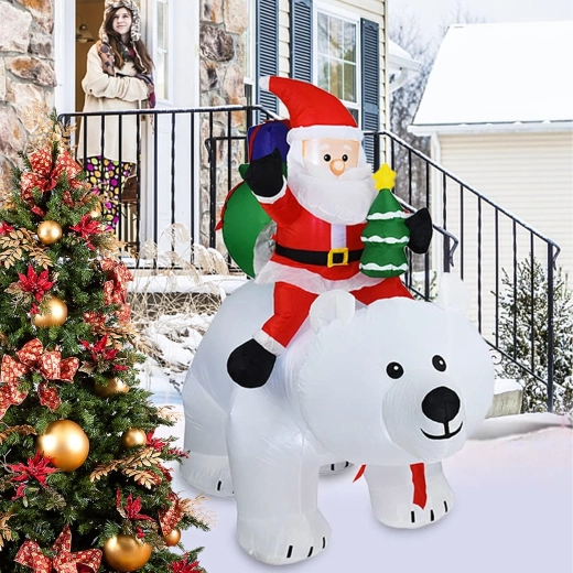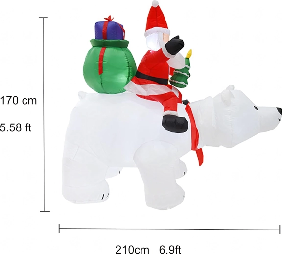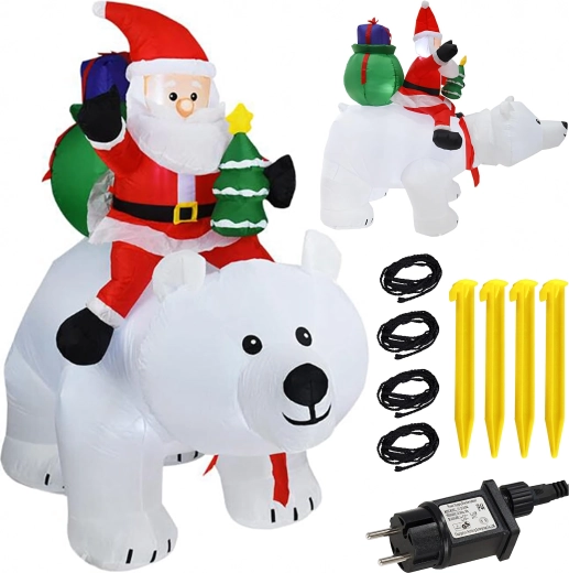 Stwórz magiczną, świąteczną scenerię dzięki efektownej nadmuchiwanej dekoracji o wysokości 210 cm. Dzięki oświetleniu LED doskonale prezentuje się o zmierzchu i w nocy, a cichy wentylator zapewnia szybkie i wygodne uruchomienie. Wytrzymały materiał z wodoodporną powłoką idealnie sprawdzi się w ogrodzie, na tarasie oraz we wnętrzu.