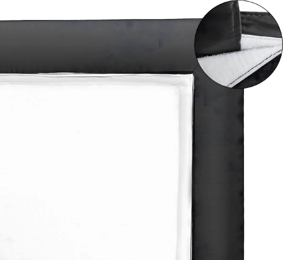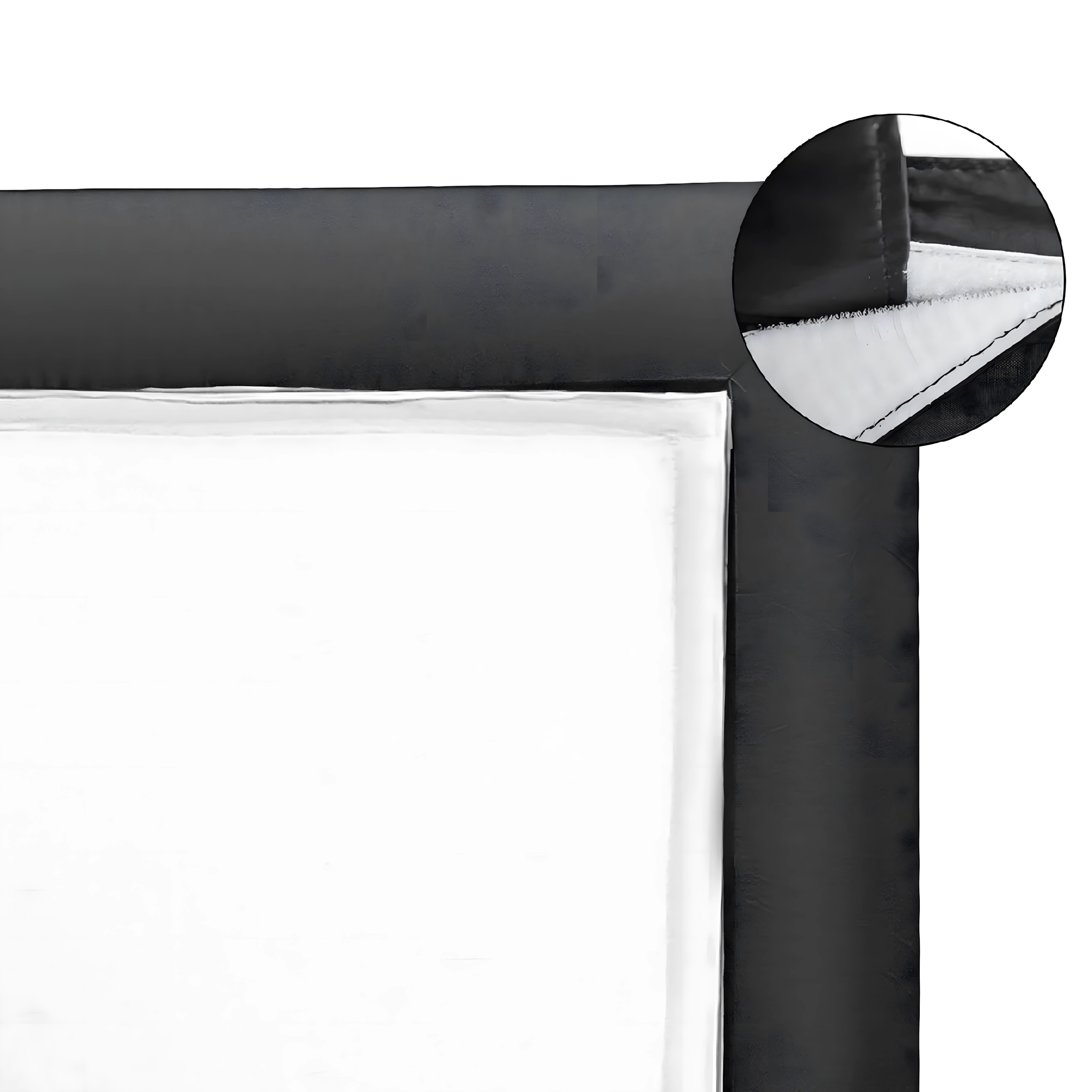 Ekran wykonany jest z mocnego i odpornego materiału, który lepiej znosi warunki zewnętrzne. Łatwo się składa i przenosi, dlatego jest idealny na wydarzenia mobilne oraz sezonowe użytkowanie.
