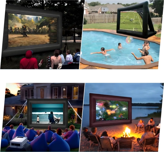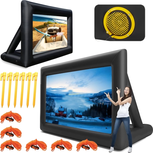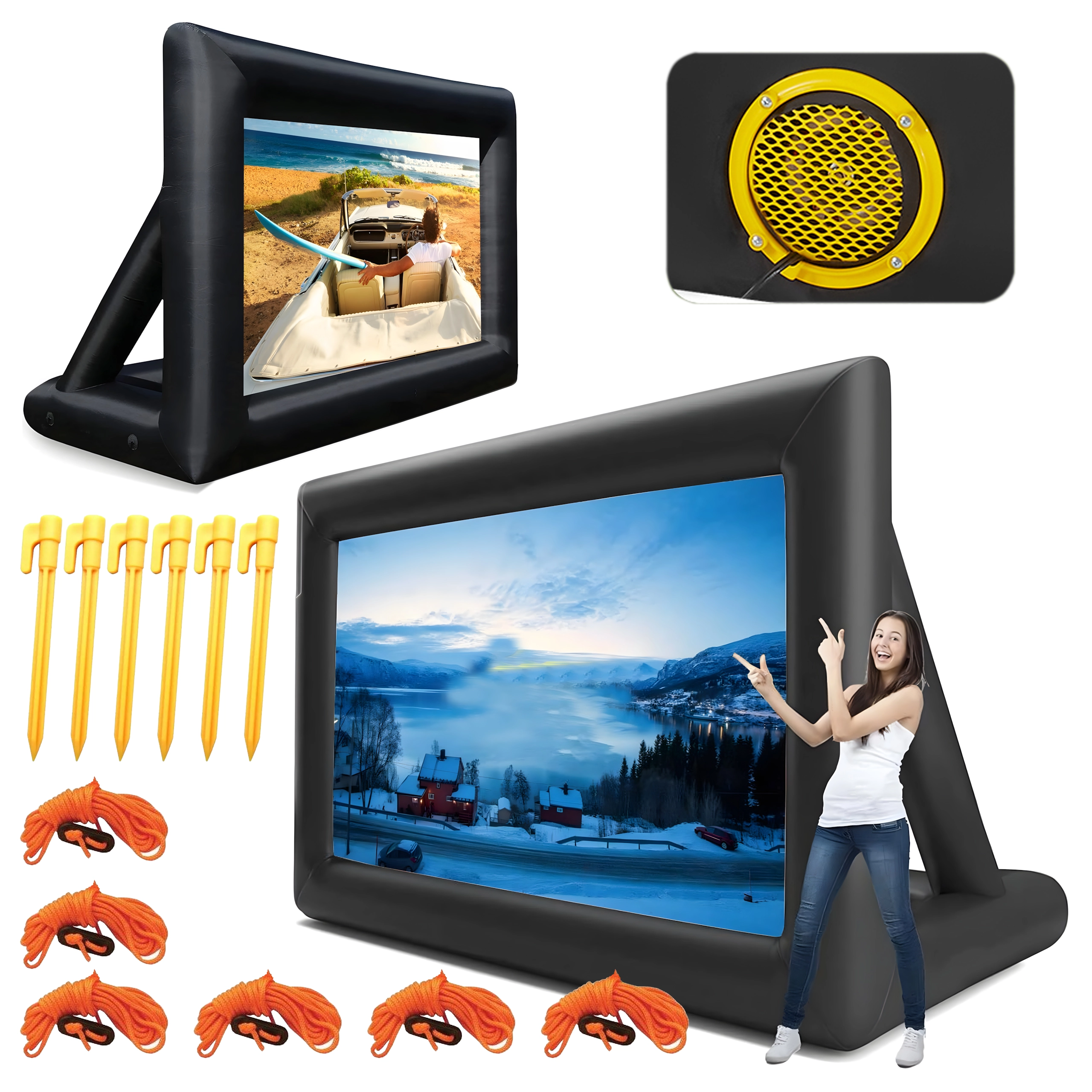 Ciesz się filmowymi wieczorami pod gołym niebem z tym dużym dmuchanym ekranem projekcyjnym. Idealny do kina plenerowego, przyjęć, prezentacji i wydarzeń publicznych. Oferuje projekcję przednią i tylną, szybki i łatwy montaż i jest wykonany z trwałych materiałów zapewniających długą żywotność i wygodny transport.