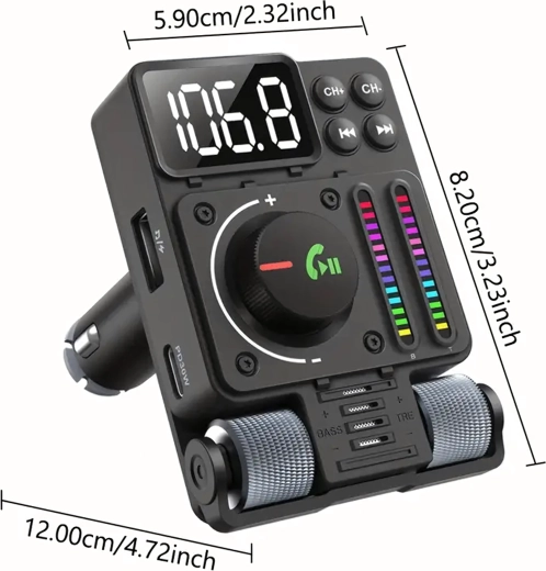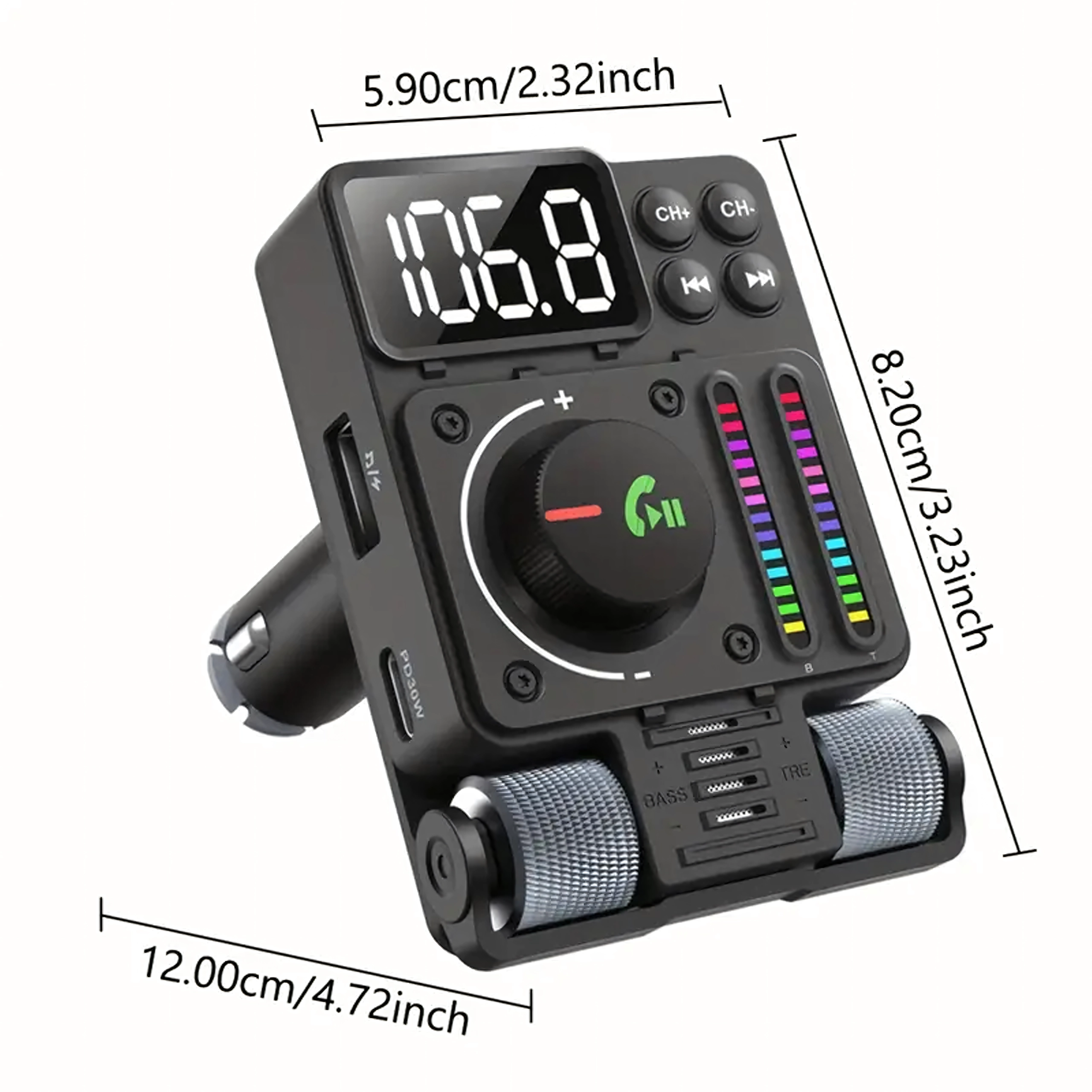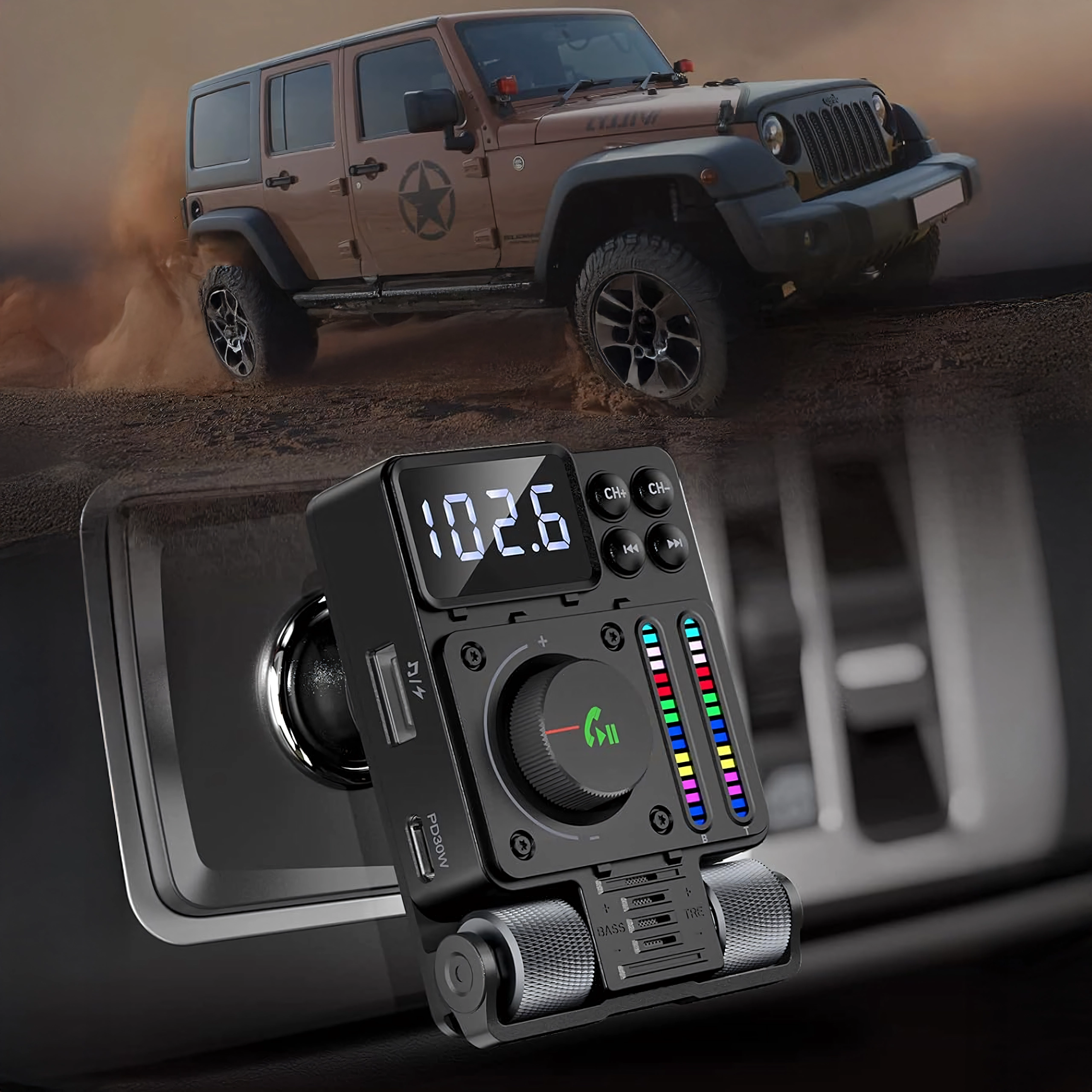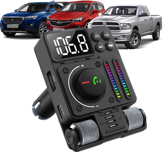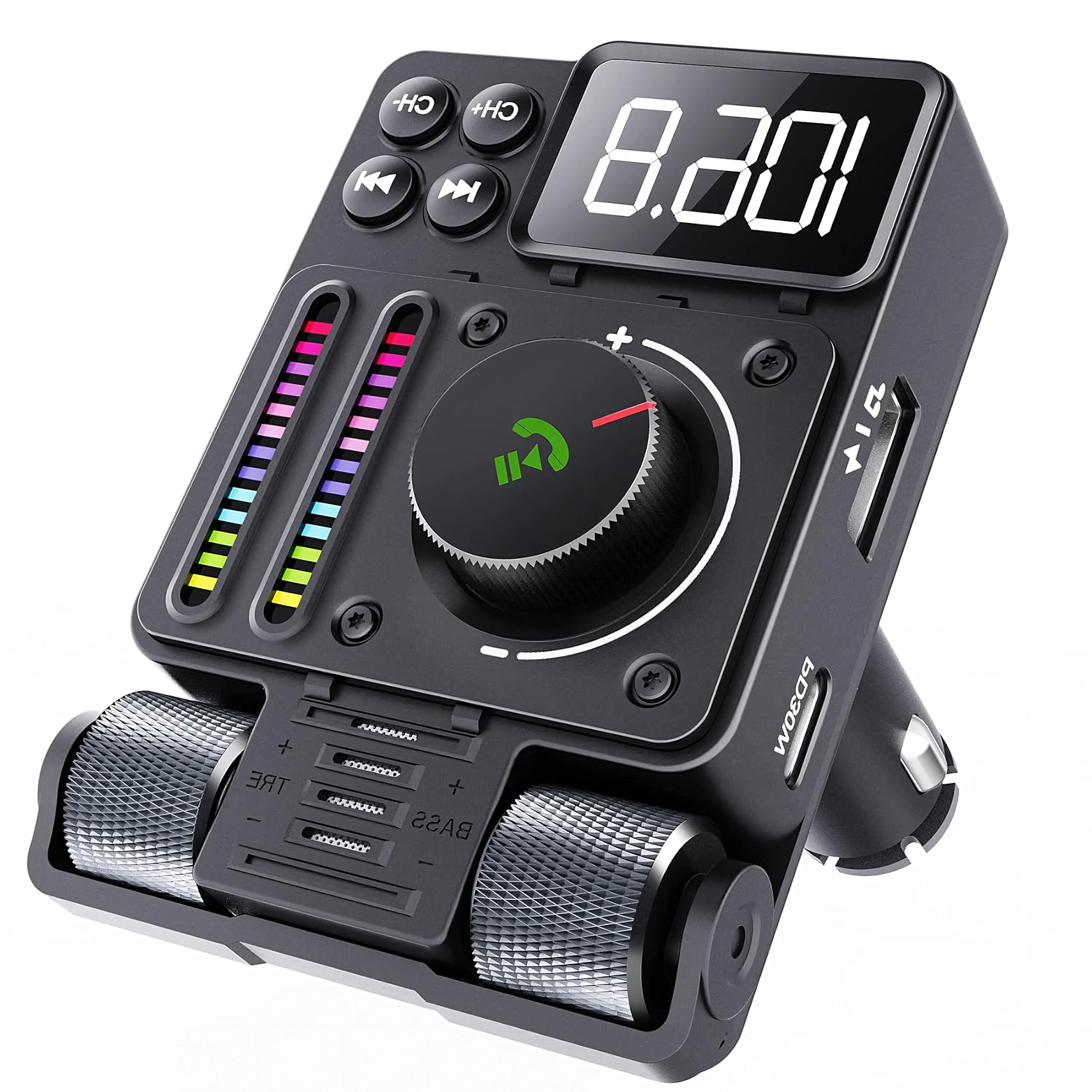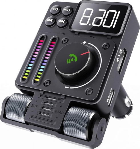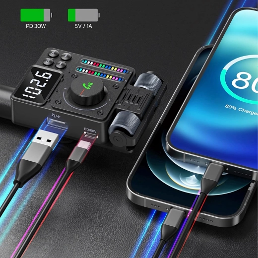 Wielofunkcyjny transmiter FM Bluetooth 5.3 do auta z szybkim ładowaniem PD 30 W oferuje streaming muzyki, czyste rozmowy w trybie głośnomówiącym oraz kolorowe podświetlenie LED. Idealny do wygodnego i nowoczesnego korzystania z wyposażenia w Twoim samochodzie.