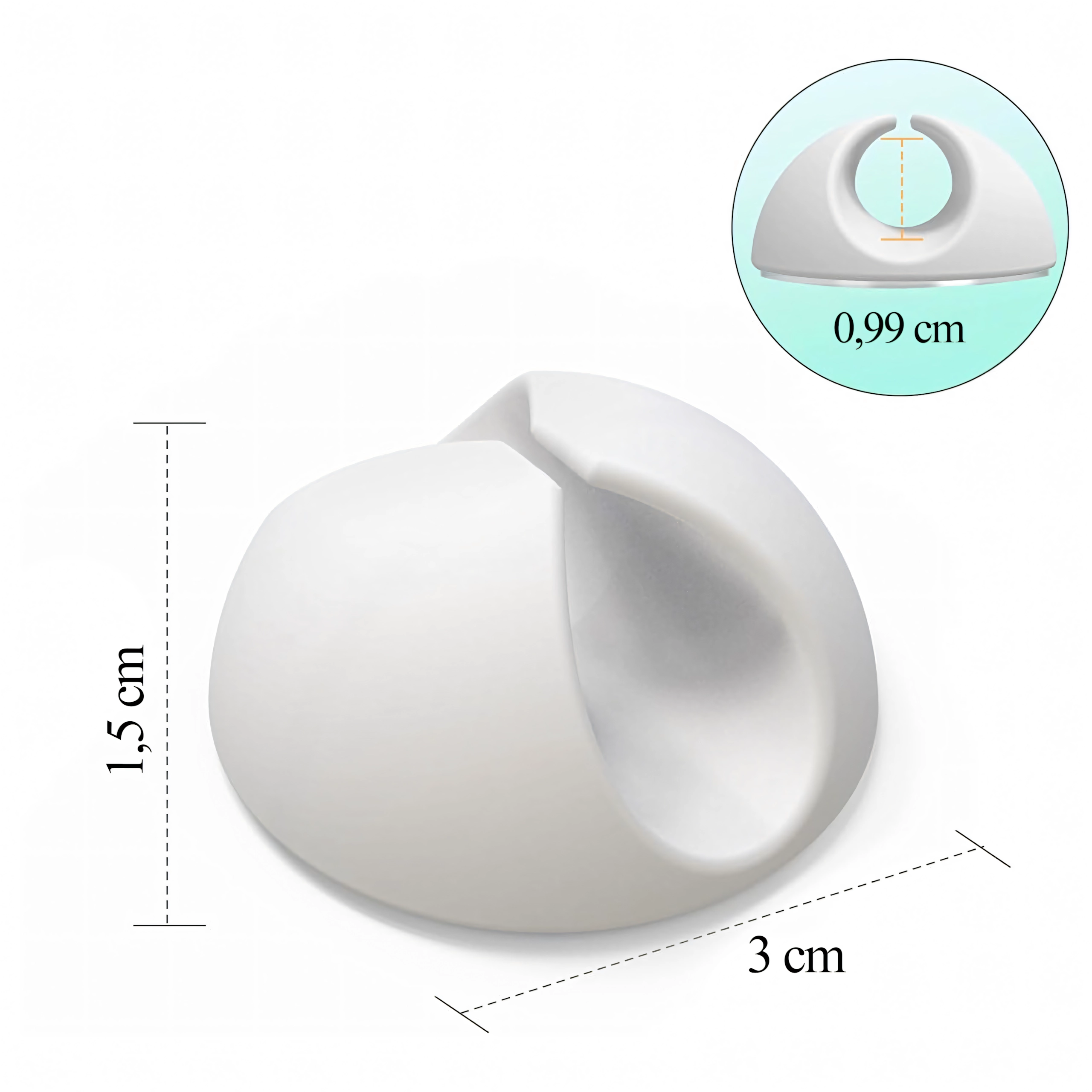 Praktyczne i dyskretne klipsy na kable pomogą zorganizować biurko oraz wnętrze samochodu. Dzięki mocnej warstwie samoprzylepnej trzymają się większości gładkich powierzchni, a elastyczna konstrukcja mieści różne średnice kabli.