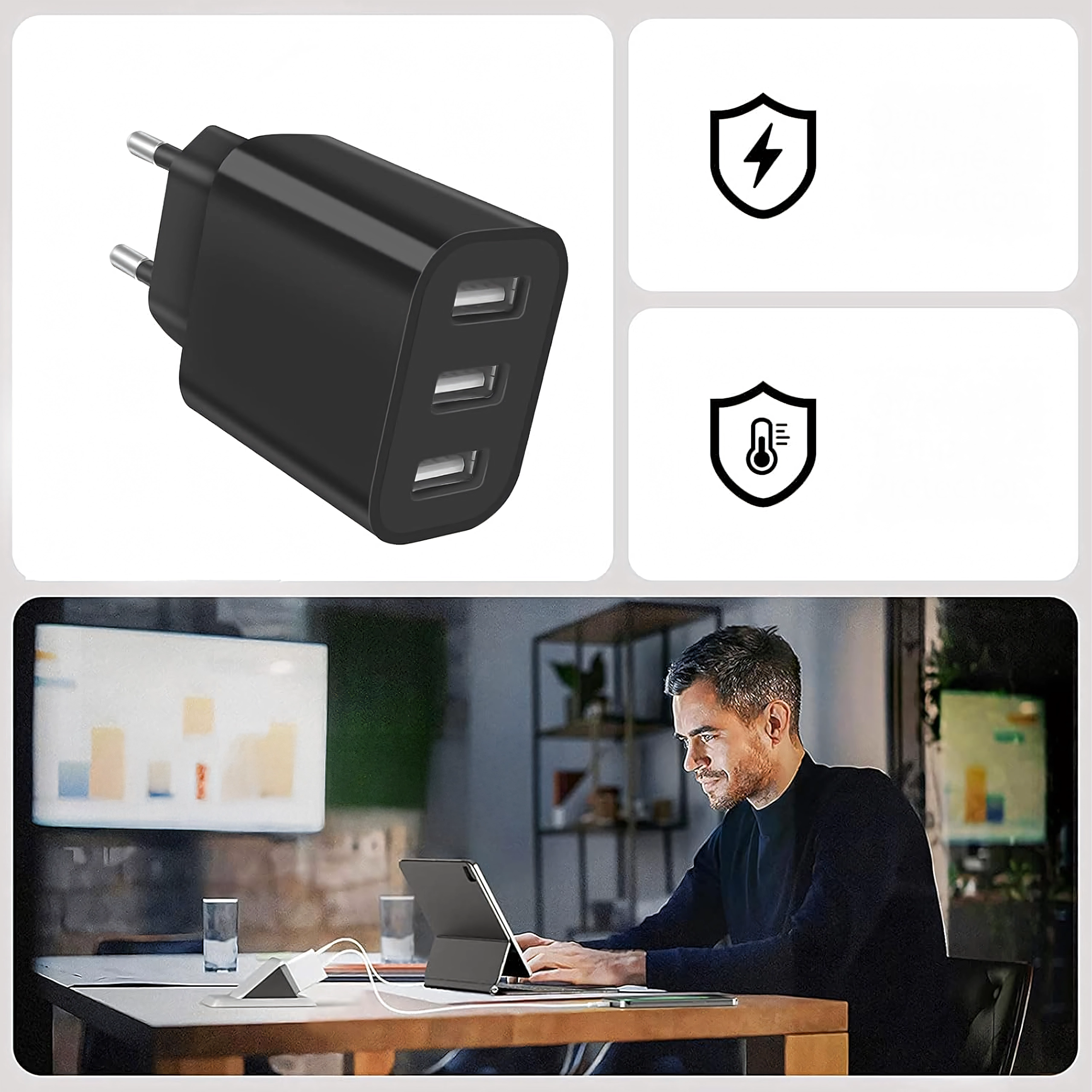 Ta uniwersalna ładowarka w formie kompaktowej kostki wyróżnia się prostym designem, niezawodną wydajnością i bezpiecznym działaniem. Wygodnie ładuj telefony, słuchawki, powerbanki oraz inną drobną elektronikę z jednego źródła.