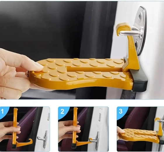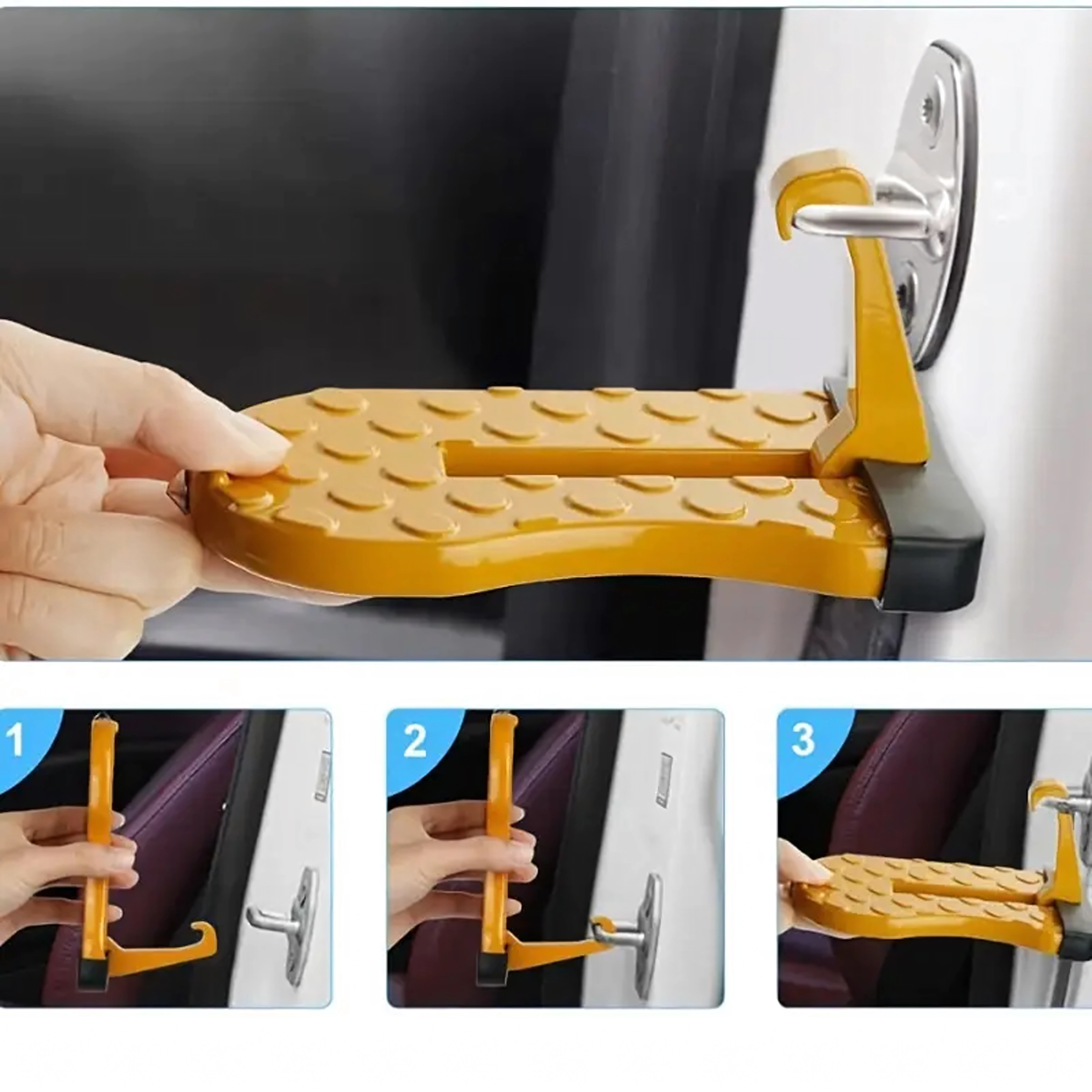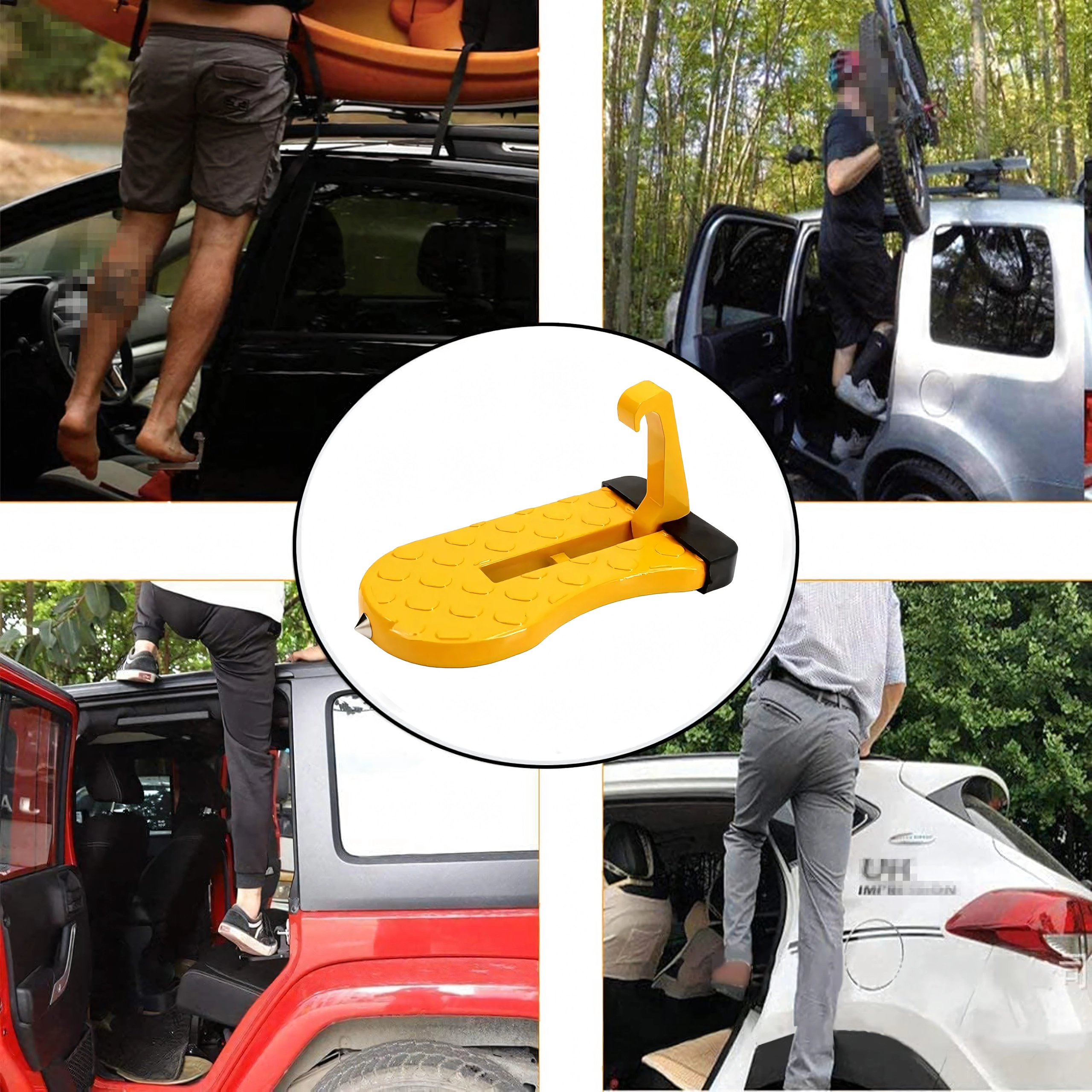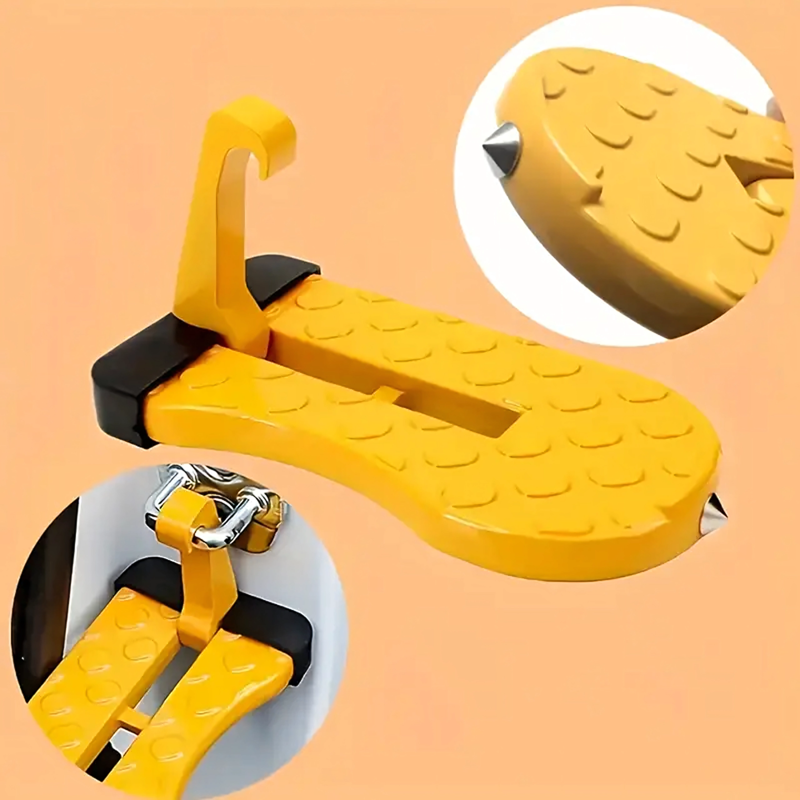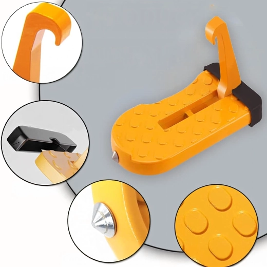 Praktyczny i wytrzymały stopień na drzwi auta, który ułatwia dostęp do dachu pojazdu – idealny do bagażników dachowych, uchwytów i czyszczenia auta. Jest lekki, składany, aluminiowy i antypoślizgowy, a dodatkowo może służyć jako awaryjny młotek do wybijania szyb.
