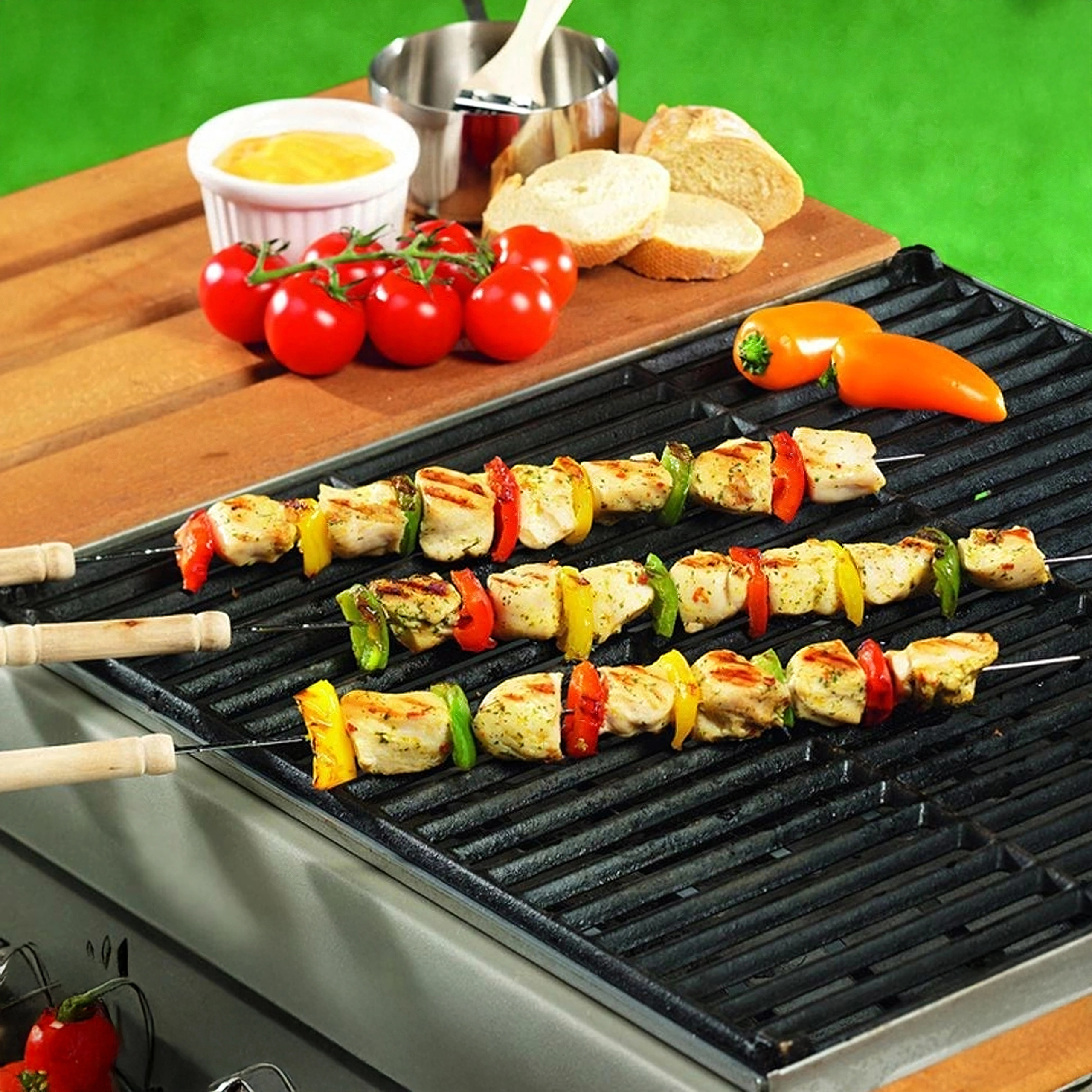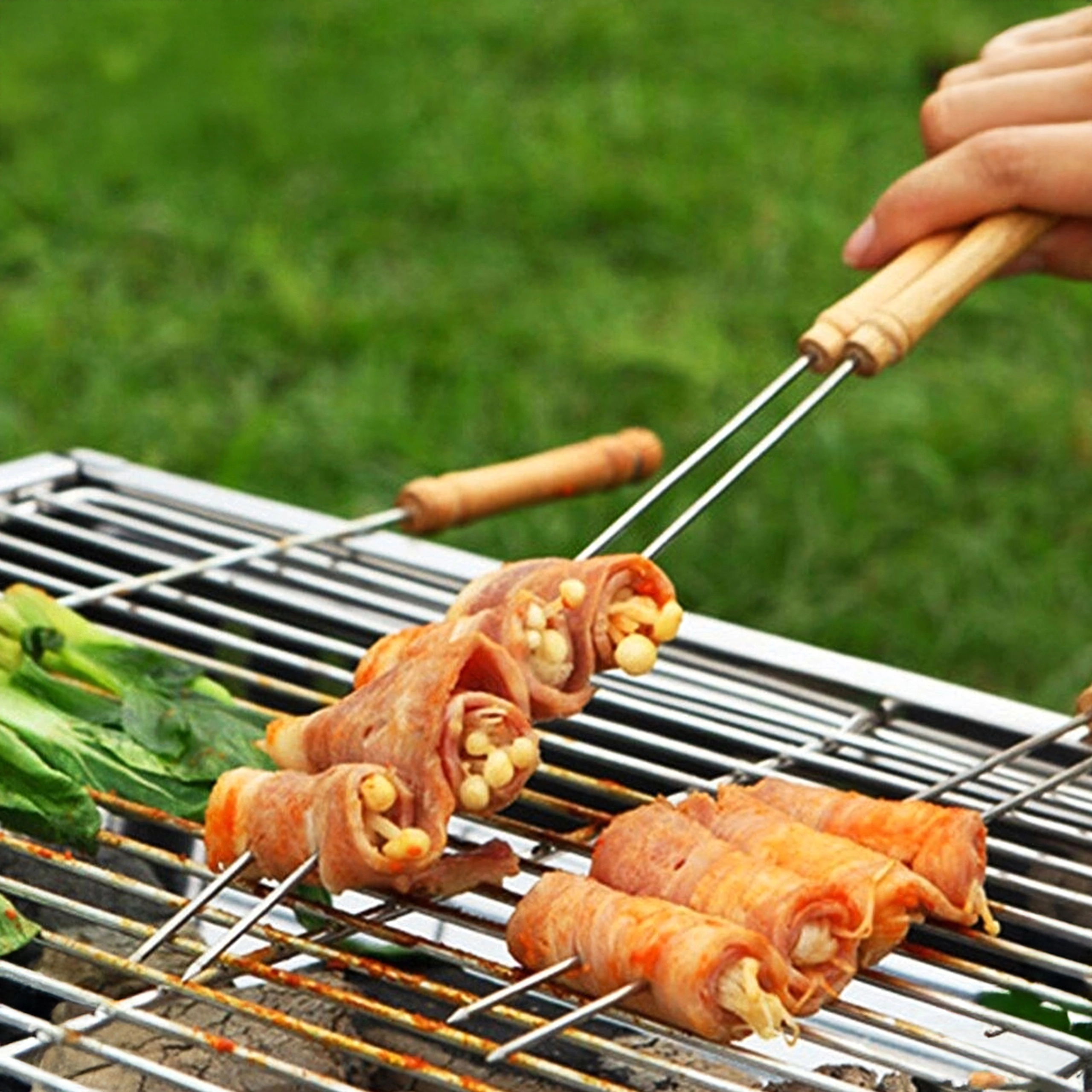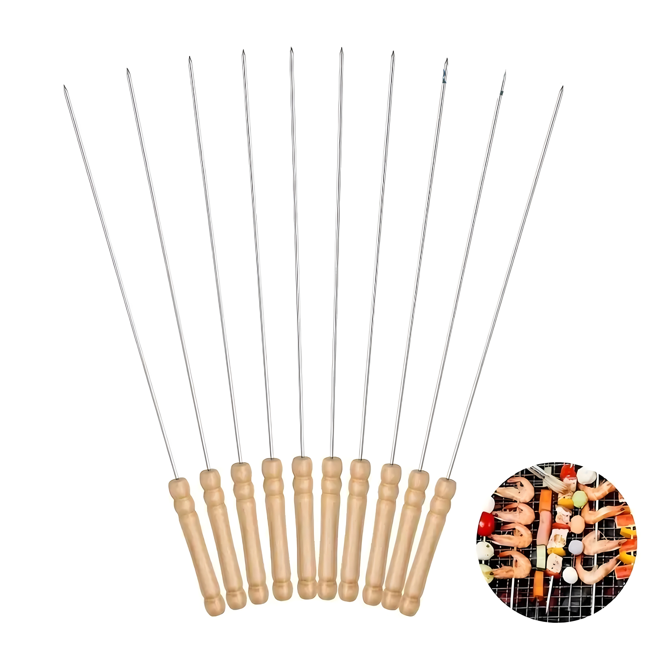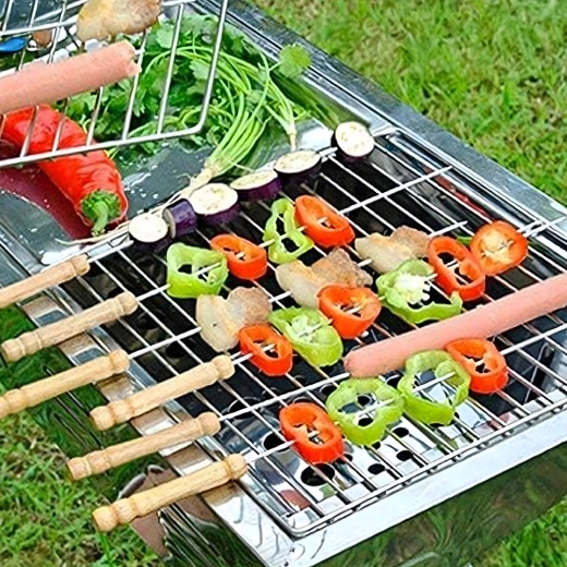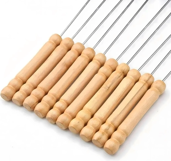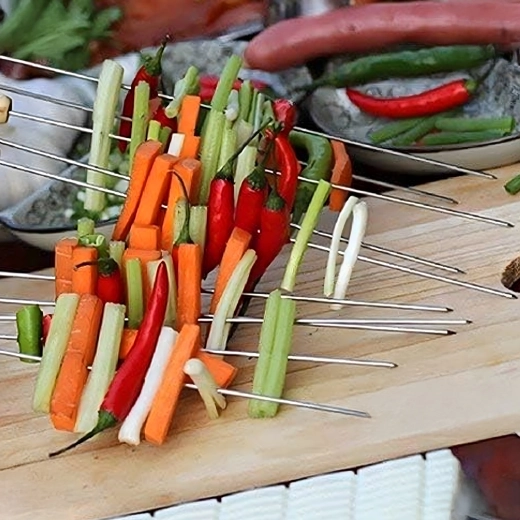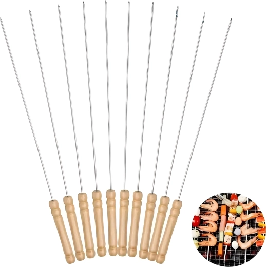 Ciesz się bezproblemowym grillowaniem z zestawem metalowych szpikulców z wytrzymałej stali nierdzewnej. Dzięki solidnemu wykonaniu są stabilne, mocne, a jedzenie na nich trzyma się bez obracania. Są neutralne dla żywności i bezpieczne dla zdrowia, dlatego nadają się do mięsa, warzyw i owoców morza.