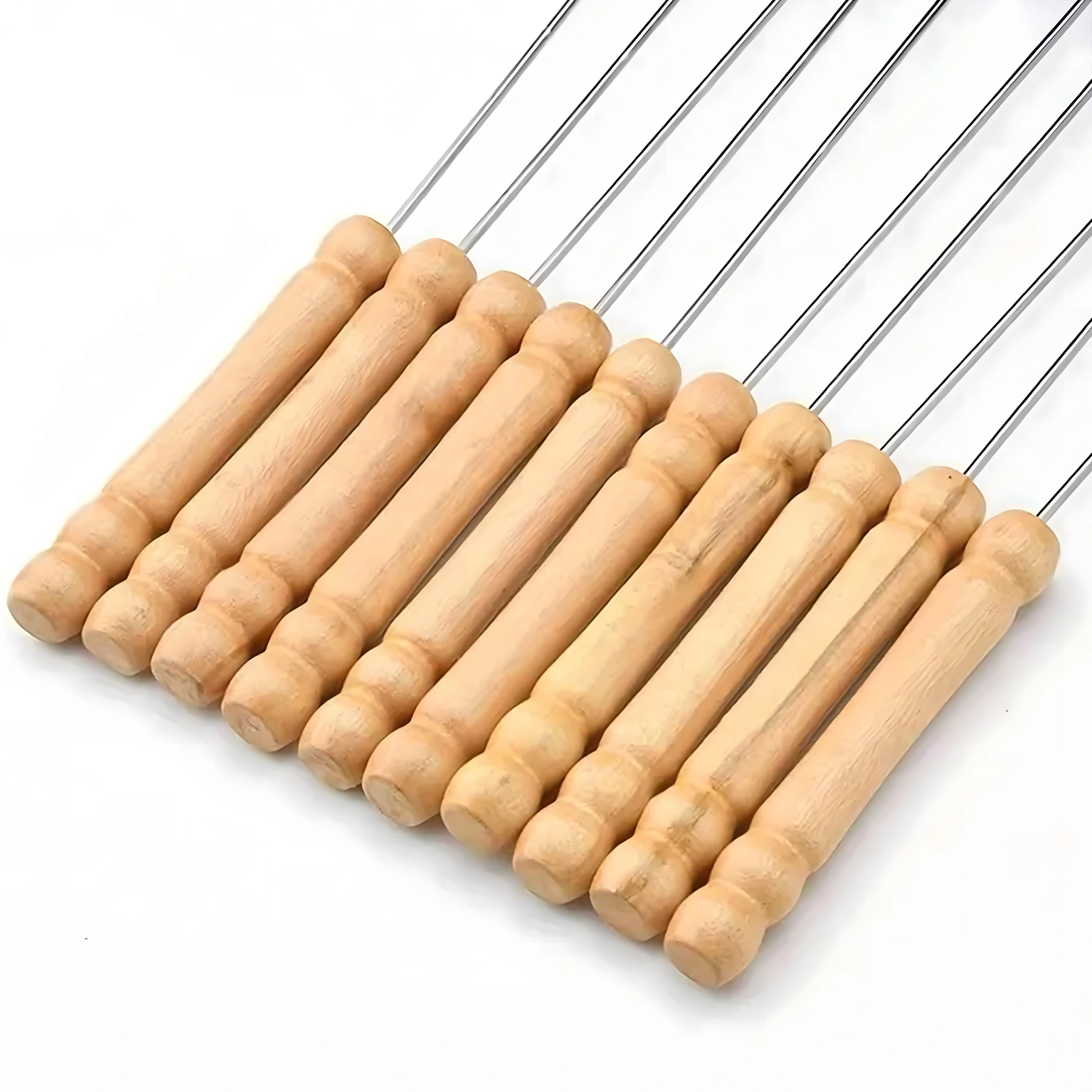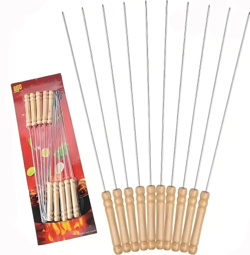 Zestaw zawiera 10 szt. o długości 30 cm, co jest idealnym rozmiarem do większości grilli. Po użyciu łatwo je umyjesz i ponownie wykorzystasz – oszczędzają czas i pieniądze, a także świetnie sprawdzą się na domowe przyjęcia w ogrodzie i wyjazdy.
