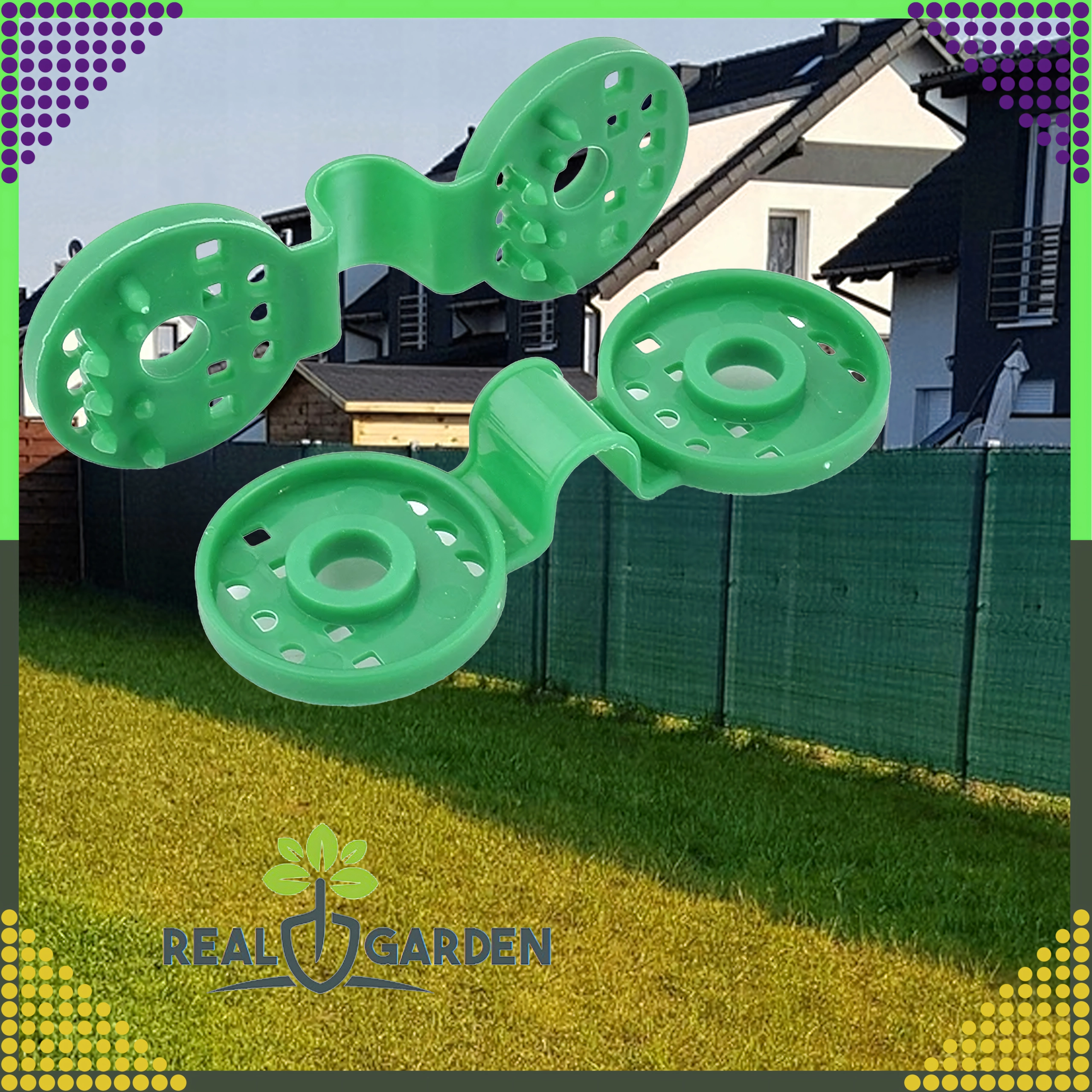 Praktyczne klipy do stabilnego mocowania siatki osłonowej do ogrodzeń panelowych lub klasycznej siatki plecionej. Wykonane z trwałego i lekkiego plastiku ze stabilizatorem UV, dzięki czemu świetnie opierają się warunkom pogodowym i słońcu. Łatwy montaż bez narzędzi, pewne zapięcie i możliwość wielokrotnego użytku. Opakowanie zawiera 20 szt. w kolorze zielonym.