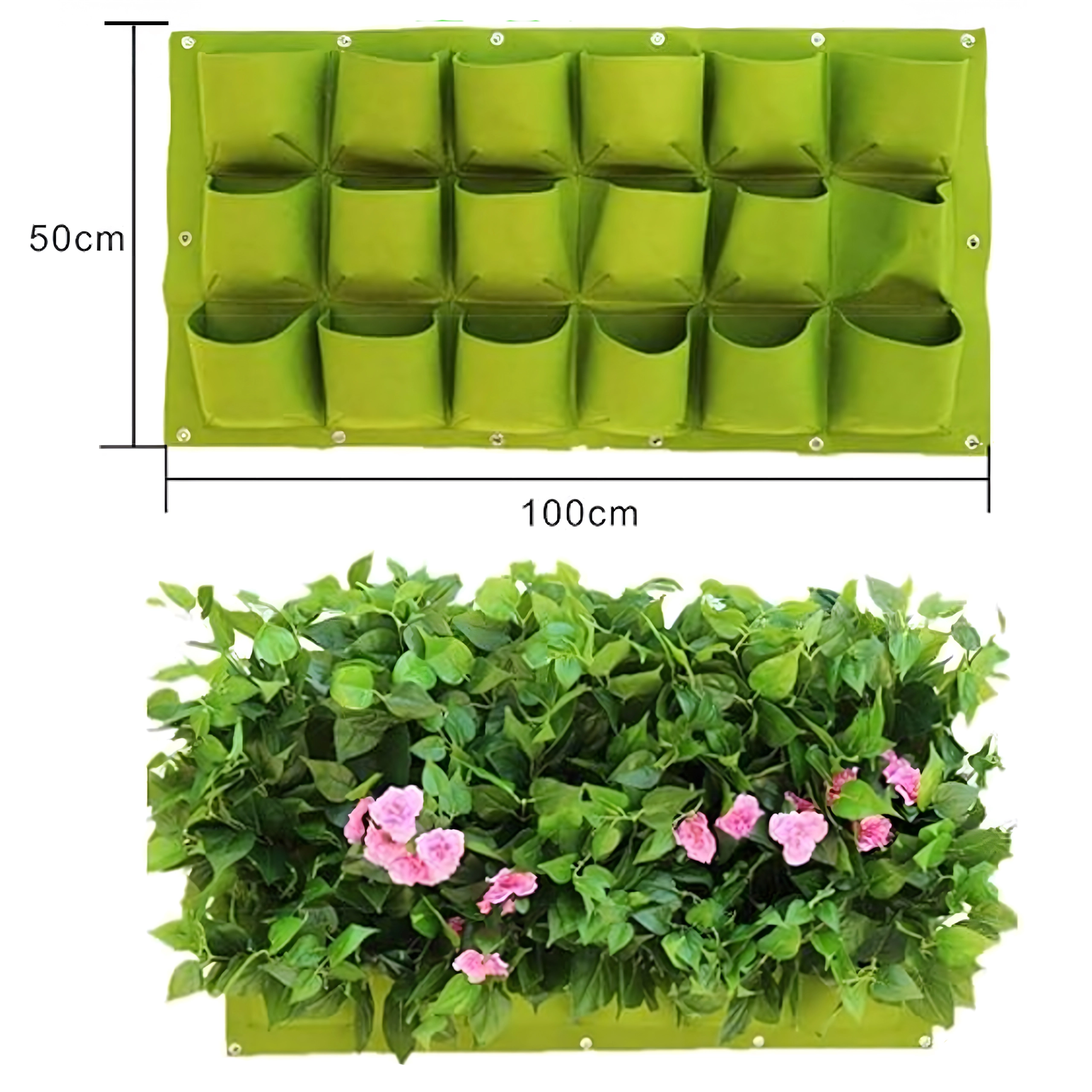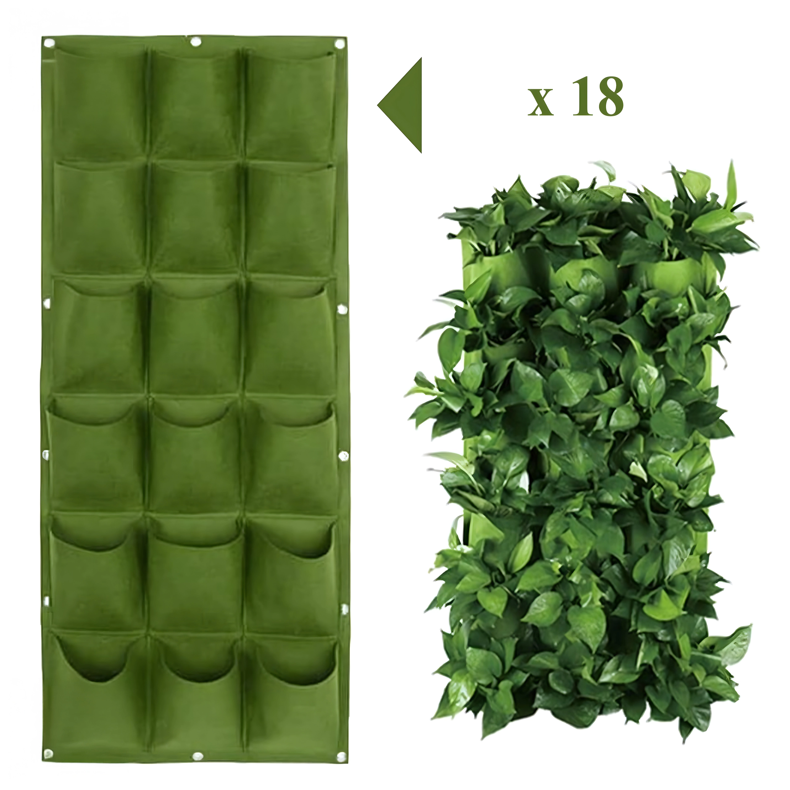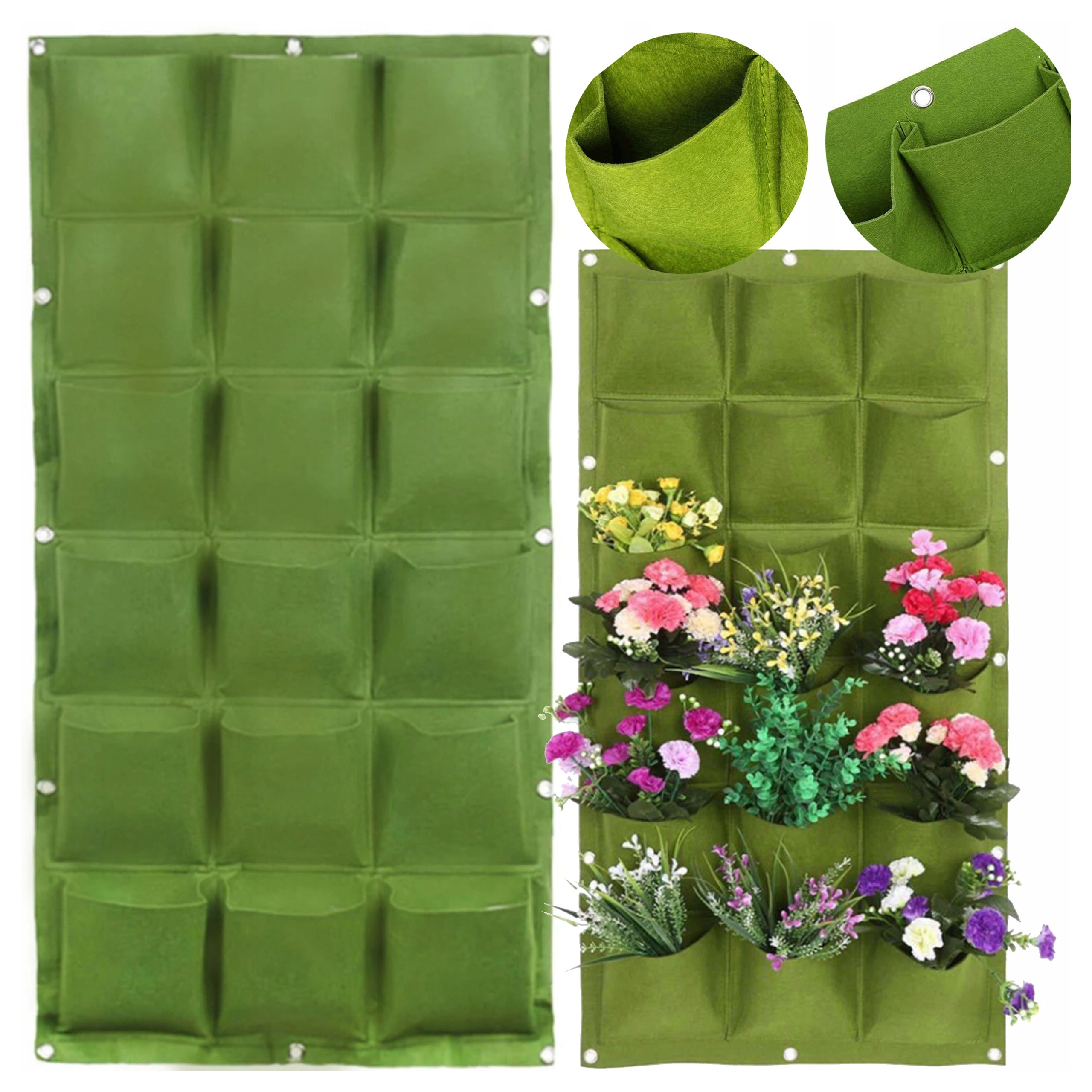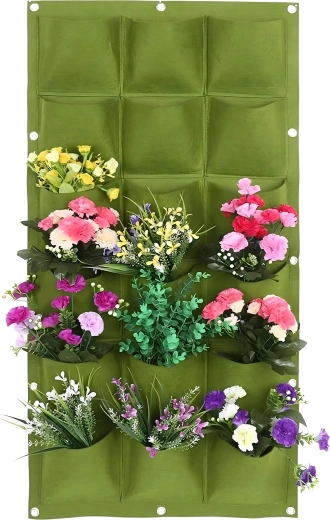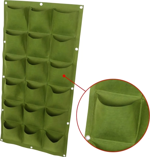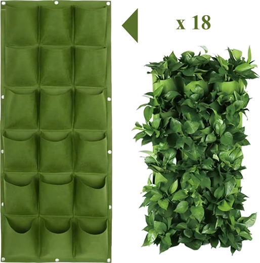 Praktyczny i stylowy wiszący kwietnik do pionowej uprawy ziół, kwiatów i warzyw oszczędza miejsce i zamienia Twój dom, balkon lub ogród w zieloną oazę. Oferuje 18 kieszeni, łatwy montaż za pomocą uchwytów na ścianę lub ogrodzenie oraz sprytne nawadnianie dla zdrowego wzrostu roślin. Idealny dla tych, którzy cenią estetykę, oryginalność i wygodę w uprawie.