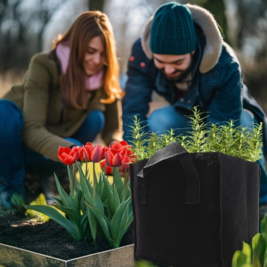 Praktyczna tekstylna doniczka uprawna z filcu o pojemności 8 l zapewnia doskonałe napowietrzanie korzeni, stabilne warunki termiczne oraz łatwe przenoszenie dzięki dwóm uchwytom. Idealna do uprawy warzyw, ziół i kwiatów w ogrodzie, na tarasie lub balkonie. Wielokrotnego użytku i przepuszczalna dla wody oraz powietrza, co sprzyja zdrowemu wzrostowi roślin.