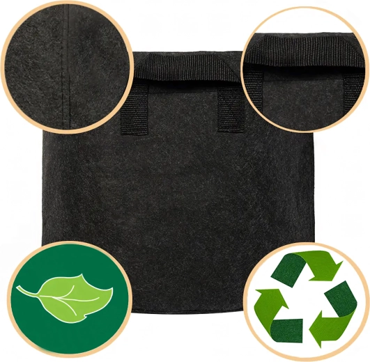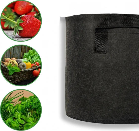 Tekstylna doniczka uprawna z wytrzymałej tkaniny filcowej/włókninowej pomaga roślinom tworzyć silny system korzeniowy dzięki znakomitej cyrkulacji powietrza. Materiał naturalnie utrzymuje korzystną temperaturę – w upał chłodzi, w chłodzie izoluje – wspierając bujny wzrost i obfite plony. Dwa solidne uchwyty ułatwiają przenoszenie i zmianę stanowiska roślin w zależności od pogody lub warunków świetlnych.