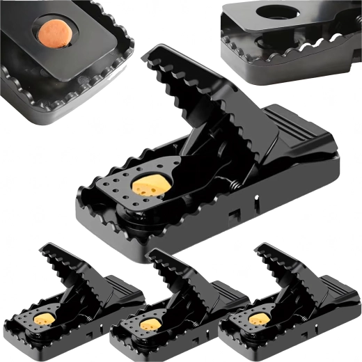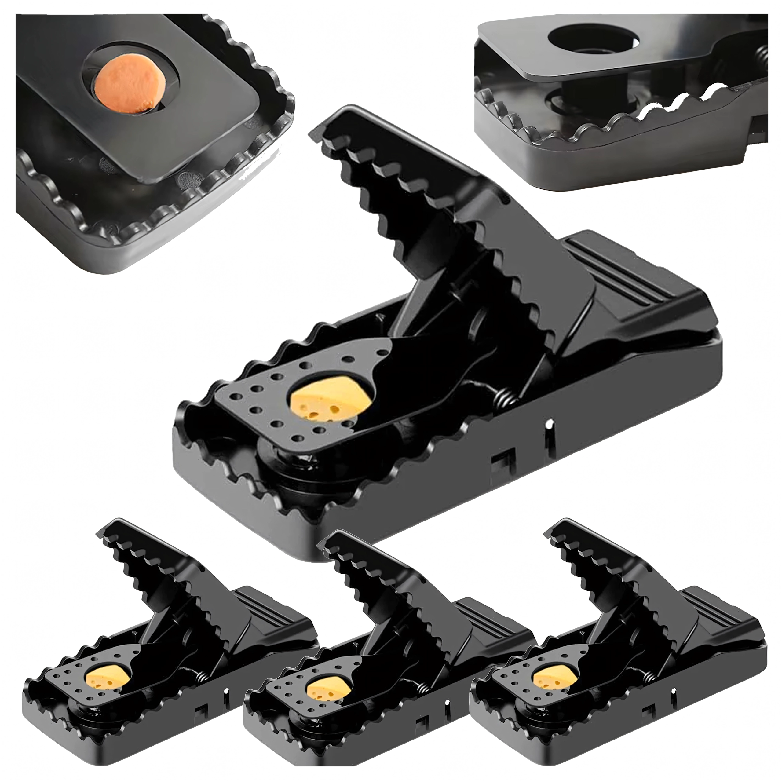 Praktyczny zestaw 4 pułapek na myszy i szczury z wytrzymałego plastiku do szybkiego i higienicznego zwalczania gryzoni w gospodarstwie domowym. Pułapka ma mocną sprężynę, łatwe nastawianie za pomocą dźwigni oraz zintegrowany pojemnik na przynętę, co zapewnia bezpieczne i skuteczne użycie w kuchni, spiżarni, garażu czy piwnicy.
