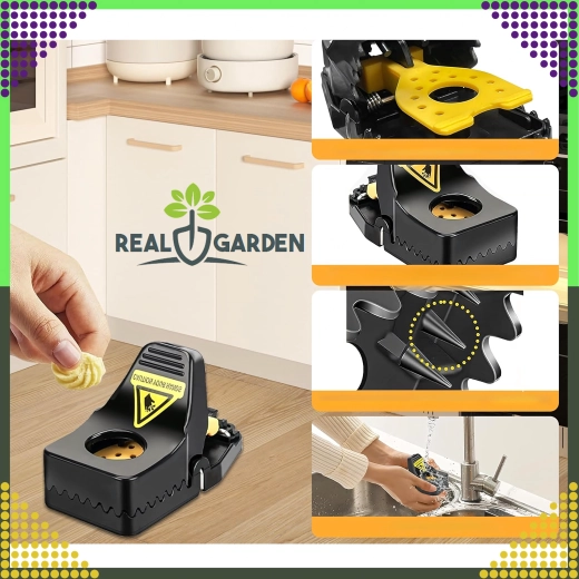 - Bezpieczne ustawienie – wygodna dźwignia i higieniczne usuwanie złapanego osobnika.