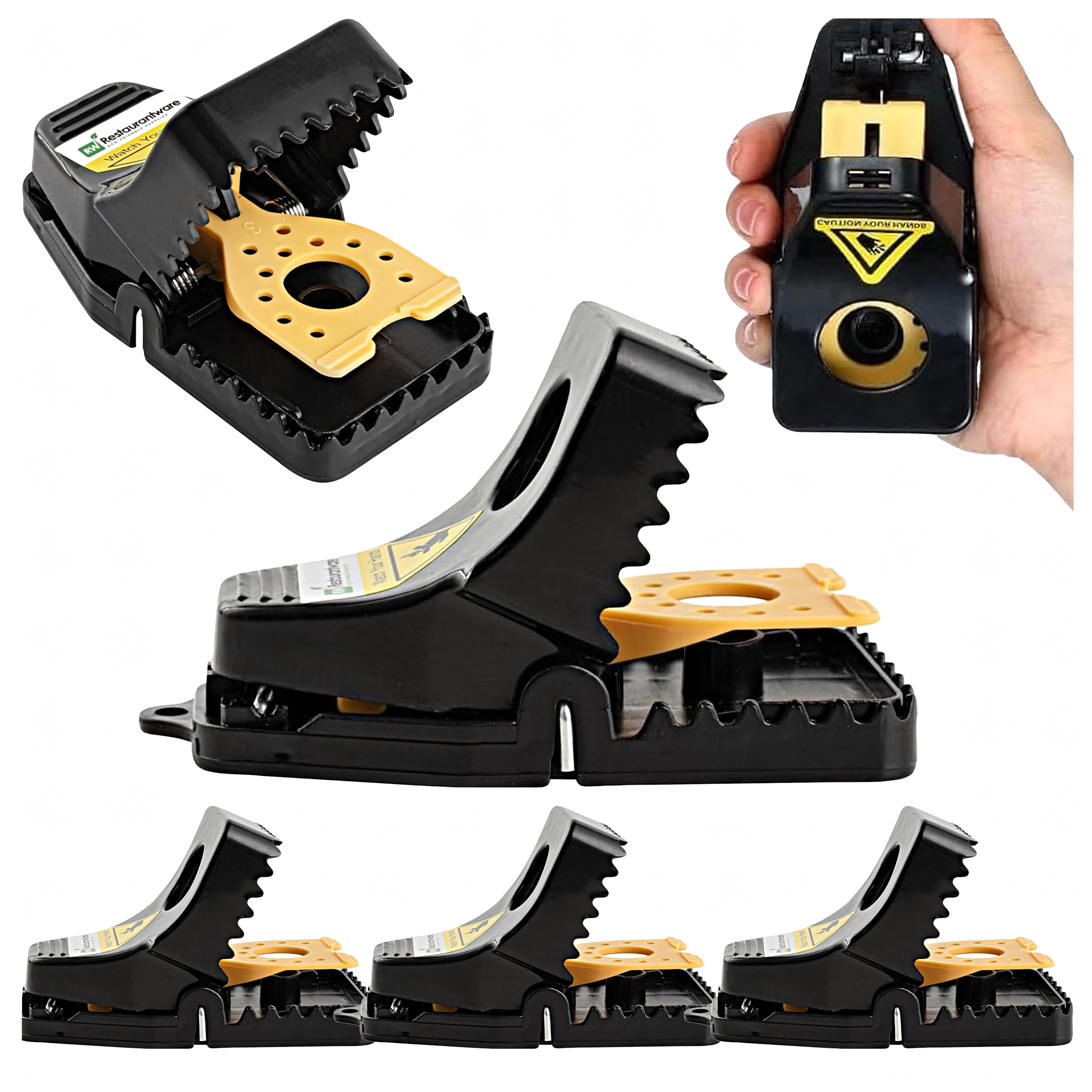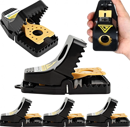 Praktyczny zestaw 4 plastikowych pułapek na myszy i szczury do szybkiego i higienicznego usuwania szkodników w domu. Pułapka ma mocną sprężynę, łatwe ustawienie za pomocą dźwigni oraz zasobnik na przynętę dla bezpiecznej obsługi. Dzięki kompaktowym rozmiarom umieścisz ją w kuchni, spiżarni, garażu i piwnicy. Wielokrotnego użytku i odporna na warunki atmosferyczne.