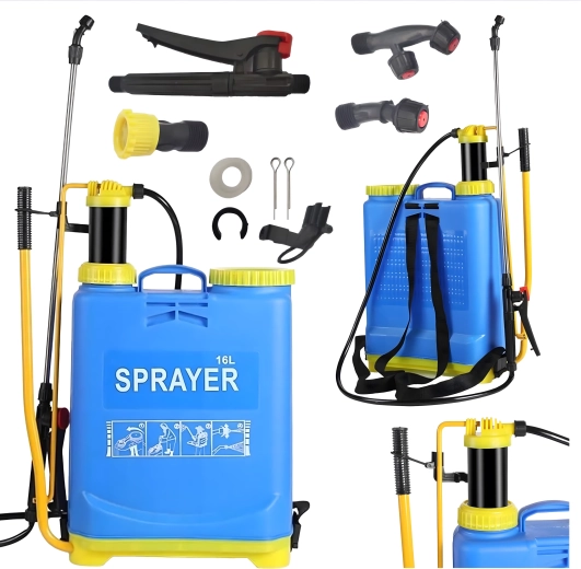 Wydajny plecakowy opryskiwacz o pojemności 16 litrów do wygodnej i efektywnej pielęgnacji ogrodu, sadu lub pola. Dzięki ręcznej pompie ciśnieniowej i ergonomicznym pasom jest łatwy w obsłudze, zapewnia równomierny oprysk i idealnie nadaje się do nawożenia, ochrony roślin oraz dezynfekcji. W zestawie znajdują się różne dysze oraz lej ułatwiający napełnianie.