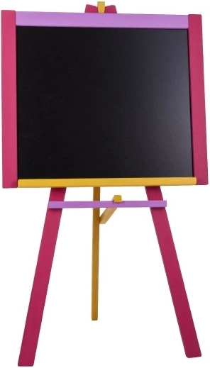 Stojąca różowa tablica z drewna bukowego 100 × 56 cm. Pisanie kredą, łatwe czyszczenie, stabilna konstrukcja do wnętrz. Odpowiednia dla dzieci od 3 lat.