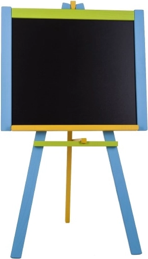 Praktyczna tablica stojąca z twardego drewna bukowego o powierzchni 100 × 56 cm jest idealna do nauki w domu i kreatywnej zabawy. Pisze się na niej klasycznymi kredami, które można łatwo zetrzeć zwilżoną ściereczką lub gąbką. Stabilna konstrukcja wymaga ustawienia na równej powierzchni i jest przeznaczona wyłącznie do użytku wewnętrznego. Odpowiednia dla dzieci od 3 lat.