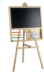 Ta drewniana stojąca tablica jest idealna do pokoju dziecięcego małego ucznia. Jest wyposażona w liczydło i wesoły zegar wskazówkowy, które oferują więcej możliwości do zabawnej nauki.