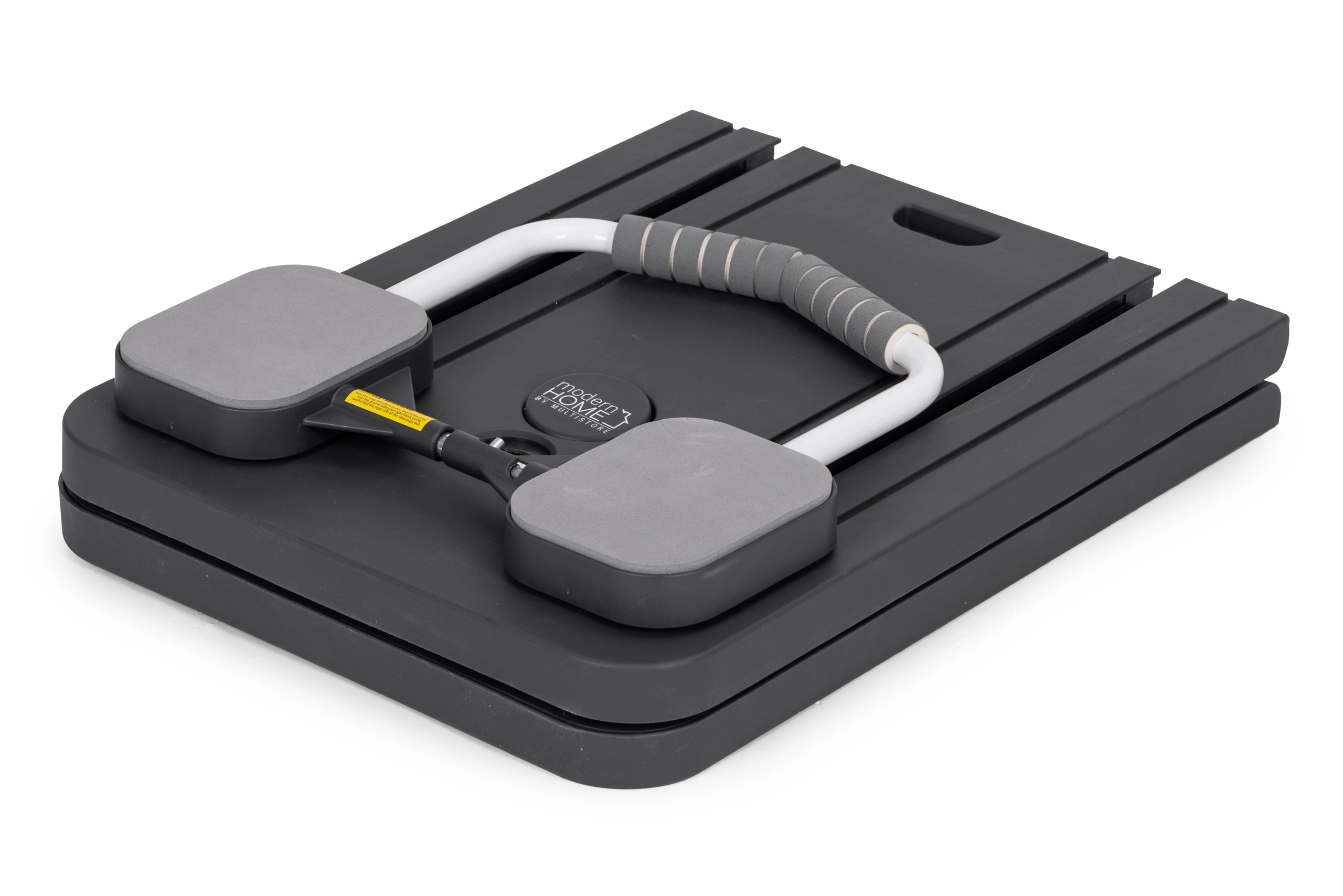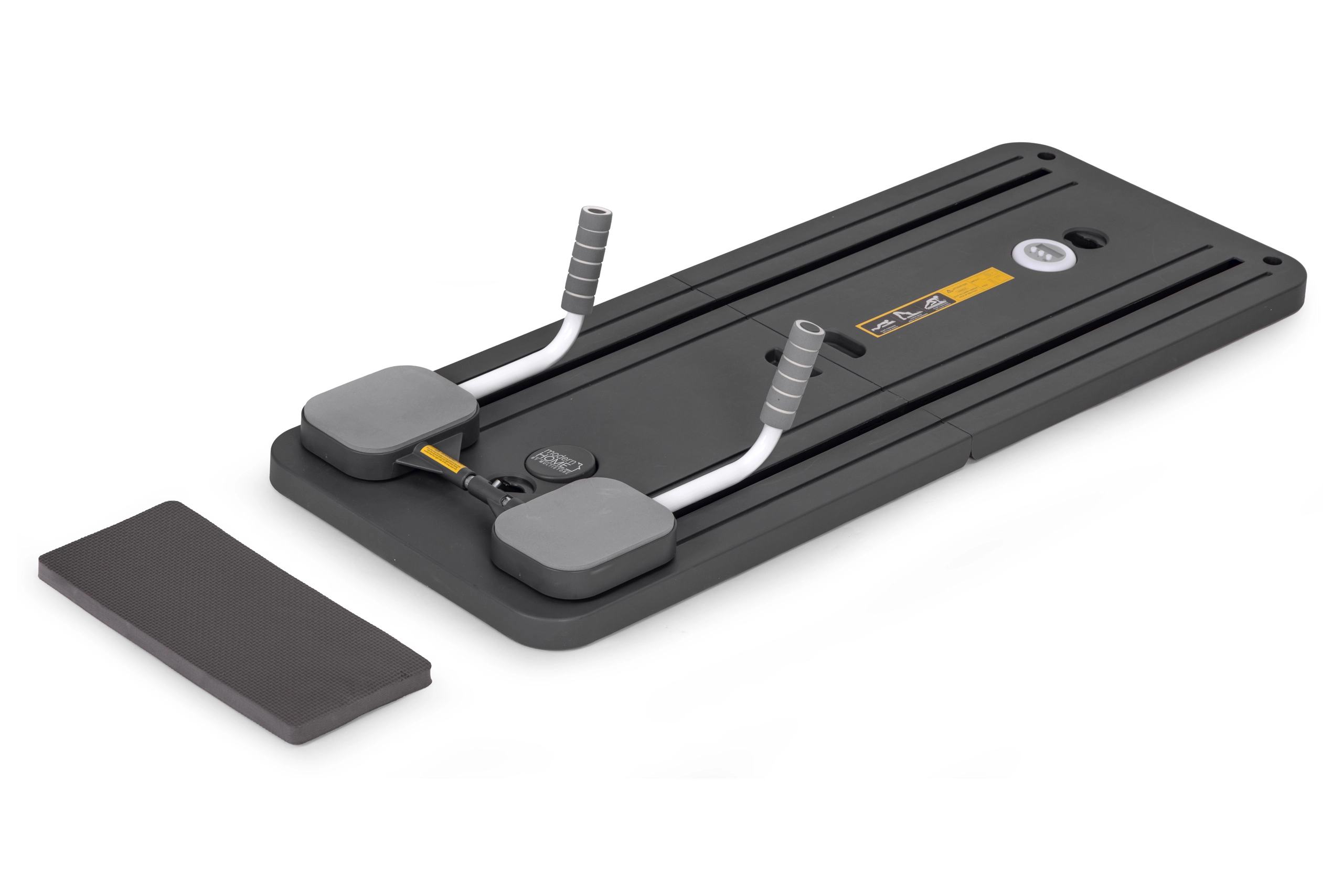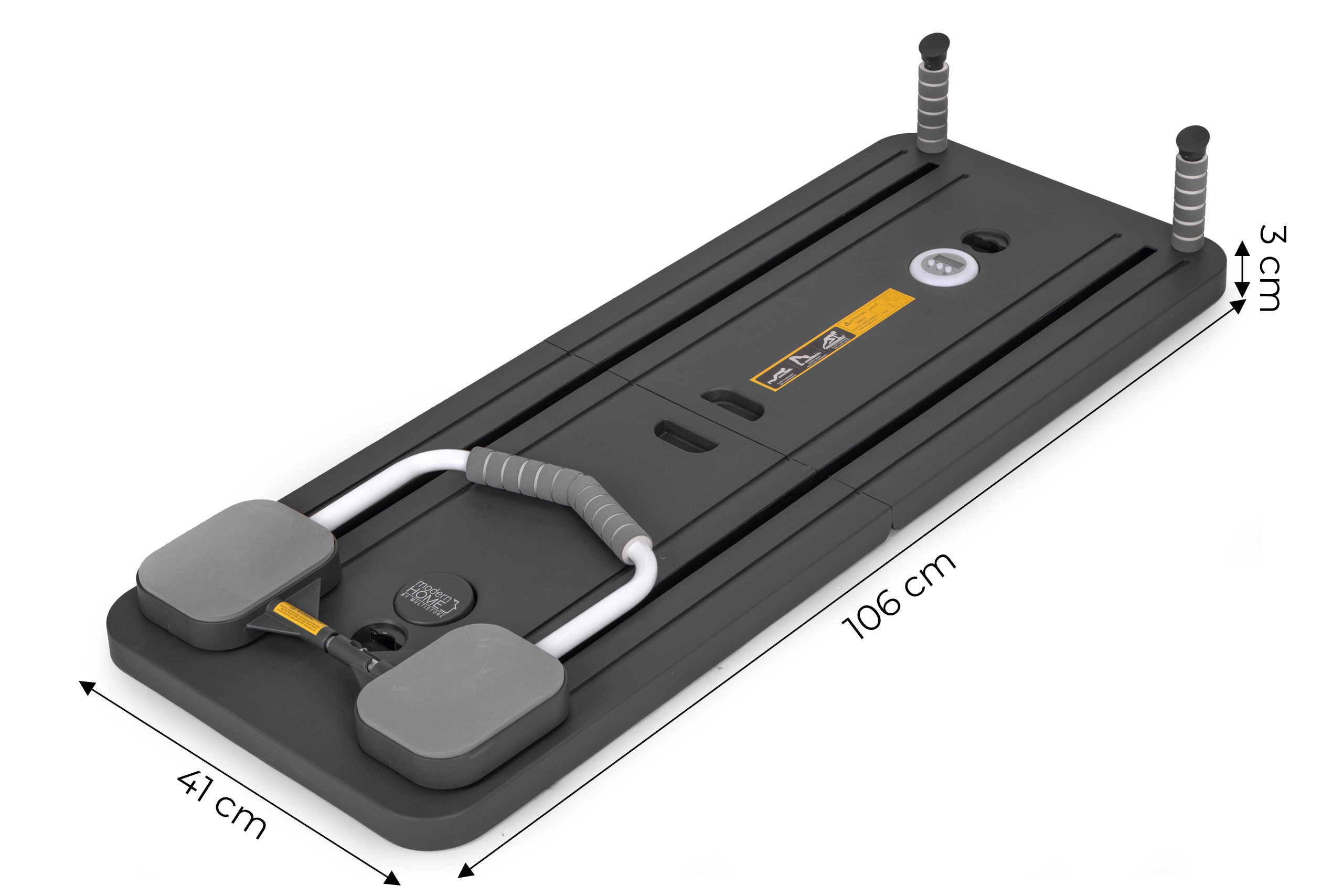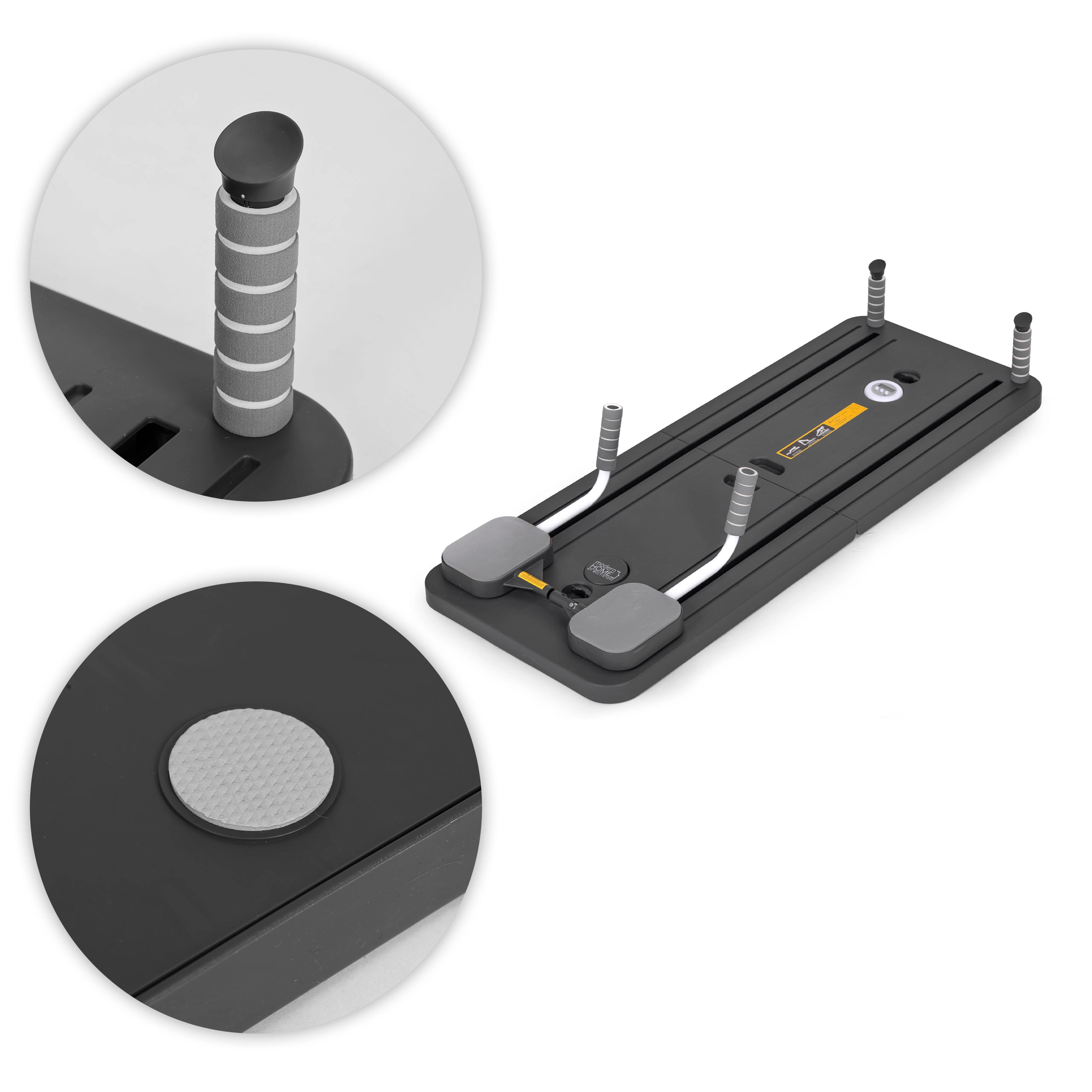 Antypoślizgowe podkładki utrzymują deskę pewnie na miejscu, a piankowe rączki zapewniają pewny chwyt i komfort nawet podczas intensywnych serii.