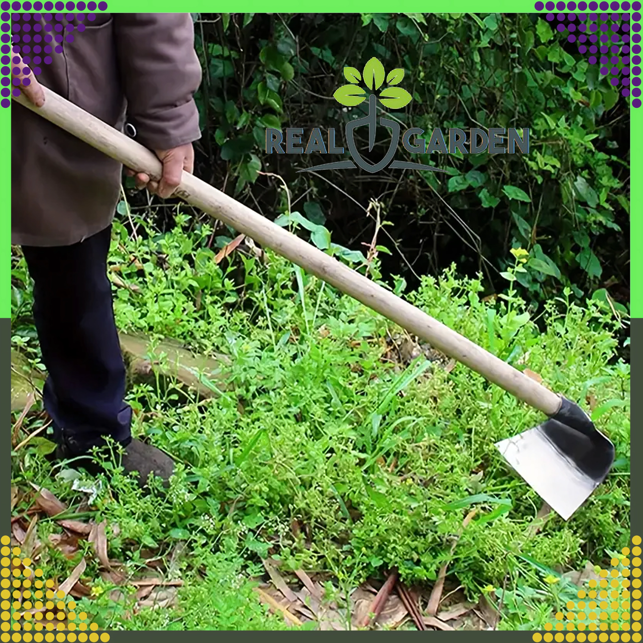 Praktyczna motyczka ogrodowa z haczykiem do łatwego spulchniania, pielenia i usuwania korzeni. Dzięki wytrzymałej kutej stali jest odporna, skuteczna i idealna do codziennej pracy na grządkach.