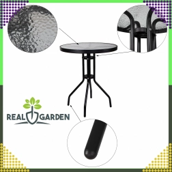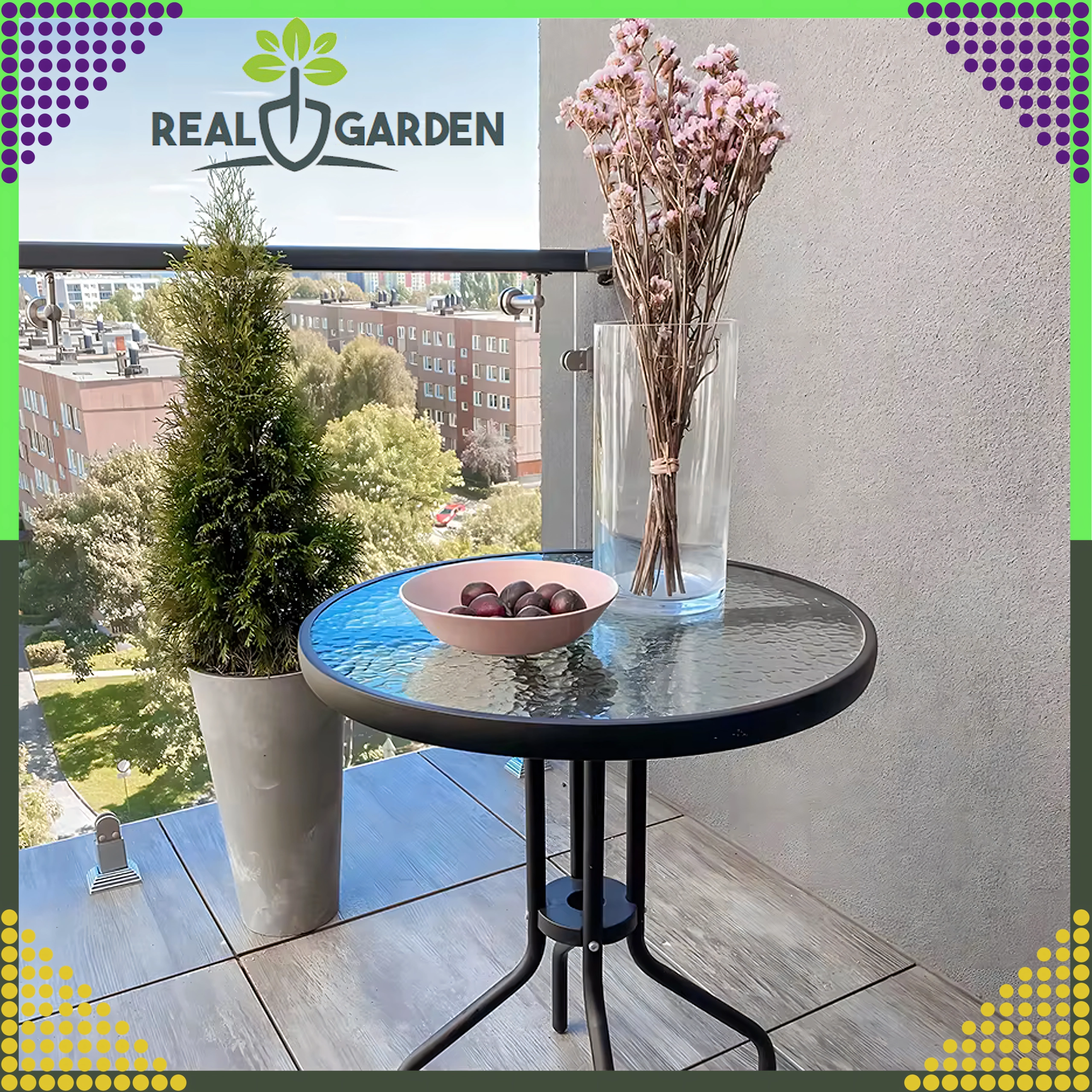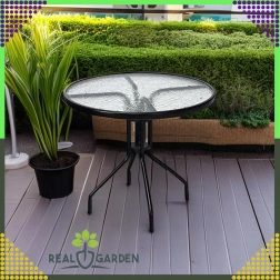 Wnieś do swojej przestrzeni outdoorowej styl i funkcjonalność. Okrągły stolik o średnicy 60 cm świetnie sprawdzi się przy porannej kawie, popołudniowej herbacie i wieczornym relaksie. Hartowane szkło jest bezpieczne, łatwe w czyszczeniu i zachwyca dekoracyjnym efektem przypominającym falującą wodę.