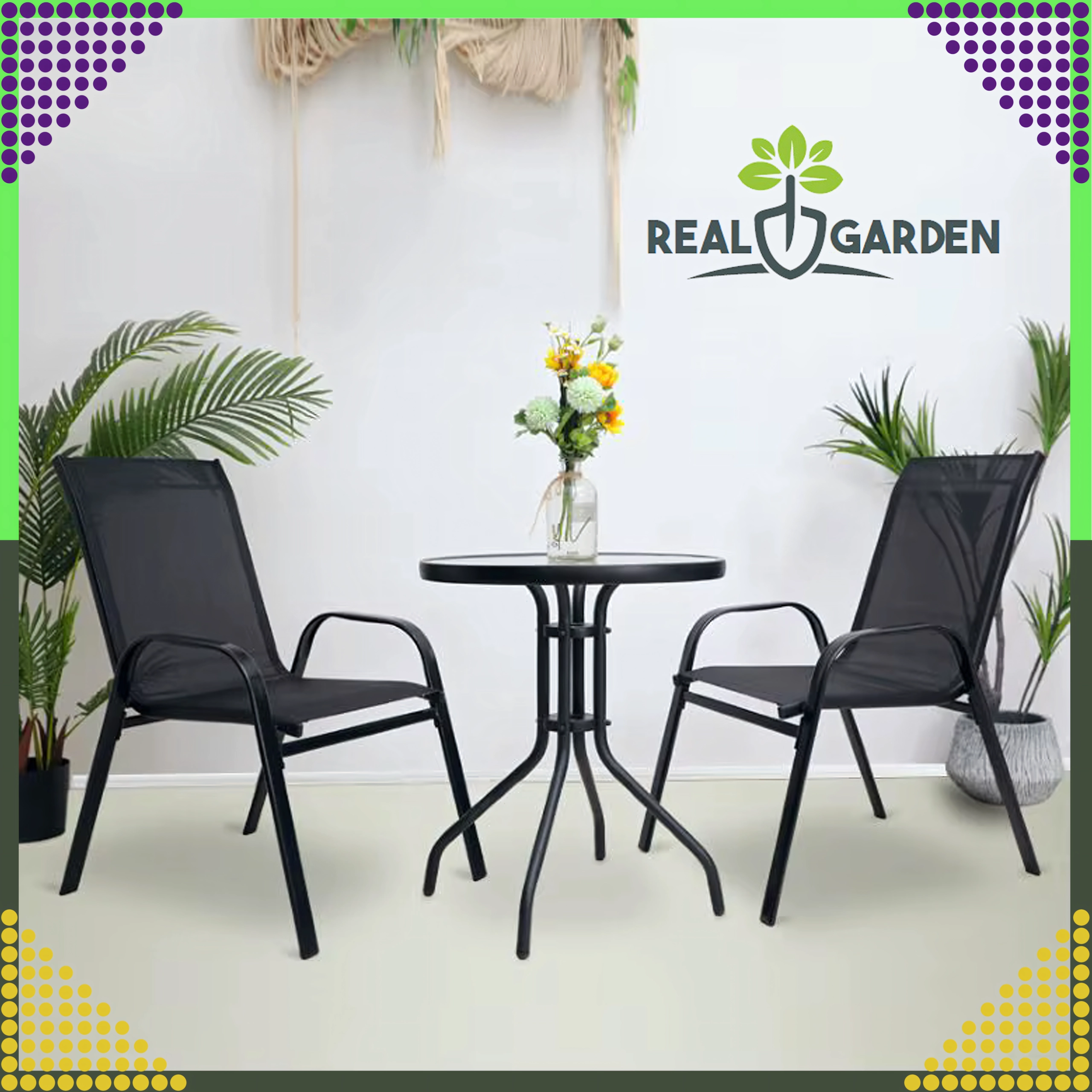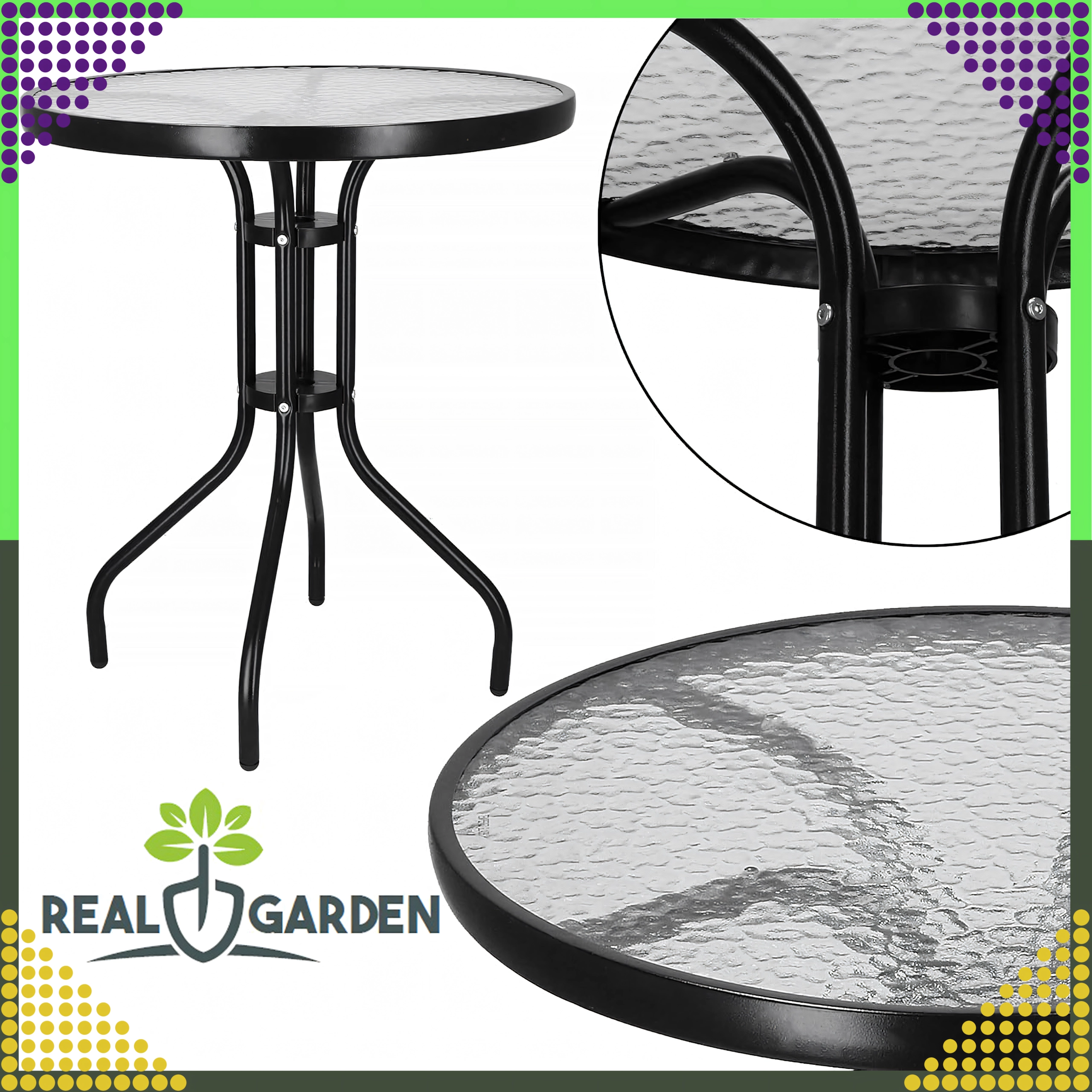 Solidna rama z stali malowanej proszkowo zapewnia stabilność i chroni przed korozją, dzięki czemu stolik jest idealny do użytku zewnętrznego – na balkon, taras, patio i do ogrodu. Dzięki uniwersalnej czarnej kolorystyce pasuje do większości mebli ogrodowych i prezentuje się nowocześnie oraz elegancko.