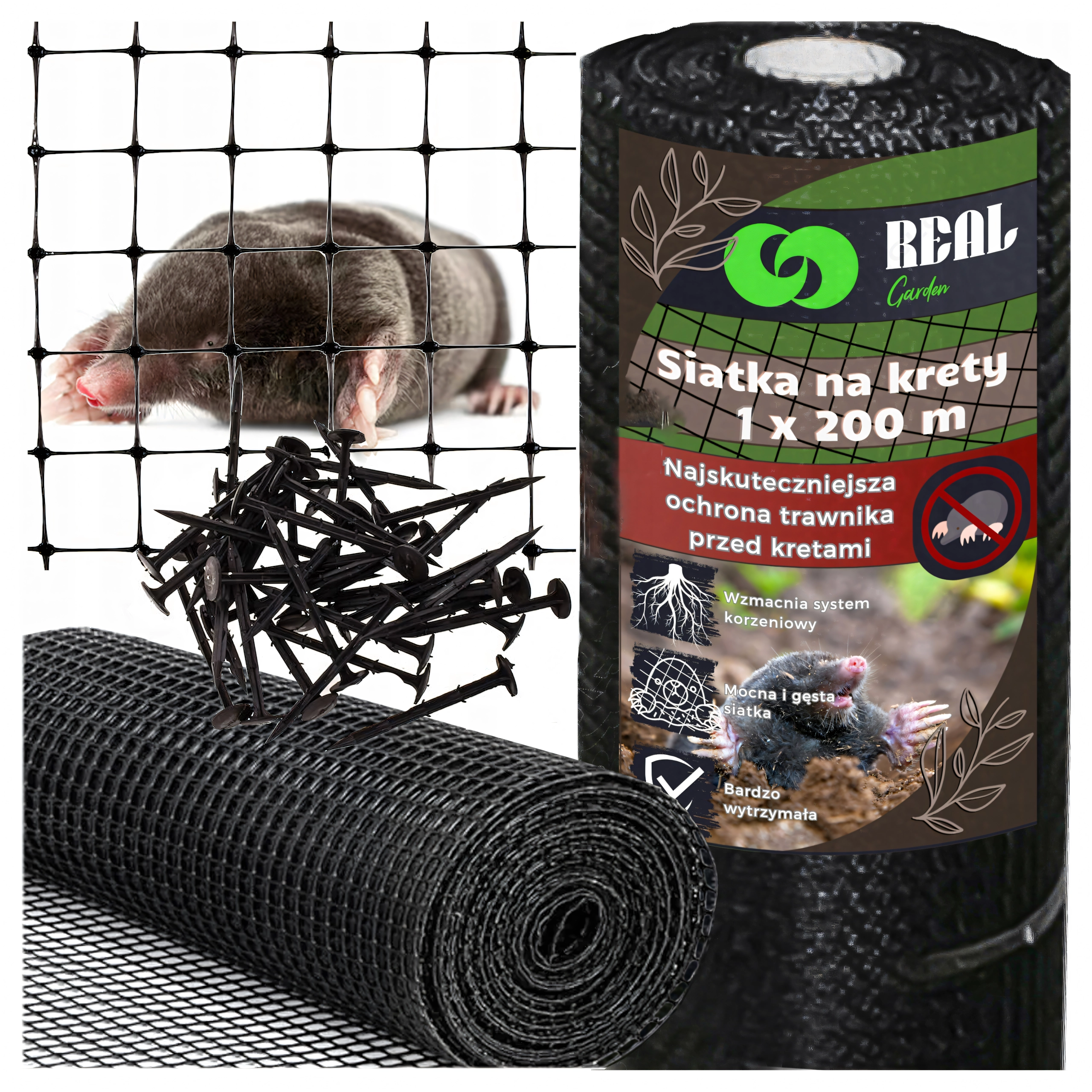 Rola o wymiarze 1 × 200 m dostarczana jest w pełnej długości bez składania, co ułatwia montaż i minimalizuje odpady przy docinaniu. W opakowaniu znajdziesz także 100 kotew/kołków do szybkiego i pewnego przymocowania siatki do podłoża.