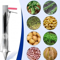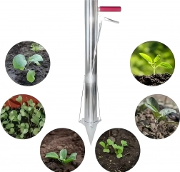 Ten uniwersalny ręczny sadzak ułatwia sadzenie cebulek, warzywnej i kwiatowej rozsady, a także pomaga w precyzyjnym usuwaniu chwastów. Długa, solidna stalowa konstrukcja z ostrą końcówką bez wysiłku zagłębia się w glebę, a mechanizm dźwigniowy zapewnia szybkie uwolnienie rdzenia ziemnego i łatwe umieszczenie rośliny.