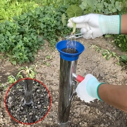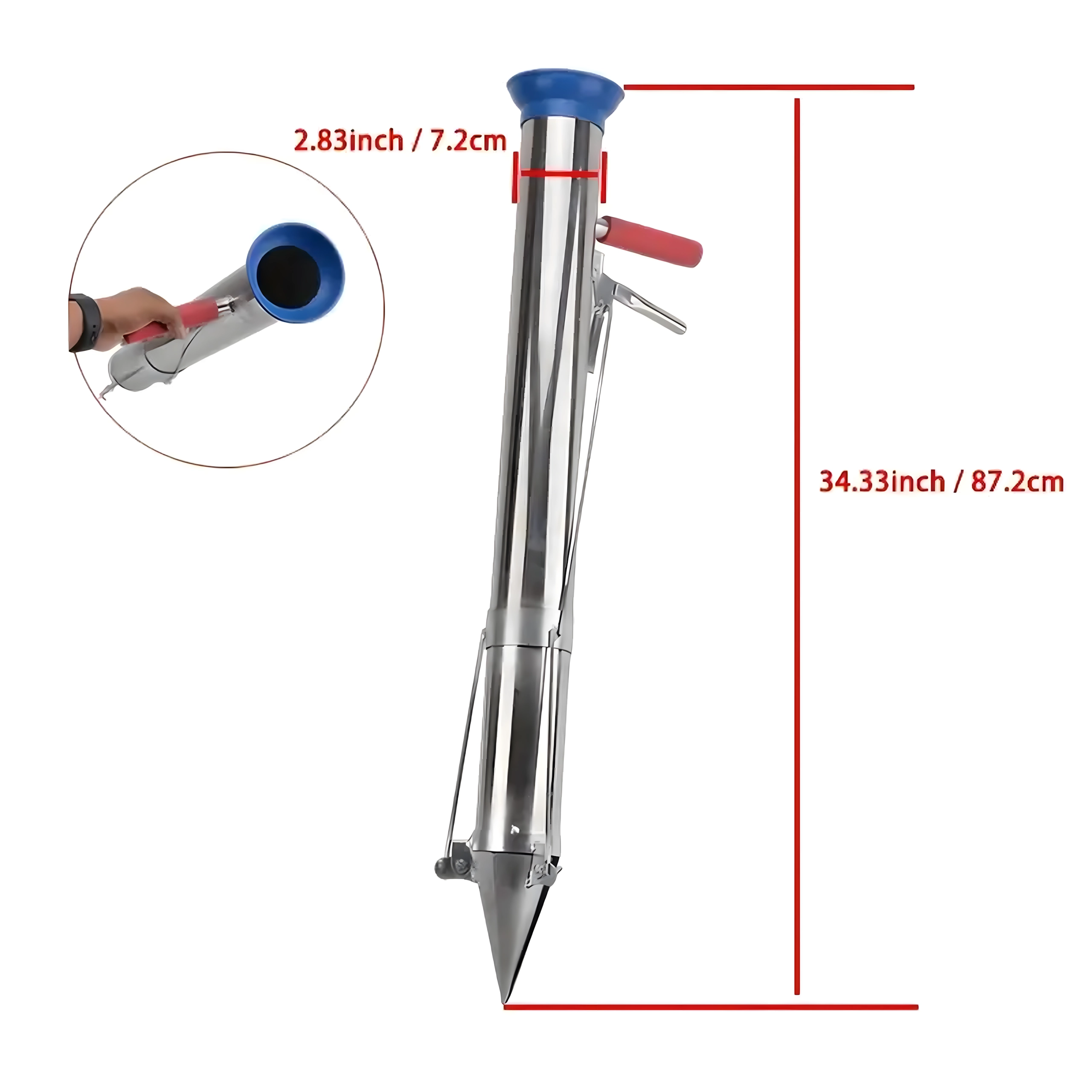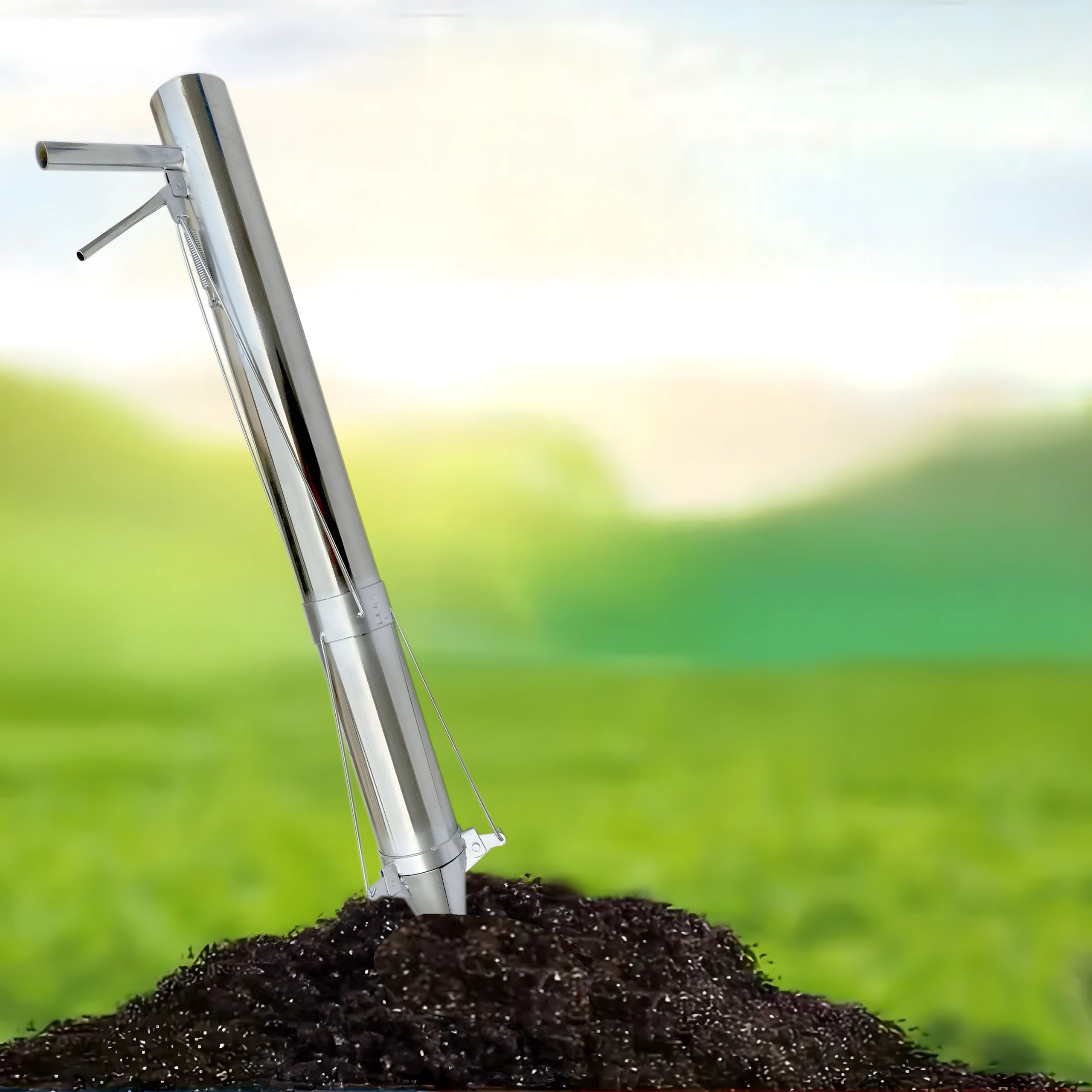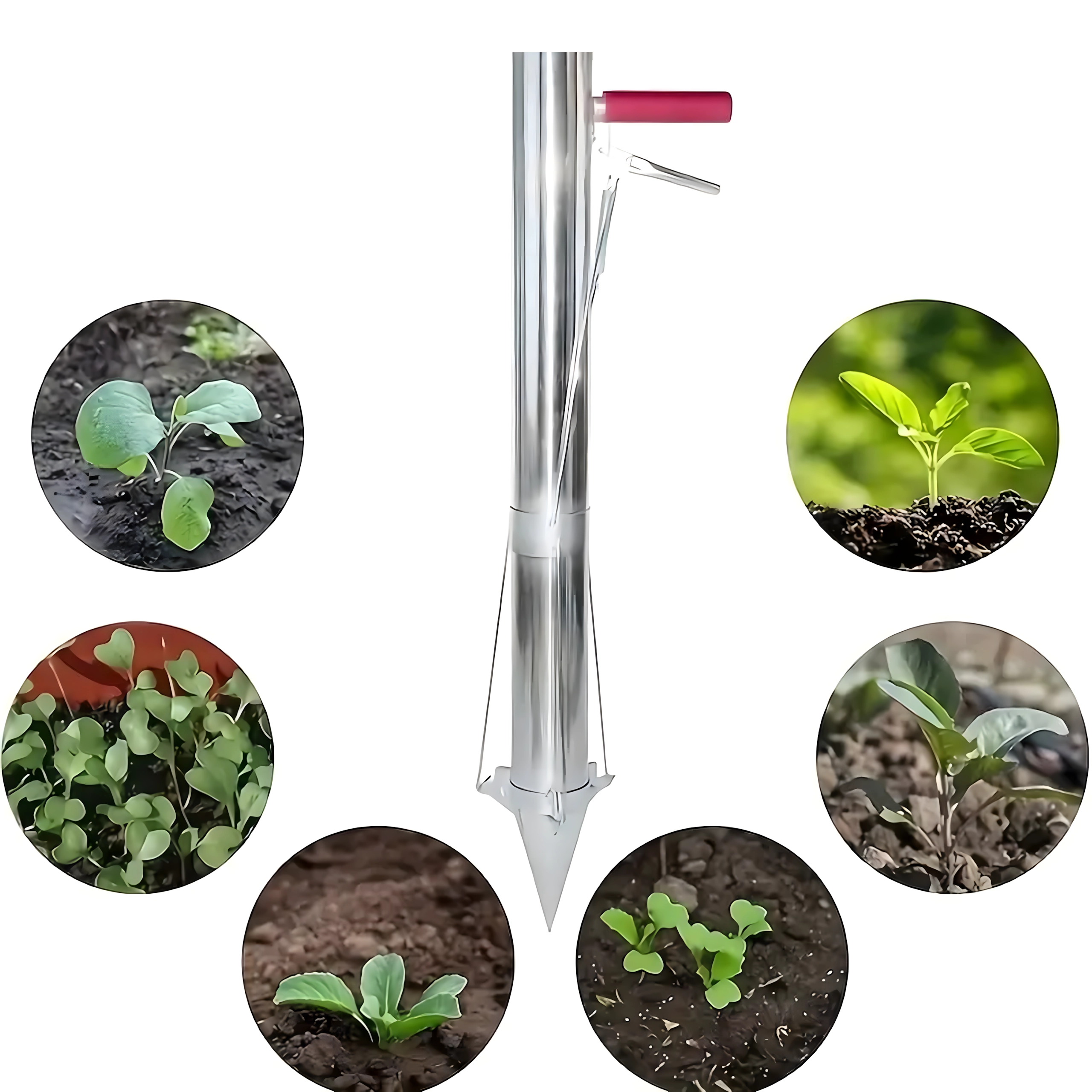 Stożkowa końcówka i cylindryczny korpus tworzą czysty otwór jednym dociśnięciem, wkładasz rozsadę, a dźwignią łatwo uwalniasz glebę z powrotem.