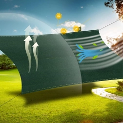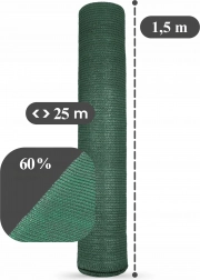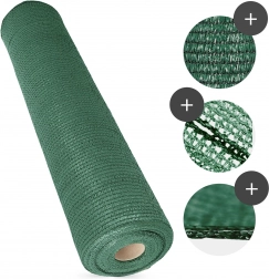 Materiał z HDPE i PP jest gęsto tkany, odporny na rozdarcia i odpowiedni do długotrwałego użytkowania na zewnątrz. Wersja ze wzmocnionymi krawędziami (polipropylenowe przeszycia przy oczkach montażowych) ułatwia instalację na siatce, drewnianych i metalowych ogrodzeniach, poręczach lub w szklarniach.