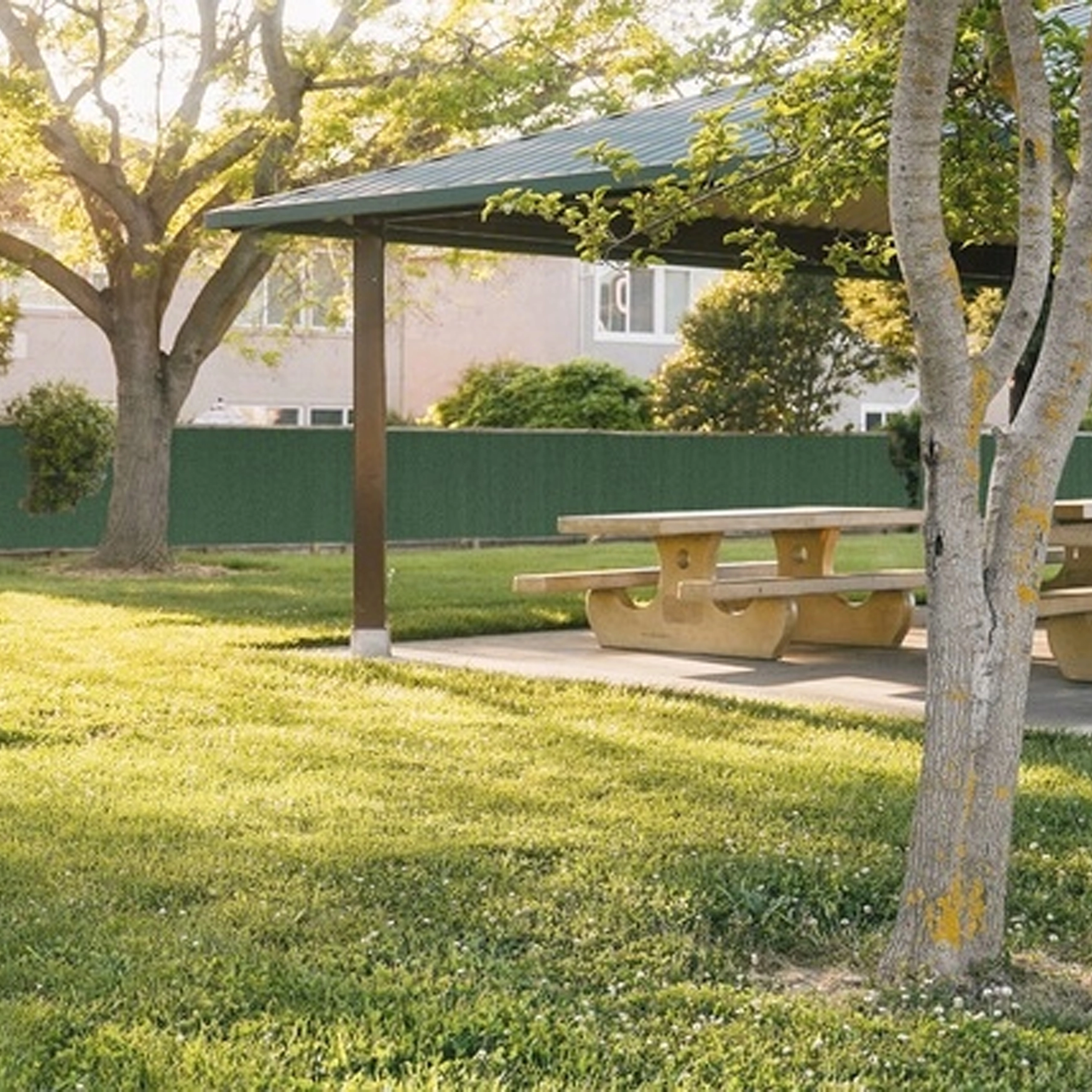 Zielona siatka zwiększa prywatność, ogranicza widoczność z zewnątrz, a jednocześnie tłumi wiatr – idealna do ogrodów, podwórek i boisk.